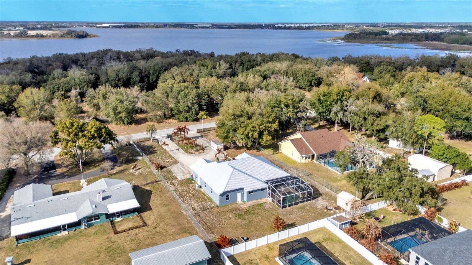 One or more photo(s) has been virtually staged. Welcome to this beautifully maintained 4 bedroom, 3 bathroom pool home featuring a 3-car garage and situated on over half an acre. This expansive property offers a massive driveway, providing exceptional space for a boat, RV, or simply added privacy between neighbors—an increasingly rare find. Step inside to an inviting layout enhanced by luxury vinyl plank flooring and tile throughout. The home features a spacious front sitting room and an open-concept design that seamlessly connects the main living areas. At the heart of the home is the upgraded kitchen, complete with granite countertops, stainless-steel appliances, ample cabinetry, generous counter space, and a large island overlooking the bright and open living room—ideal for gatherings and everyday living. The primary suite offers a peaceful retreat with an ensuite bathroom featuring dual vanities, a garden tub, walk-in shower, and a walk-in closet. French doors from the primary bedroom lead directly to the screened-in patio, creating a private connection to the outdoor oasis. The additional bedrooms are located on the opposite side of the home, equal in size and conveniently positioned near two full guest bathrooms. Step outside to enjoy true Florida living on your large screened-in pavered patio overlooking the inground pool, perfect for entertaining family and friends. The property also includes a storage shed for added convenience. Recent upgrades include interior and exterior paint (2026), a new metal roof (2025), and new pool screens, offering peace of mind and move-in readiness. Located near a variety of restaurants, retailers, and everyday conveniences, this home combines space, privacy, and modern comfort in a highly desirable setting.