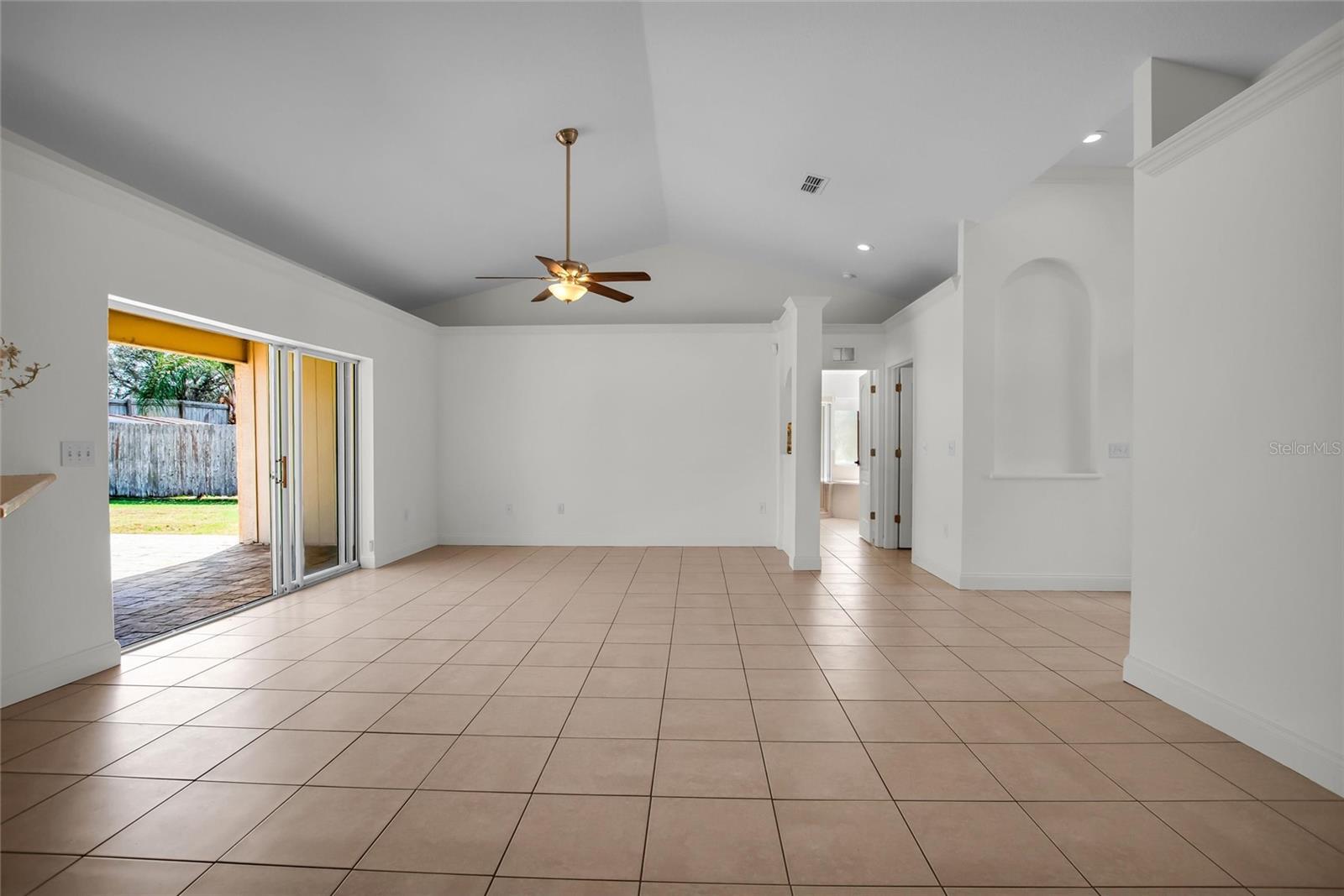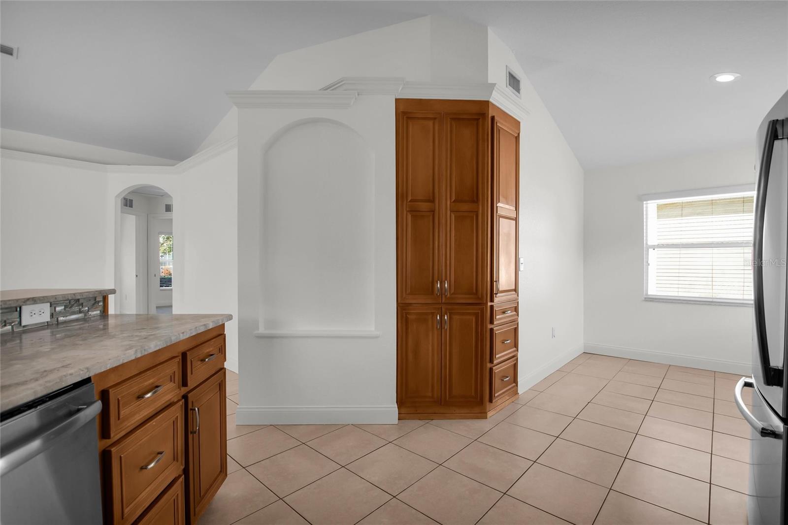 Freshly painted and move-in ready, this beautifully maintained home offers the perfect blend of style, comfort, and functionality. Tile flooring flows through the main living areas, while brand-new carpet adds warmth and comfort to the bedrooms. The heart of the home features custom-built maple cabinetry, granite countertops in both the kitchen and bathrooms, and a full suite of GE stainless steel appliances, including a range, refrigerator, microwave, dishwasher, disposal, and ice maker. Solid surface counters and solid wood cabinets enhance both durability and elegance. Designed with an open floorplan, this home boasts a spacious kitchen/family room combination with a dedicated eating space, ideal for entertaining and everyday living. Cathedral and vaulted ceilings create an airy, light-filled atmosphere, complemented by crown molding, ceiling fans, and stylish window treatments throughout. The split-bedroom layout offers privacy and functionality, while walk-in closets provide generous storage. Additional highlights include a modern thermostat system and thoughtful architectural details that make this home as practical as it is beautiful. This is a truly turnkey property that combines quality finishes with comfortable living—ready for you to call home.