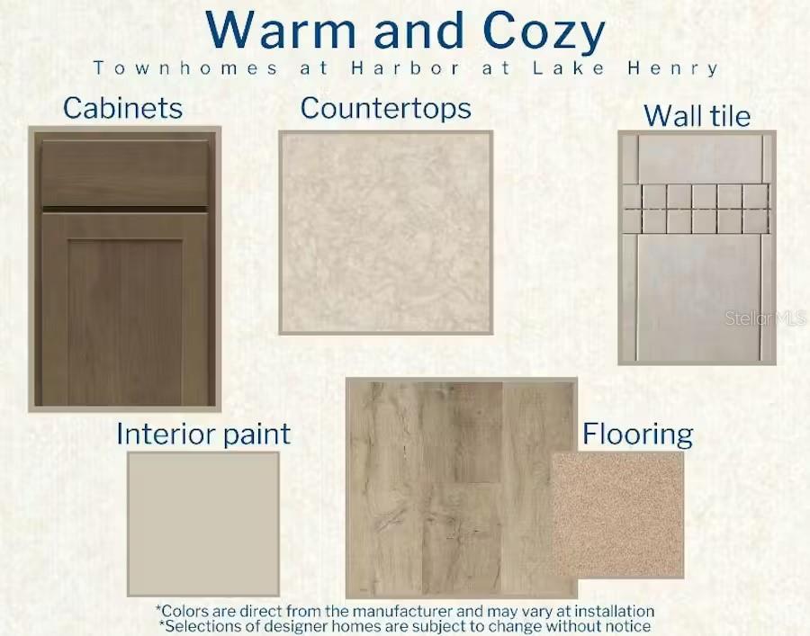 Under Construction. 2-story new construction townhome with 1,604 square feet, 3 bedrooms, and a covered lanai, located in the brand-new Harbor of Lake Henry community. Downstairs, enjoy an open layout and a gourmet kitchen with, shaker-style wood cabinets, Samsung stainless steel appliances, including a pantry. The spacious gathering room opens to your covered lanai. The entire lower level and upstairs baths are finished with luxury vinyl plank flooring, with stain-resistant carpet in the bedrooms. Upstairs, you'll find three spacious bedrooms including your owner's suite complete with a walk-in wardrobe, linen closet, and a private en-suite bath with dual vanities and a tiled shower. Additional features for your convenience include a half bath downstairs, upstairs hall bath for the secondary bedrooms, energy-efficient insulation and windows, and a full builder warranty.