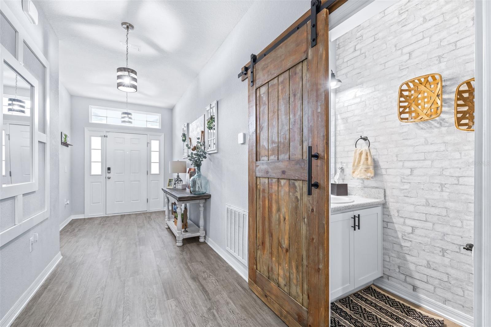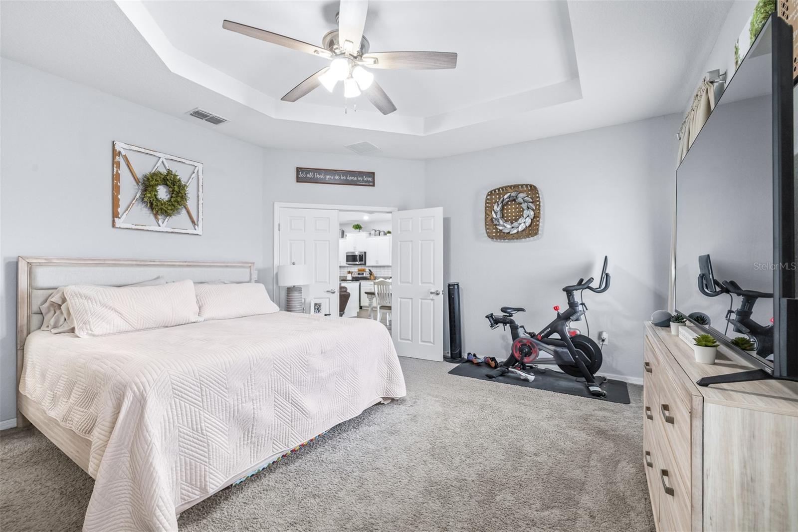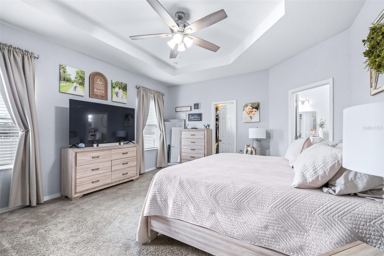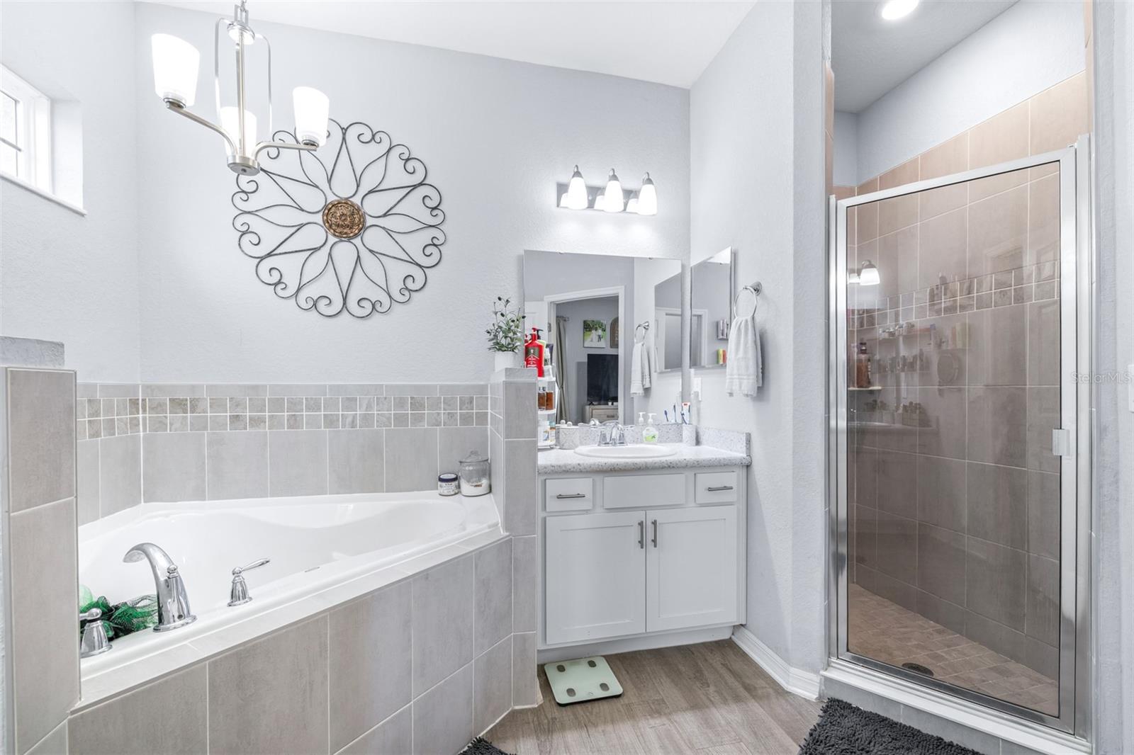 This beautifully maintained 2,049 sq ft home is located in the desirable Villamar community. The open-concept floor plan features a spacious gathering room that flows into the dining area and well-appointed kitchen complete with crown molding, granite countertops, stainless steel appliances, shaker-style cabinets, breakfast bar, and walk-in pantry. The private owner’s suite offers a tray ceiling, large walk-in closet, and spa-like bath with dual vanities, garden tub, tiled shower, and private water closet. Luxury vinyl plank flooring enhances the main living areas, with stain-resistant carpet in the bedrooms. Additional features include a Jack-and-Jill bath, guest powder room, drop zone at garage entry, faux wood blinds, built-in pest control, architectural shingles, and energy-efficient upgrades including R-30 insulation and Low-E tinted windows. Enjoy outdoor living on the covered lanai overlooking beautifully maintained, Florida-friendly landscaping with irrigation. The community resort-style pool is perfect for relaxing in the Florida sun.