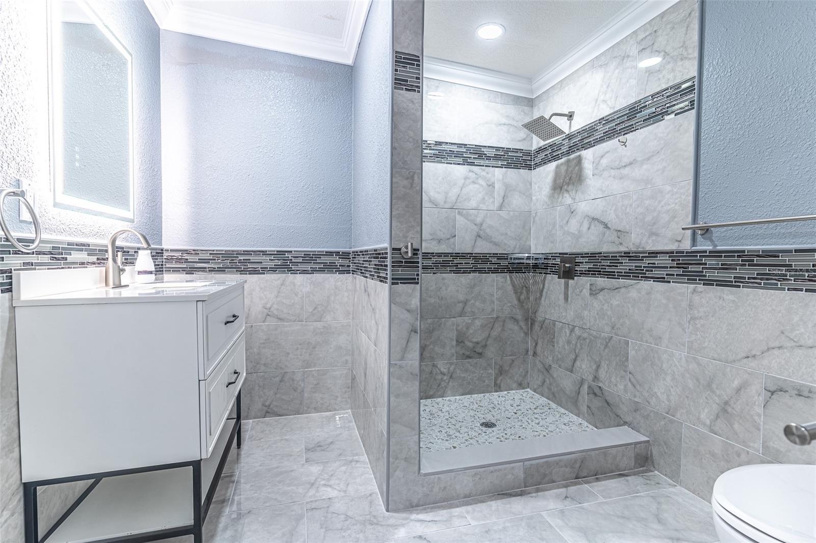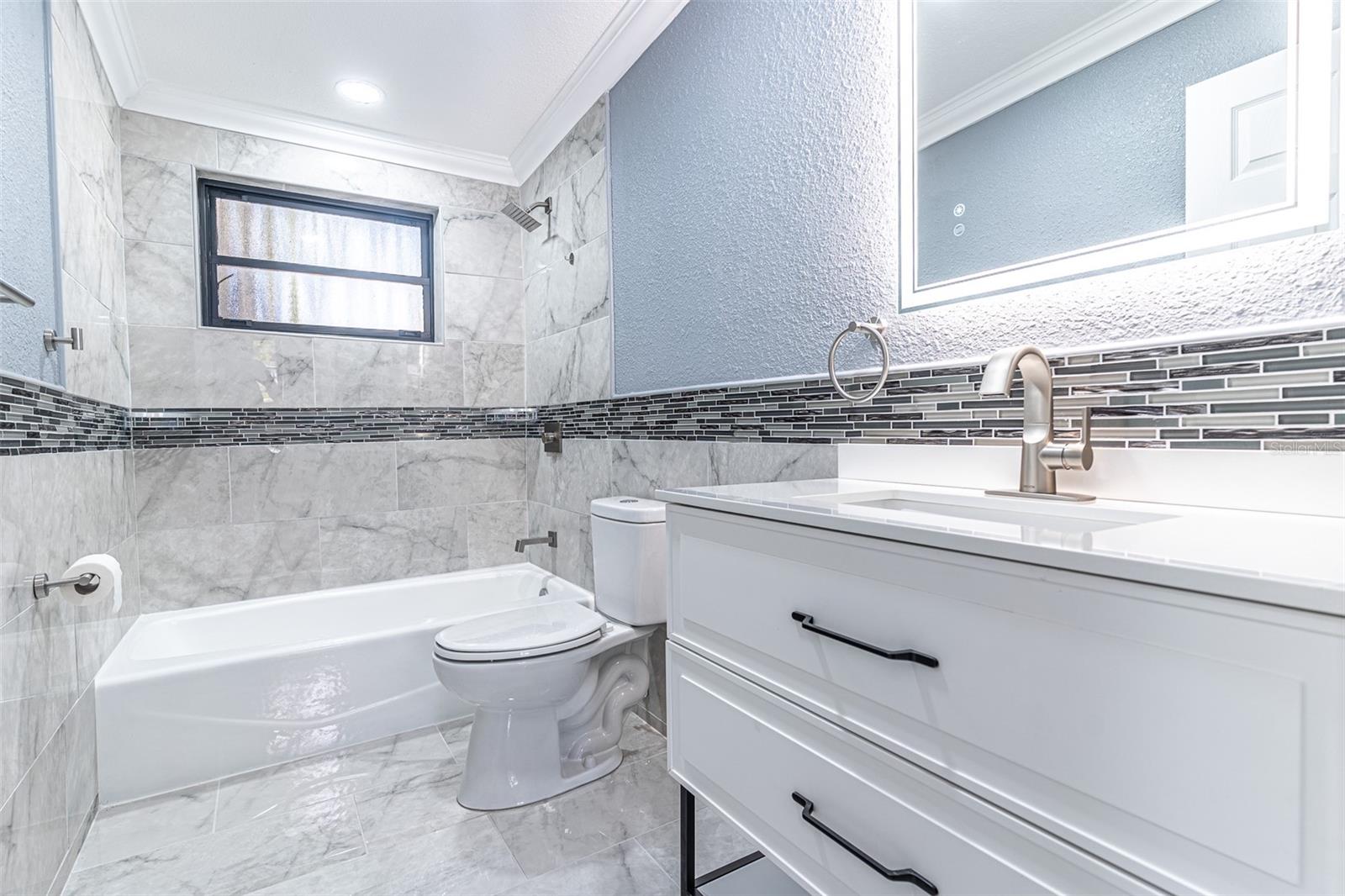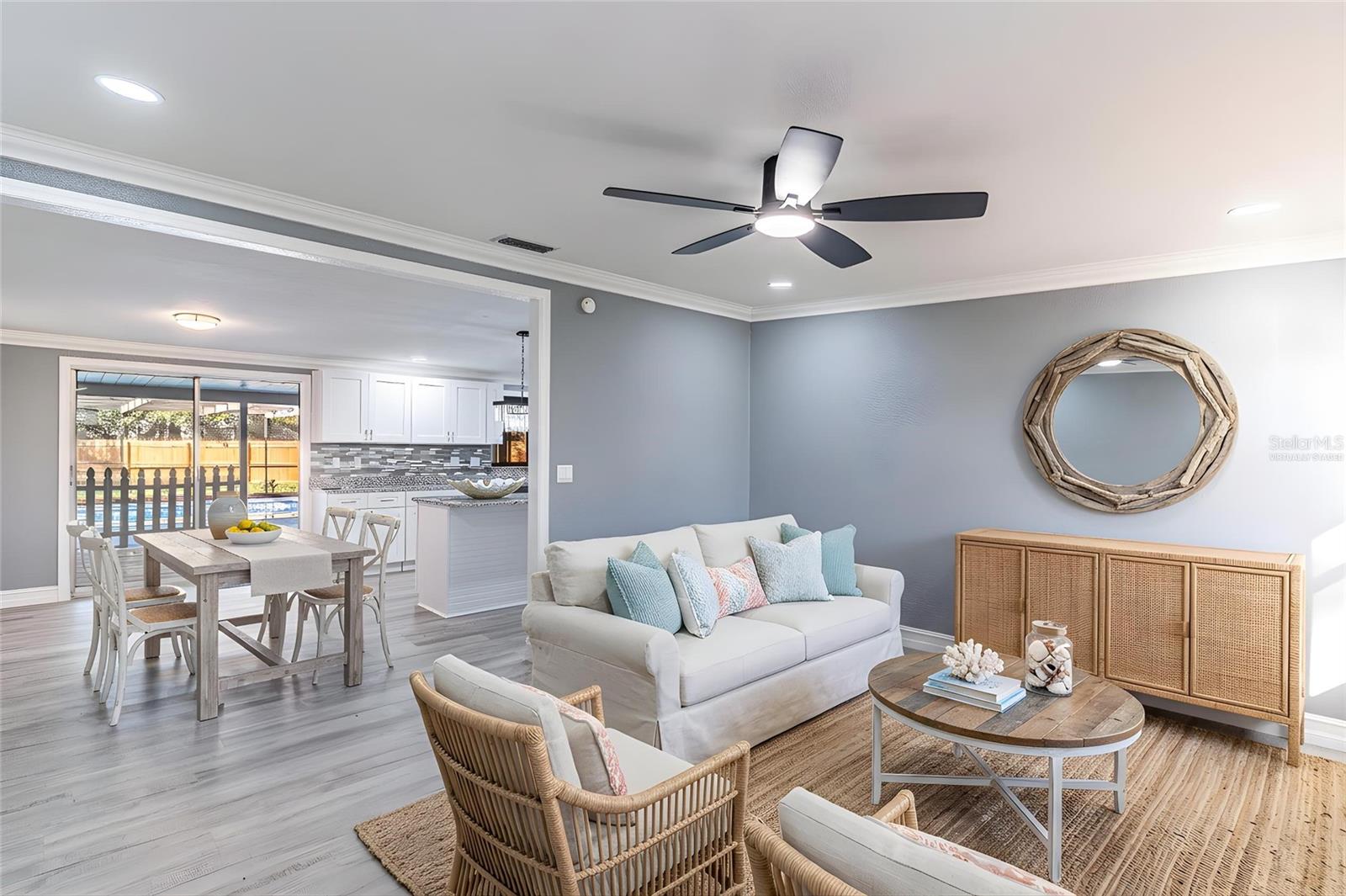 Welcome to this completely renovated 4-bedroom, 3-bath POOL home in the highly desirable Idylridge community of Winter Haven. No expense has been spared in transforming this home into a modern, move-in ready masterpiece with high-end upgrades inside and out. Inside, you’ll find a bright, open layout with all-new paint, luxury vinyl plank flooring, and luxury tile in the bathrooms. Each room features modern ceiling fans, and crown molding throughout, creating both comfort and style throughout the home. The stunning kitchen is a chef’s dream, featuring brand-new stainless steel appliances, granite countertops, a large new island, soft-close cabinet drawers, and a new walk-in pantry. A chef’s natural gas stove lets you cook while enjoying views of the pool and backyard, making this space perfect for entertaining or everyday living. The home offers TWO master suites, one with a large walk-in closet, plus two additional bedrooms and three fully updated bathrooms with contemporary fixtures and backlit mirrors for a sleek, contemporary feel. Step outside to your private backyard oasis with a refreshed pool featuring a brand-new liner, new screen enclosure, and new tile surrounding the deck. The large, fully fenced yard includes partially new fencing and three separate entrances with double gates, ideal for vehicles, boats, or recreational equipment. A 17 x 16 block shed on a slab with a brand-new metal roof provides extra storage or workshop space. Additional highlights include a brand-new roof with new soffit and fascia, two new AC units, new electrical including a 60-amp outdoor generator plug, a three-car carport, and a driveway that fits up to NINE vehicles. Conveniently located in Winter Haven, the home is minutes from shopping, dining, parks, and the Chain of Lakes, as well as attractions like LEGOLAND Florida Resort. This fully renovated, move-in ready pool home offers space, style, and unmatched upgrades—inside and out. Don’t miss your opportunity to own a truly exceptional property in one of Winter Haven’s most sought-after neighborhoods.
