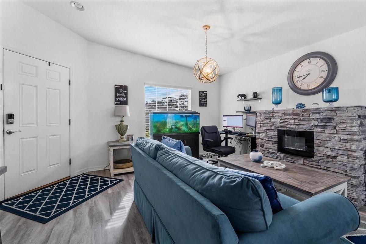 Welcome to this move-in ready 3 bedroom, 2 bath home built in 2021 with an open layout and modern finishes. The kitchen features a large island and pantry, flowing into a bright living area with vaulted ceilings and sliding doors to the covered lanai. A spacious lot, two-car garage, and convenient Winter Park location close to shopping, dining, and schools make this home an ideal choice.