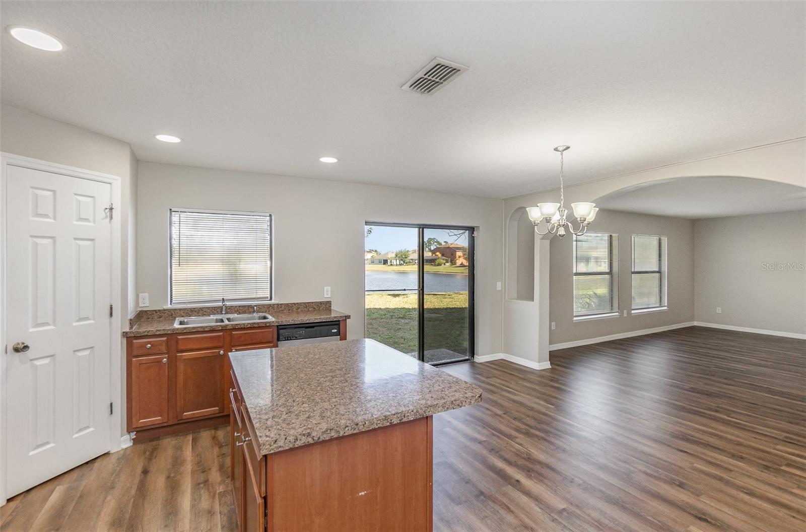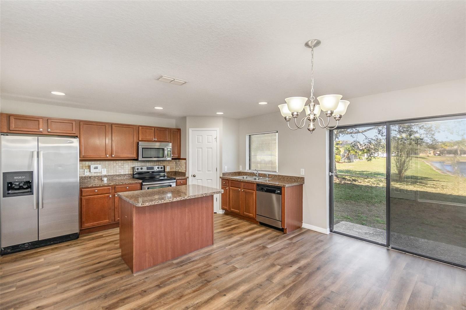 Modern family home with beautiful water views. This four-bedroom, two-and-a-half-bathroom property overlooks a pond in the backyard and a lake across the street. Features include walk-in closets, extra storage, indoor laundry, granite countertops, wood cabinetry, a large back patio, spacious bathtub, double sinks, and a kitchen island. With nearly 3,500 sq ft, it’s conveniently located 10 minutes from Hwy 27, 5 minutes from Winter Haven, and 20 minutes from Legoland, i4, the regional airport, and hospitals.
