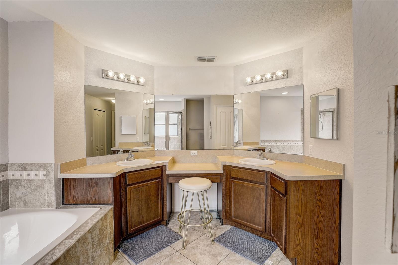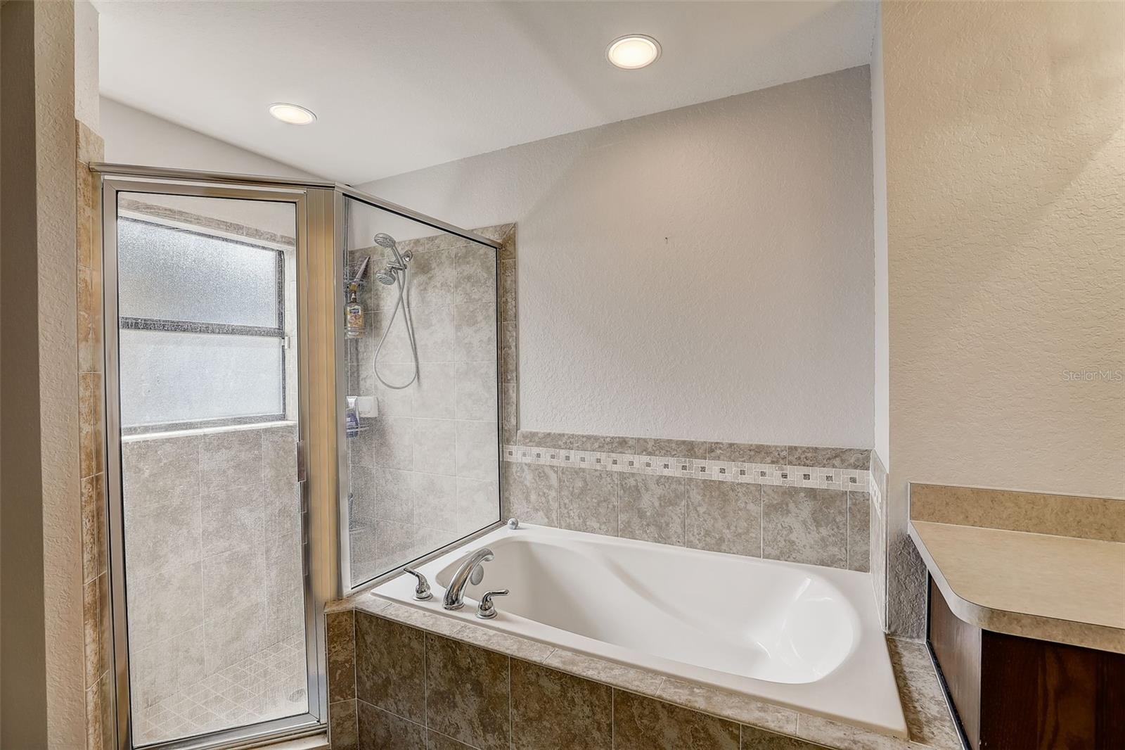 Great new price from these motivated sellers! Welcome home to this 4 bedroom, 2 bathroom home in the gated Lakeridge Estates community. Inside you're greeted by a welcoming and spacious floorplan with a light filled kitchen with ceramic tile floors, SS appliances and ample cabinet and counter space. Great room opens up to a screened, covered lanai. Primary suite with large walk in closet and en-suite with dual vanities, soaking tub and walk-in tiled shower. There are also 3 more generously sized bedrooms, 1 more full bath and inside laundry. Lakeridge Estates offers a great location close to everything Orlando has to offer from world class theme parks, golf, restaurants to shopping and more. Easy access to schools and highways for a quick trip to the beach. This house will not last- check out the 3D tour online and schedule a private viewing today!