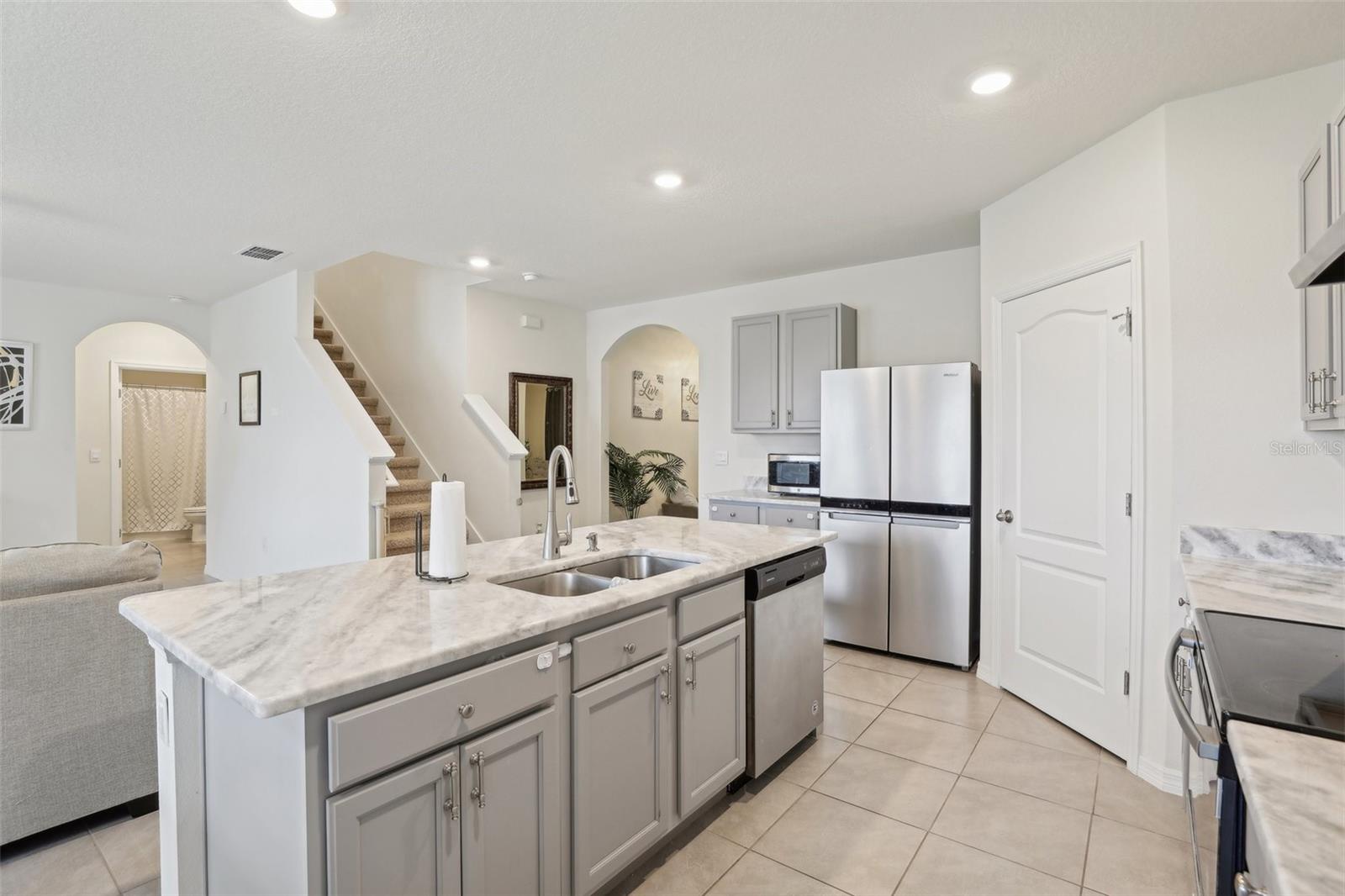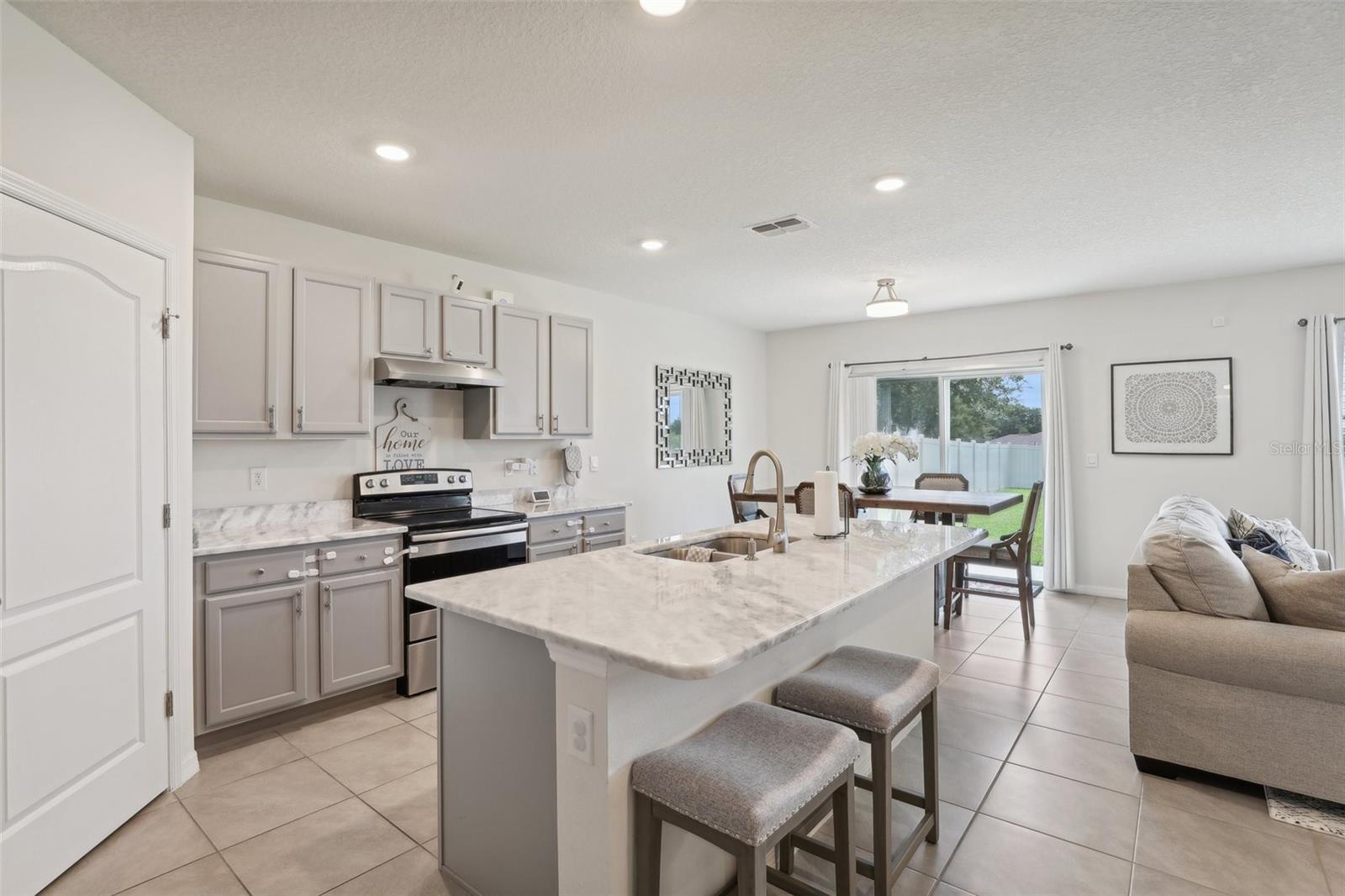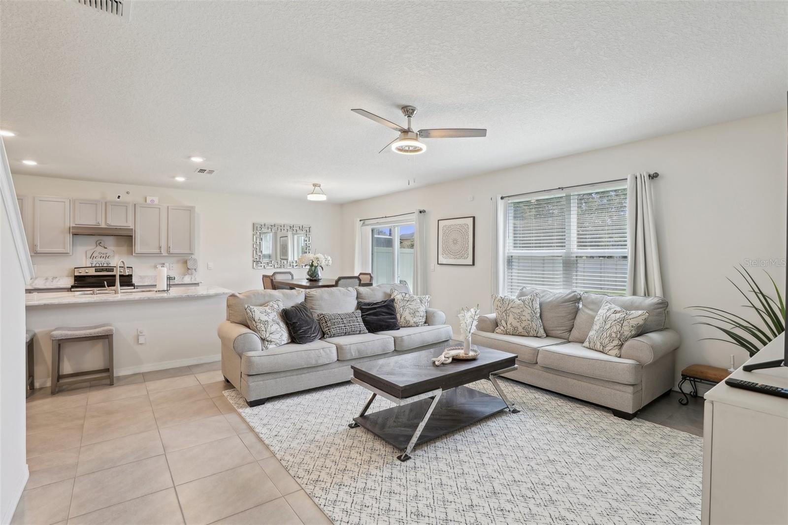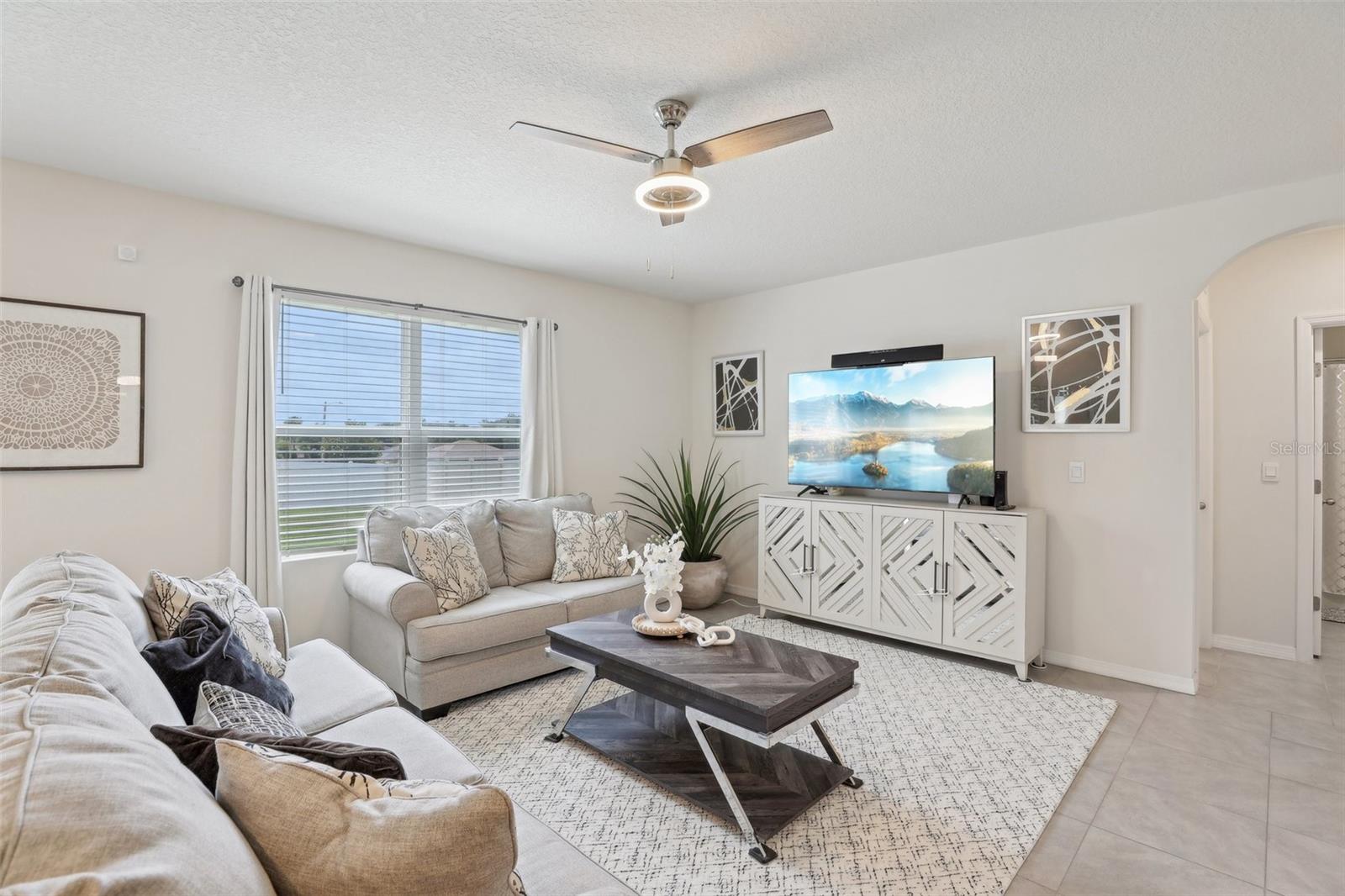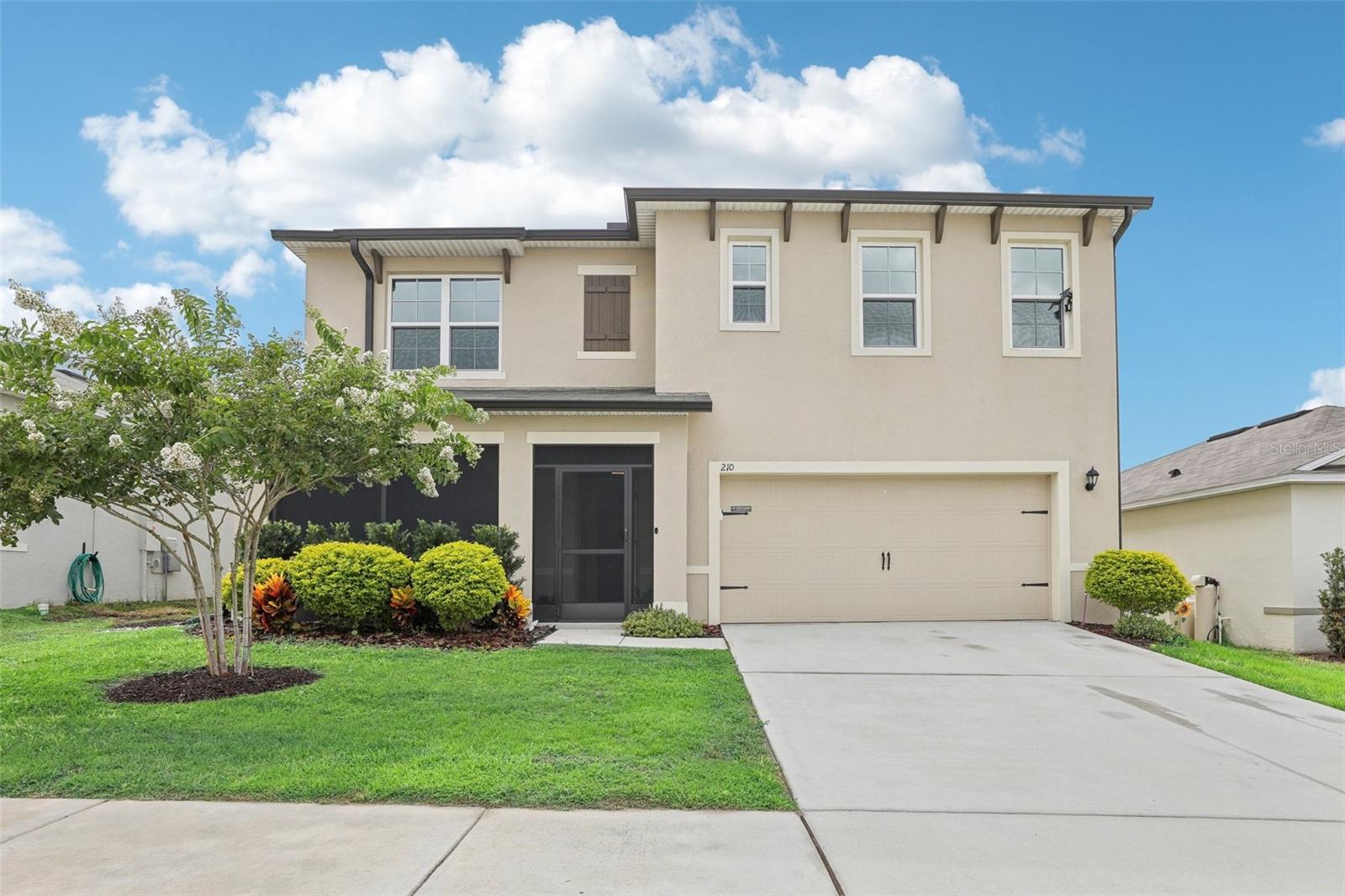 Price drop and closing cost incentive. LIKE NEW- 5 bedroom 3 bathroom full block construction home with 2 car garage built in 2021. You're greeted by a screened, covered front porch. Inside, the first floor features an open floor plan with tile flooring throughout the main living spaces, spacious great room that opens up to the dining space and kitchen with SS appliances, granite countertops, pantry and large island with seating. Dedicated office/flex space at the front of the home and bedroom with ensuite are also on the main level. Upstairs features a primary bedroom with ensuite featuring dual vanities, step in shower and his/hers closets. You'll also find a loft/media room, laundry room and 3 more bedrooms with shared bath on this level. Outside is a large, level fenced yard. Lucerne Park also offers a community rich with amenities and is conveniently located close to everything that the area has to offer from world class golf, theme parks, dining, shopping and more with easy access to highways and a short drive to the beach. Check out the 3D tour online and schedule a private viewing today!