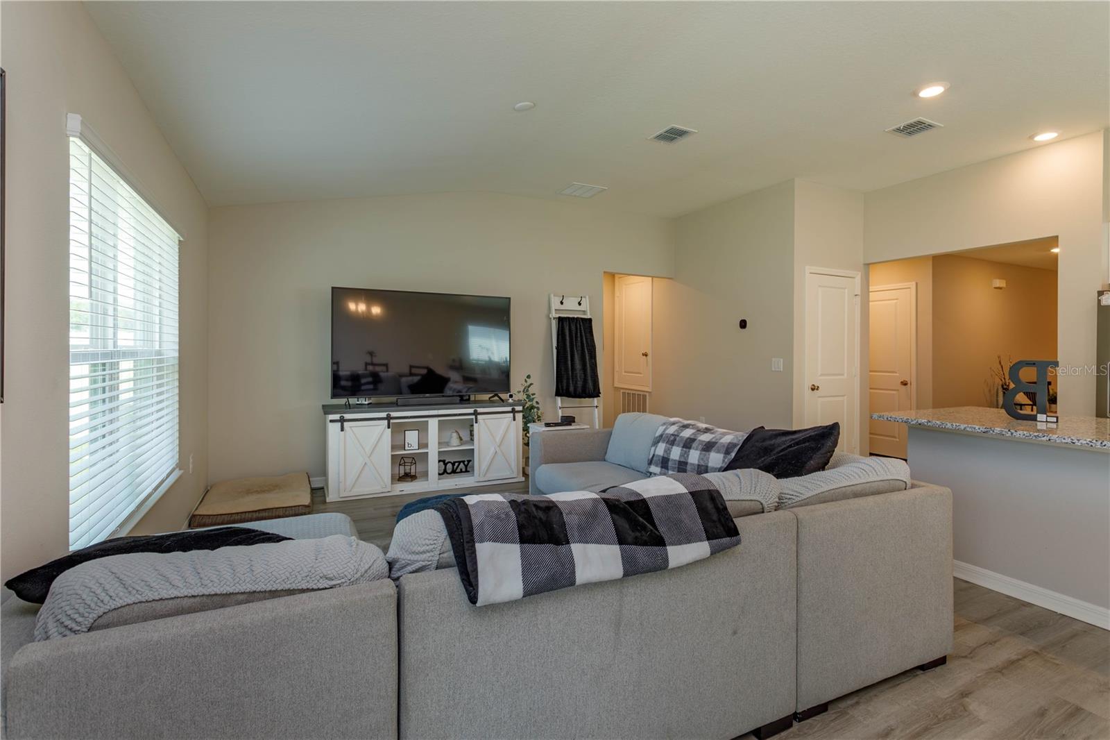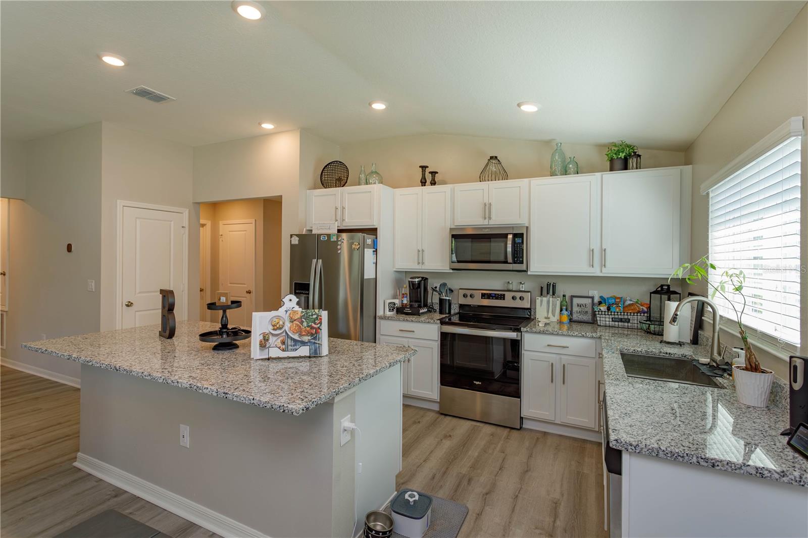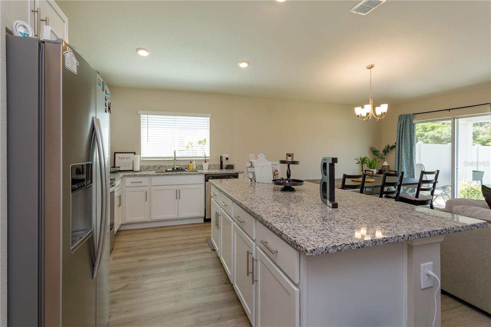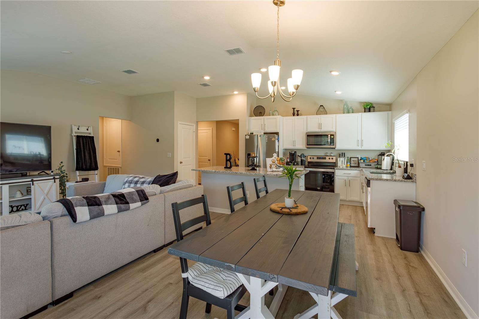 Welcome home! This wonderful 3 bedroom 2 bath home is located in a small and intimate community of Spirit Landing. When you pull up to this great home you’ll love the fresh look of this 2023 built home. Step inside and you’ll be impressed with a large open foyer. This is an open floor plan home that boasts a nice size kitchen with island and stainless steel appliances adjoining to the living room and the dining room. Head into the master bedroom and you’ll find a walk in closet plus an en suite bathroom that has a dual sink vanity. This is a split plan home that also features 2 more bedrooms, another full bathroom and an indoor laundry room. Head out through the sliding doors to the backyard and you’ll find yourself overlooking a vinyl fenced backyard with no rear neighbors. This is the perfect place for entertaining friends and family or just relaxing. Don’t miss out, make an appointment to see this home today!