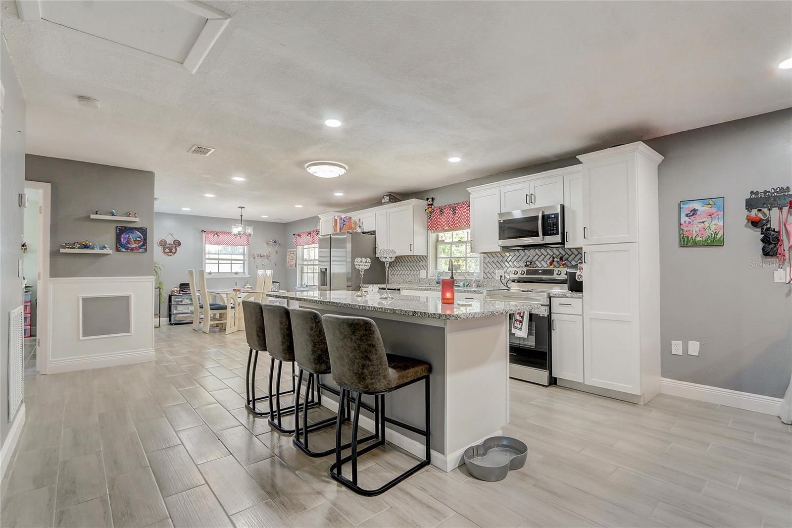 Discover your dream home in this beautifully remodeled 4-bedroom, 2-bathroom oasis situated on a spacious .31-acre lot. This inviting residence features an open-concept, split floor plan flooded with natural light, perfect for modern living. Enjoy peace of mind with brand-new windows and a new roof. Step outside to your private above-ground pool with a deck, ideal for summer fun, or unwind on the covered, screened-in lanai, perfect for sipping your morning coffee or tea. Nestled in a quiet cul-de-sac, this home offers ample space for gatherings both inside and out, complete with a separate dining area for entertaining. Don't miss the chance to make this exceptional property your own!