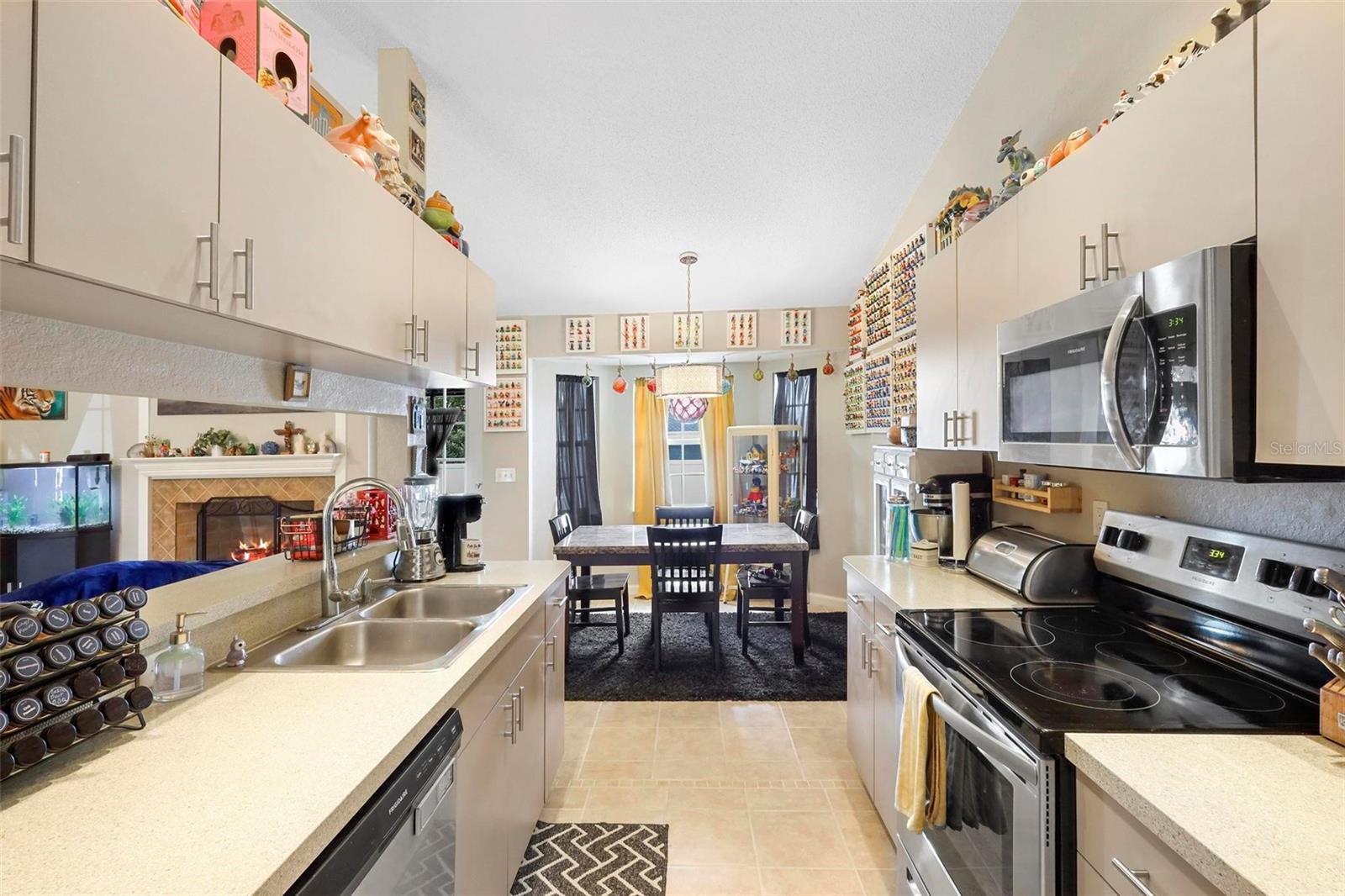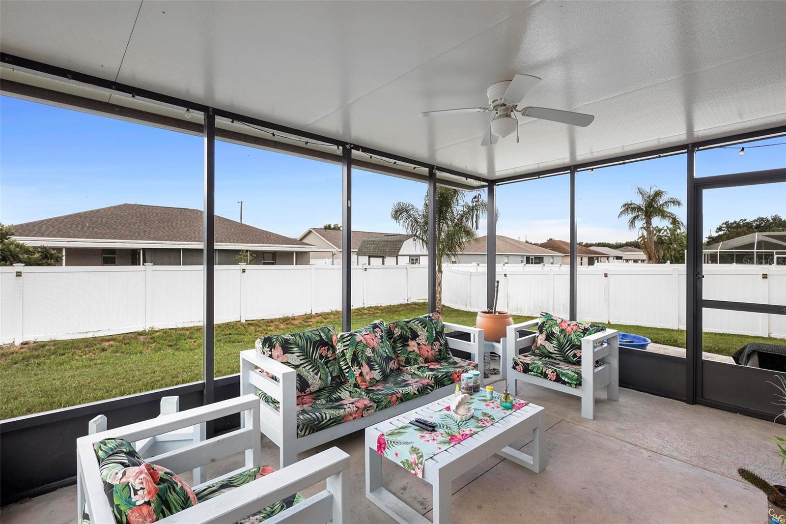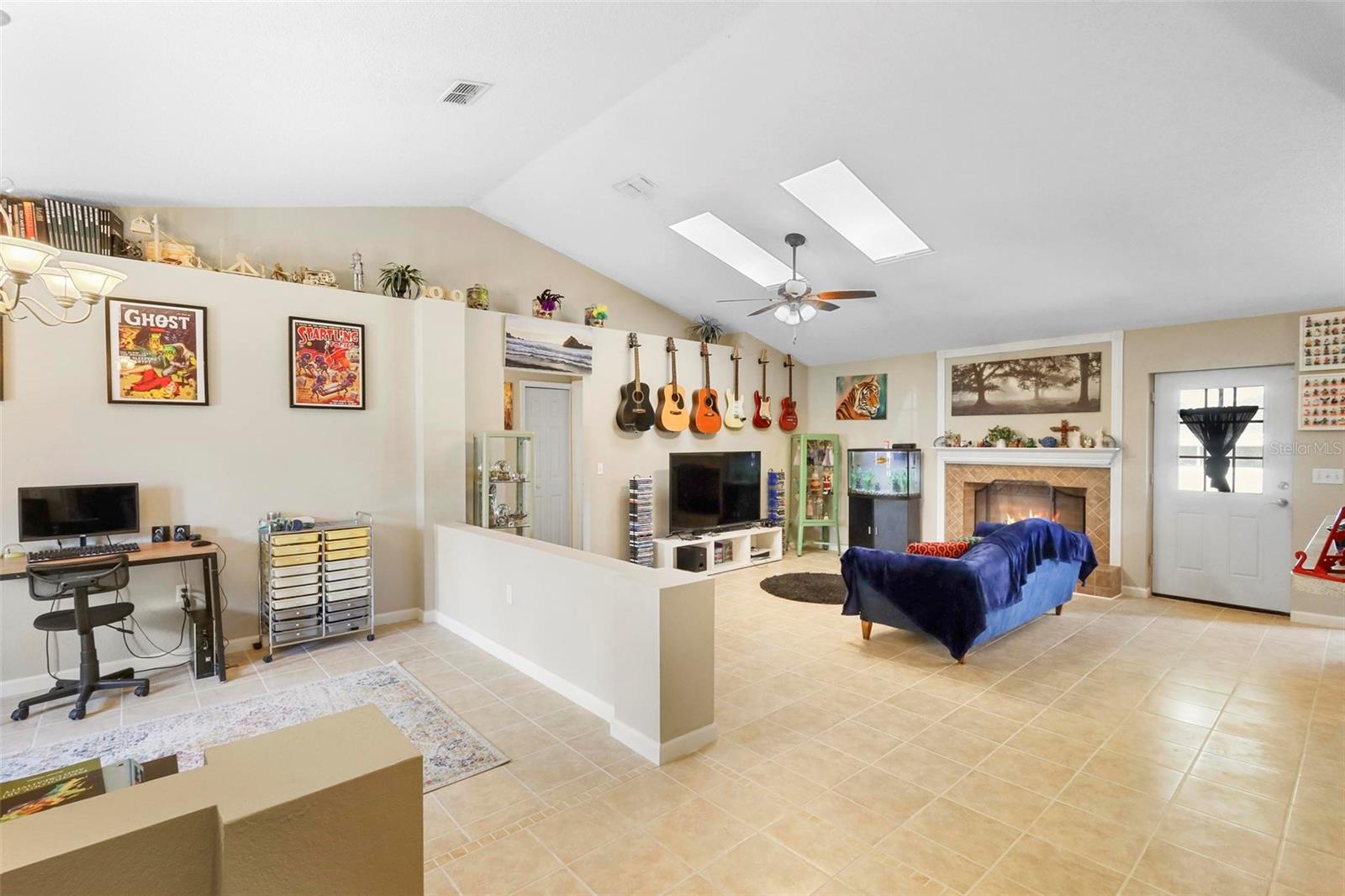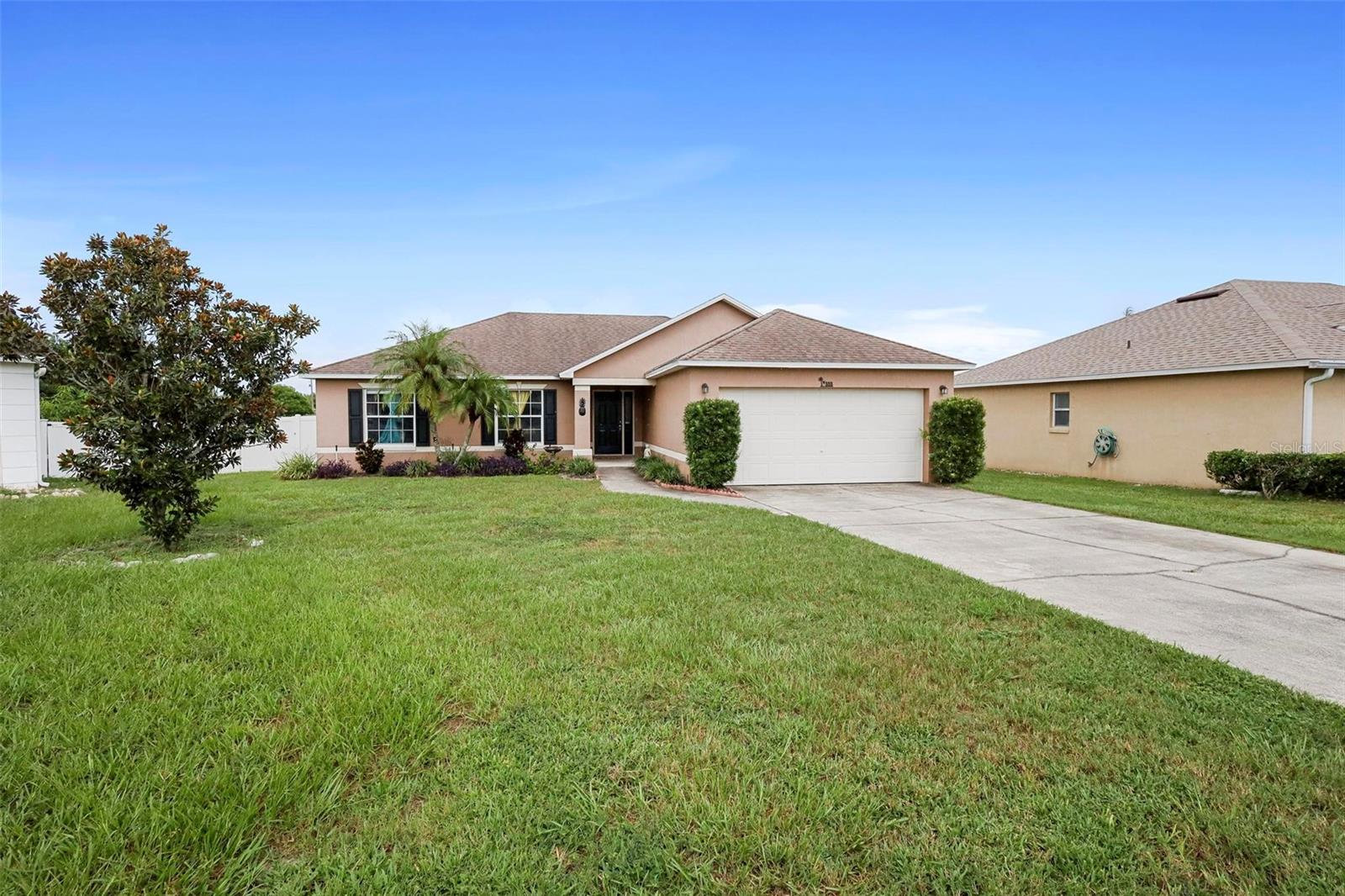 Step into your dream Florida retreat in the sought-after gated community of Heather Glen! This beautifully maintained 3-bedroom, 2-bathroom home offers the perfect blend of comfort and style, all nestled on nearly a quarter-acre. With recent updates that include a newer roof, AC system, and tile flooring throughout, this home is move-in ready and waiting for you! You'll love the outdoor living space, complete with an enclosed lanai featuring a mounted TV and sound bar, a cozy stone firepit, and a sparkling 48x14 above-ground pool with a deck box—perfect for cooling off and relaxing. The backyard is your private oasis with an upgraded irrigation system, and privacy fence with a gate. Inside, the open floor plan is bathed in natural light, with custom shaded skylight blinds and a wood-burning fireplace with an electric insert for those cooler evenings. The kitchen boasts refinished countertops and stainless steel appliances. The master suite is a true retreat with a generous walk-in closet, a luxurious soaking tub, a walk-in shower, and dual vanities. This home is nestled in the heart of a low-fee HOA community. Roof was replaced in 2019. The HVAC was replaced in 2022. You'll be just minutes away from Legoland, a variety of dining and shopping options, and Hwy 27, with Disney less then an hour away. Schedule your showing today and make this Florida haven yours!