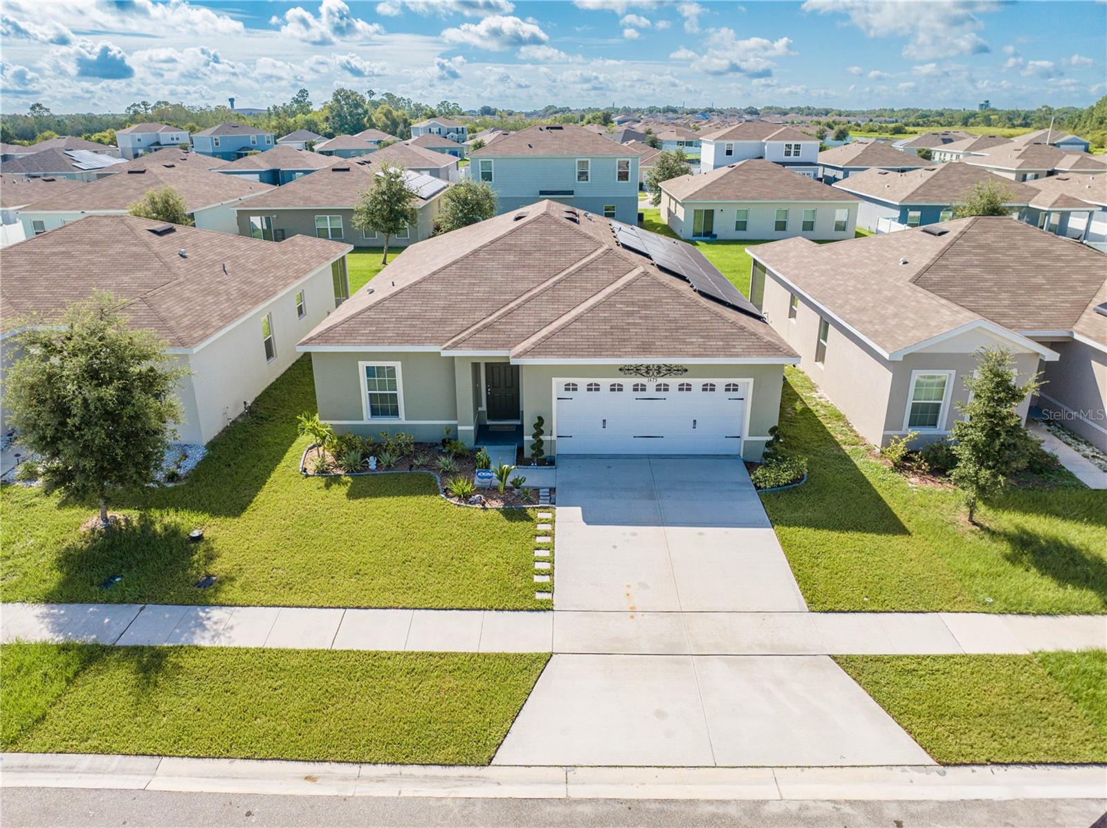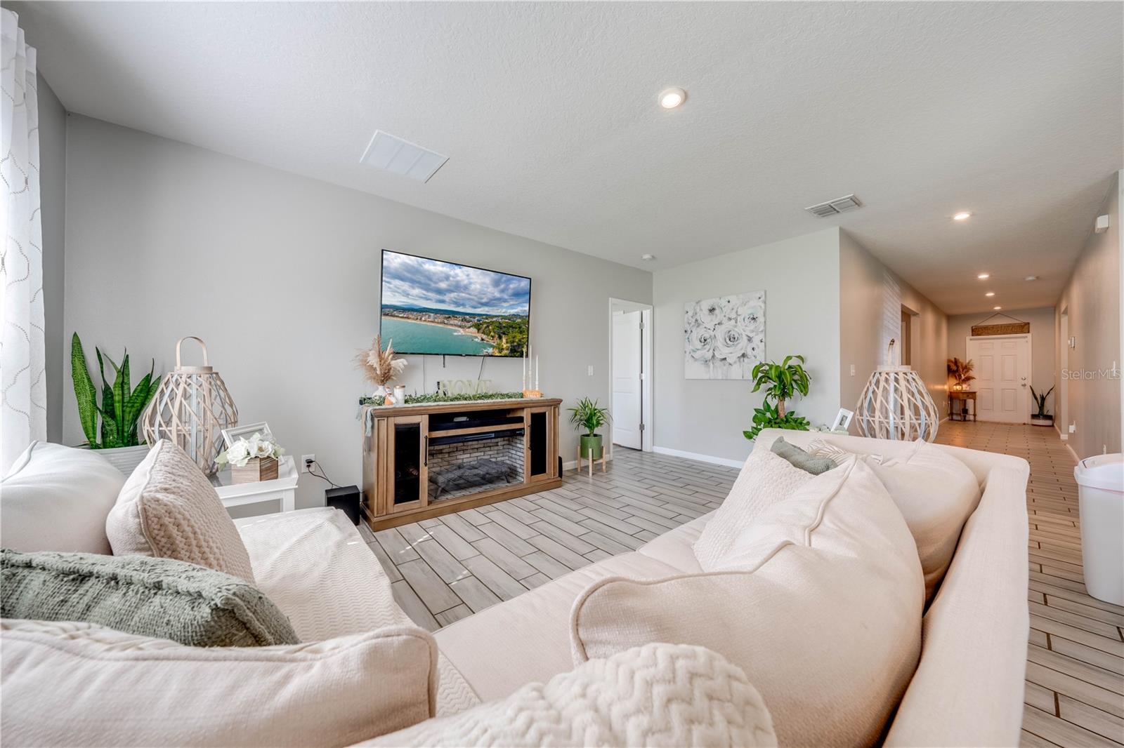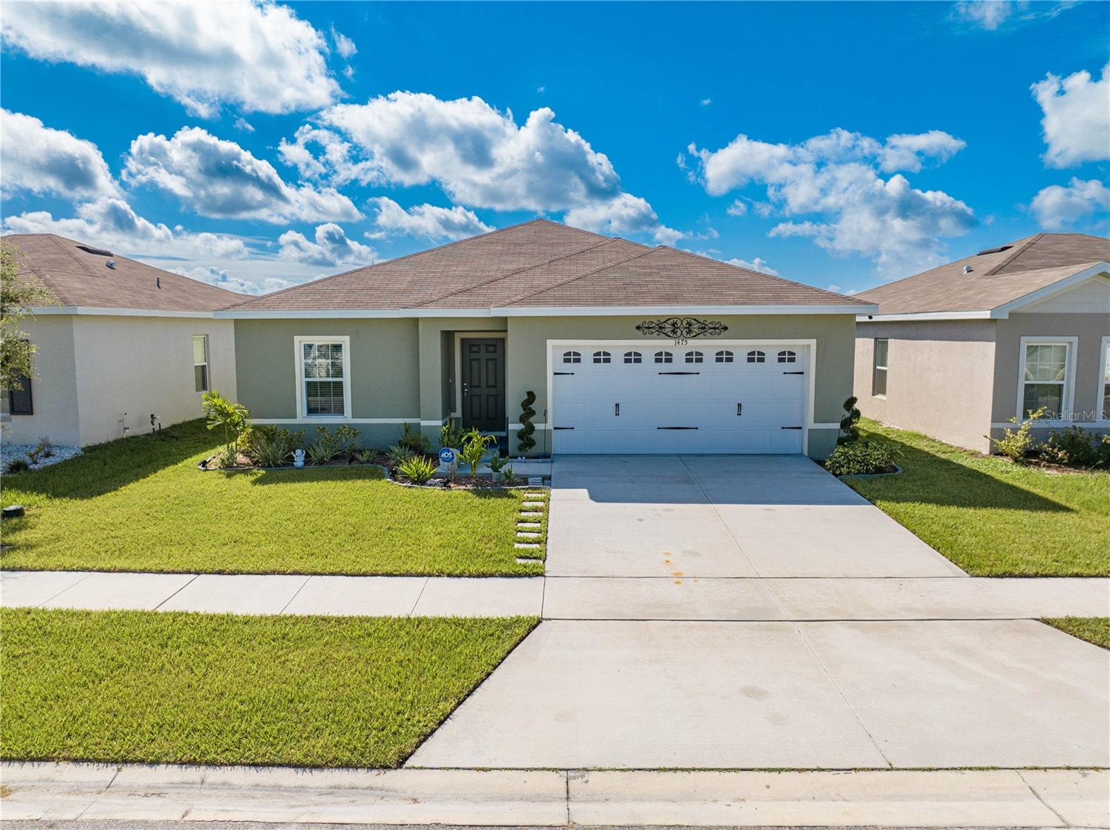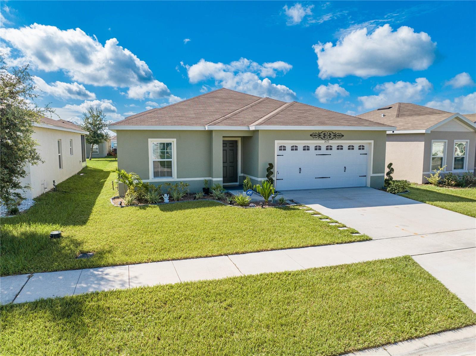 Perfectly located in the center of Winter Haven's Chain of Lakes, The Lakes at Lucerne Park has no CDD fees. This property has a smooth-top electric cooktop, oven, microwave, dishwasher, washer, and dryer made by GE. Along with these features, there is a WiFi-enabled garage opener, a NEST smart thermostat, recessed LED puck lighting throughout, and a smart garage door opener. 4 bedrooms and 2 complete bathrooms are featured in the floor plan. The third bedroom is across the hall from the first two, which are accessible through the foyer. Situated at the end of the house, the owner's suite provides the utmost tranquility and seclusion. Additionally, the home has a spacious kitchen/family room combo with a center island, perfect for entertaining and staying connected with friends and family. This home's large, open floor plan and completely tiled main living area make it ideal for those looking for a contemporary, cozy living area.