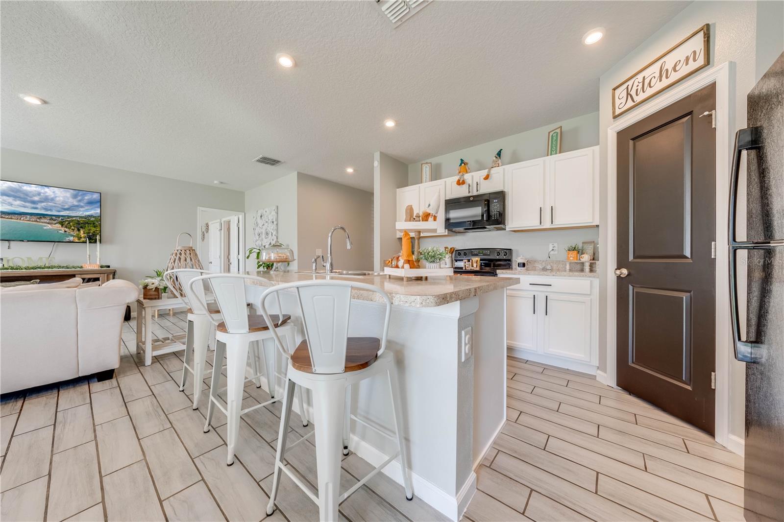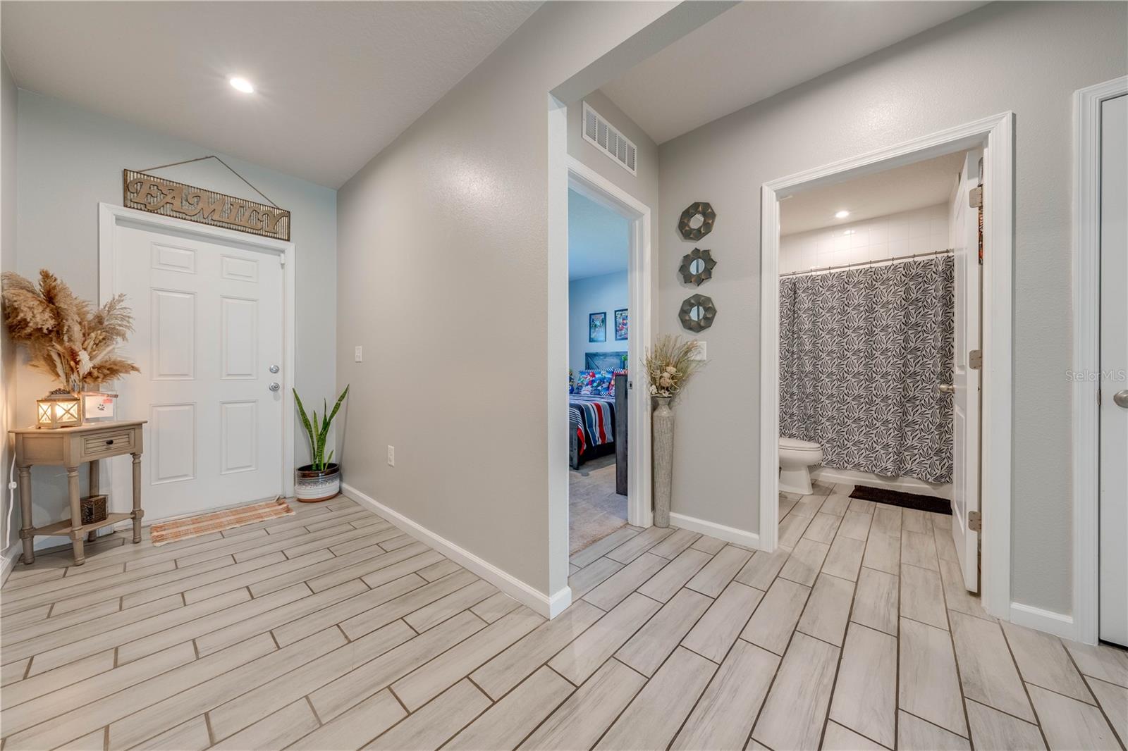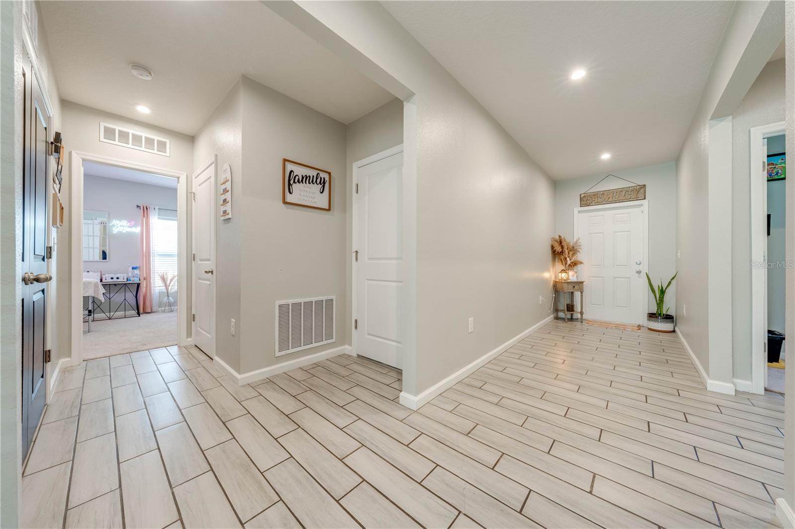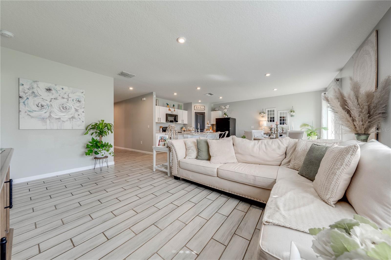 Perfectly located in the center of Winter Haven's Chain of Lakes, The Lakes at Lucerne Park has no CDD fees. This property has a smooth-top electric cooktop, oven, microwave, dishwasher, washer, and dryer made by GE. Along with these features, there is a WiFi-enabled garage opener, a NEST smart thermostat, recessed LED puck lighting throughout, and a smart garage door opener. 4 bedrooms and 2 complete bathrooms are featured in the floor plan. The third bedroom is across the hall from the first two, which are accessible through the foyer. Situated at the end of the house, the owner's suite provides the utmost tranquility and seclusion. Additionally, the home has a spacious kitchen/family room combo with a center island, perfect for entertaining and staying connected with friends and family. This home's large, open floor plan and completely tiled main living area make it ideal for those looking for a contemporary, cozy living area.