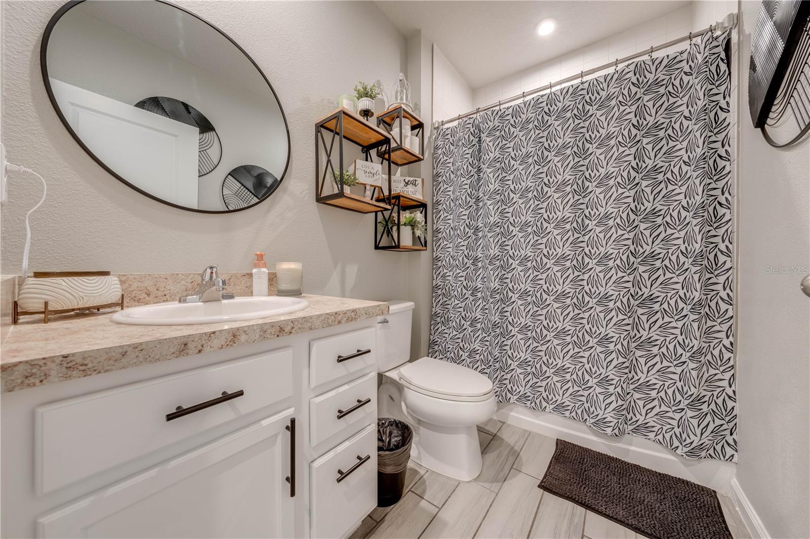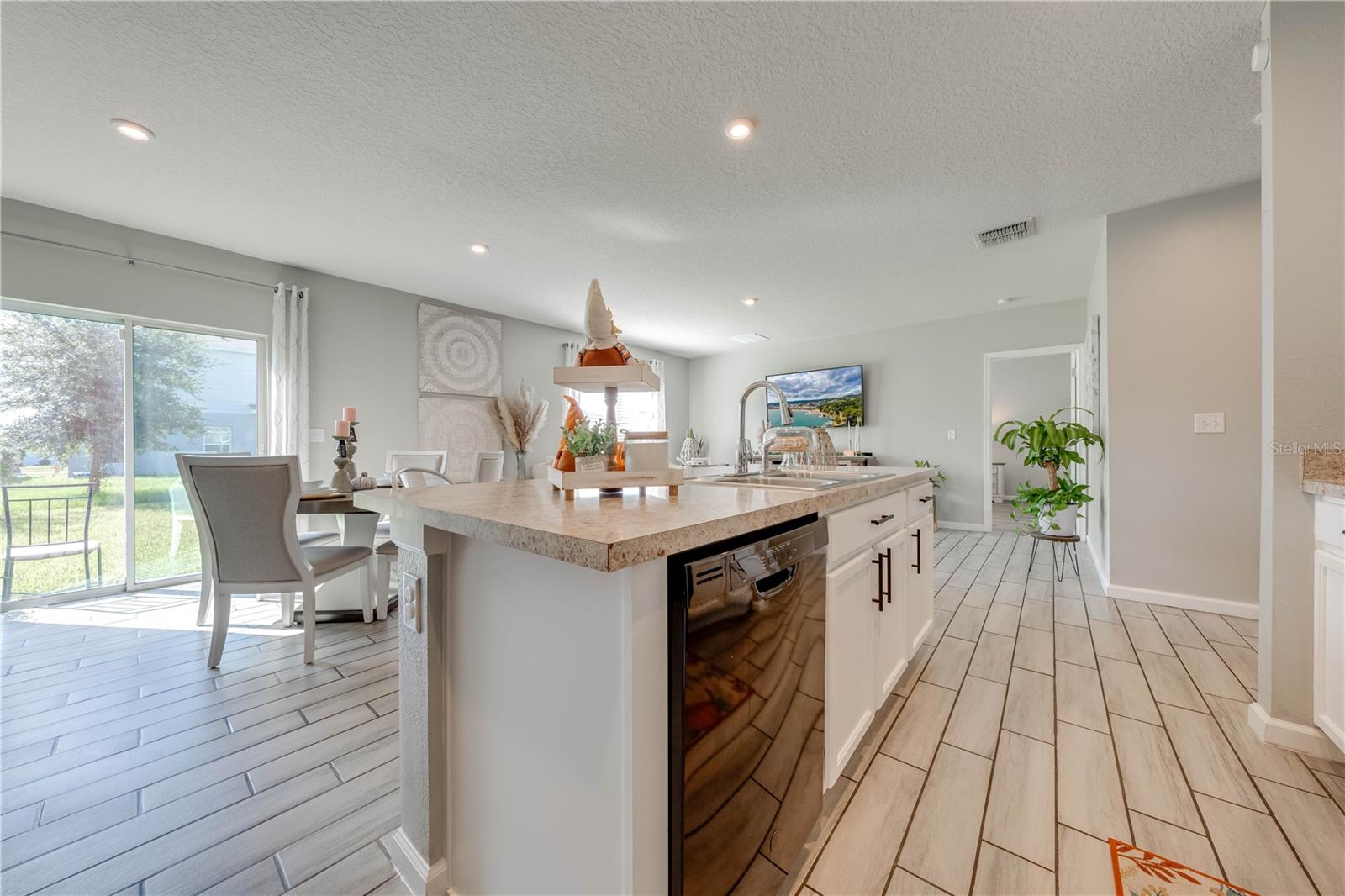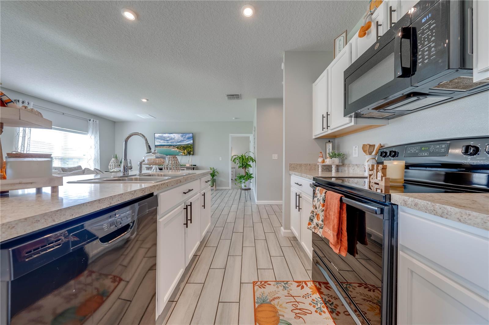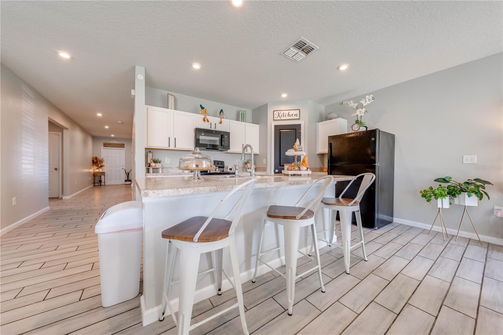 Perfectly located in the center of Winter Haven's Chain of Lakes, The Lakes at Lucerne Park has no CDD fees. This property has a smooth-top electric cooktop, oven, microwave, dishwasher, washer, and dryer made by GE. Along with these features, there is a WiFi-enabled garage opener, a NEST smart thermostat, recessed LED puck lighting throughout, and a smart garage door opener. 4 bedrooms and 2 complete bathrooms are featured in the floor plan. The third bedroom is across the hall from the first two, which are accessible through the foyer. Situated at the end of the house, the owner's suite provides the utmost tranquility and seclusion. Additionally, the home has a spacious kitchen/family room combo with a center island, perfect for entertaining and staying connected with friends and family. This home's large, open floor plan and completely tiled main living area make it ideal for those looking for a contemporary, cozy living area.