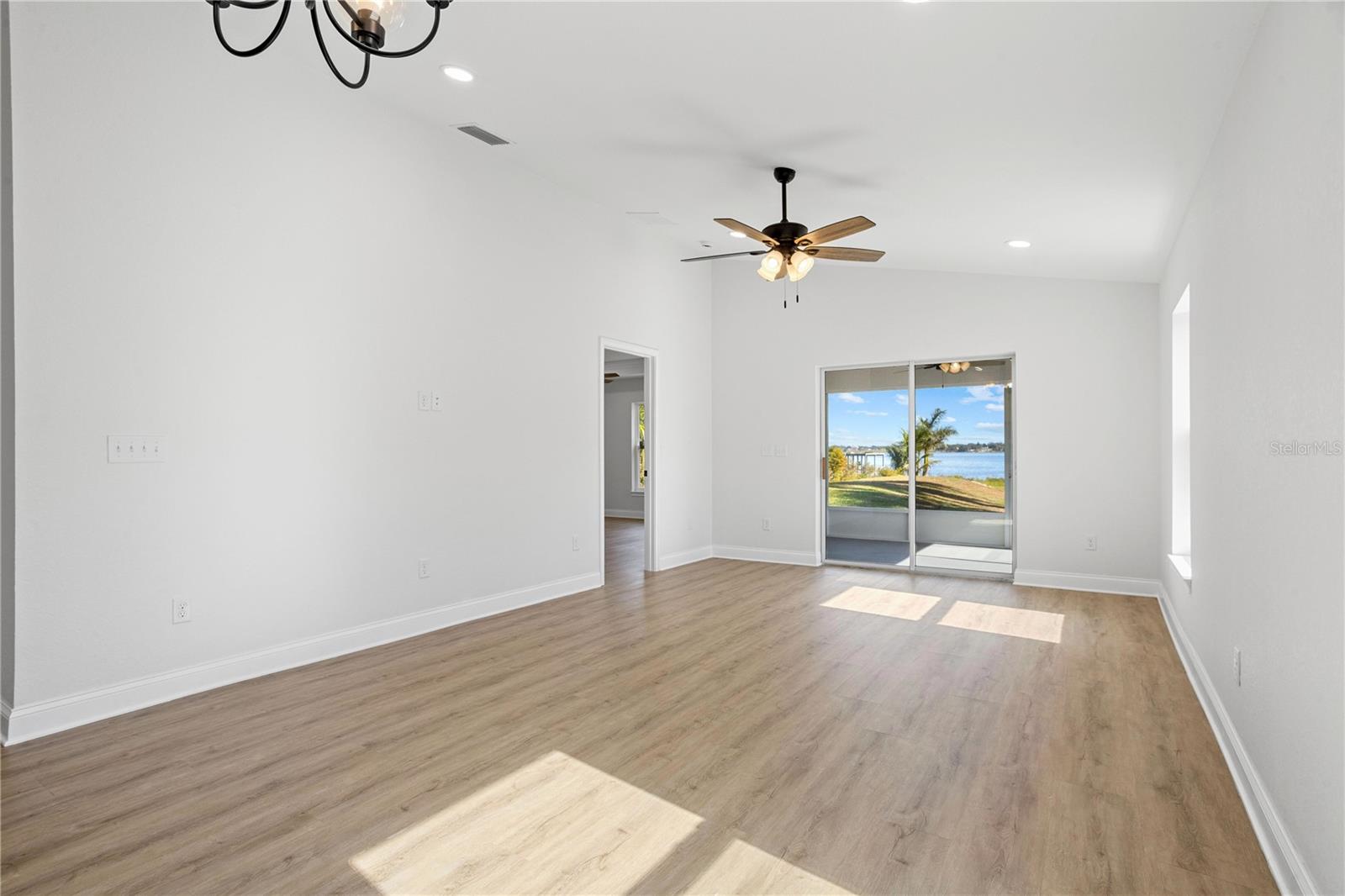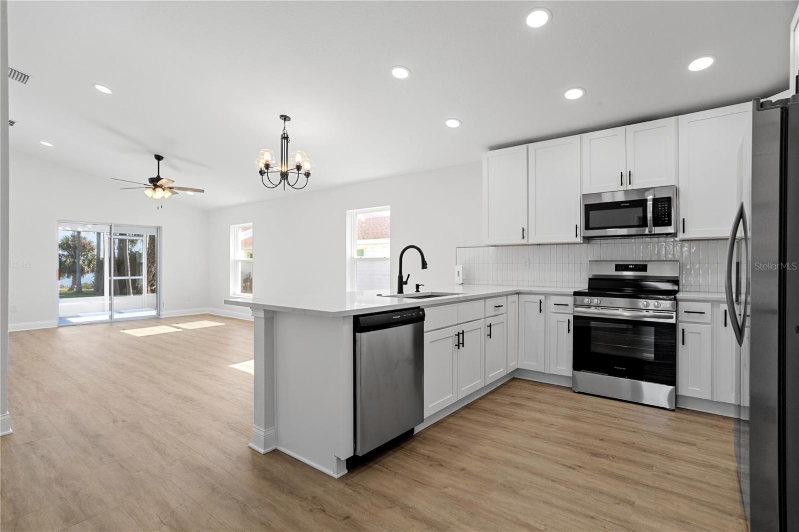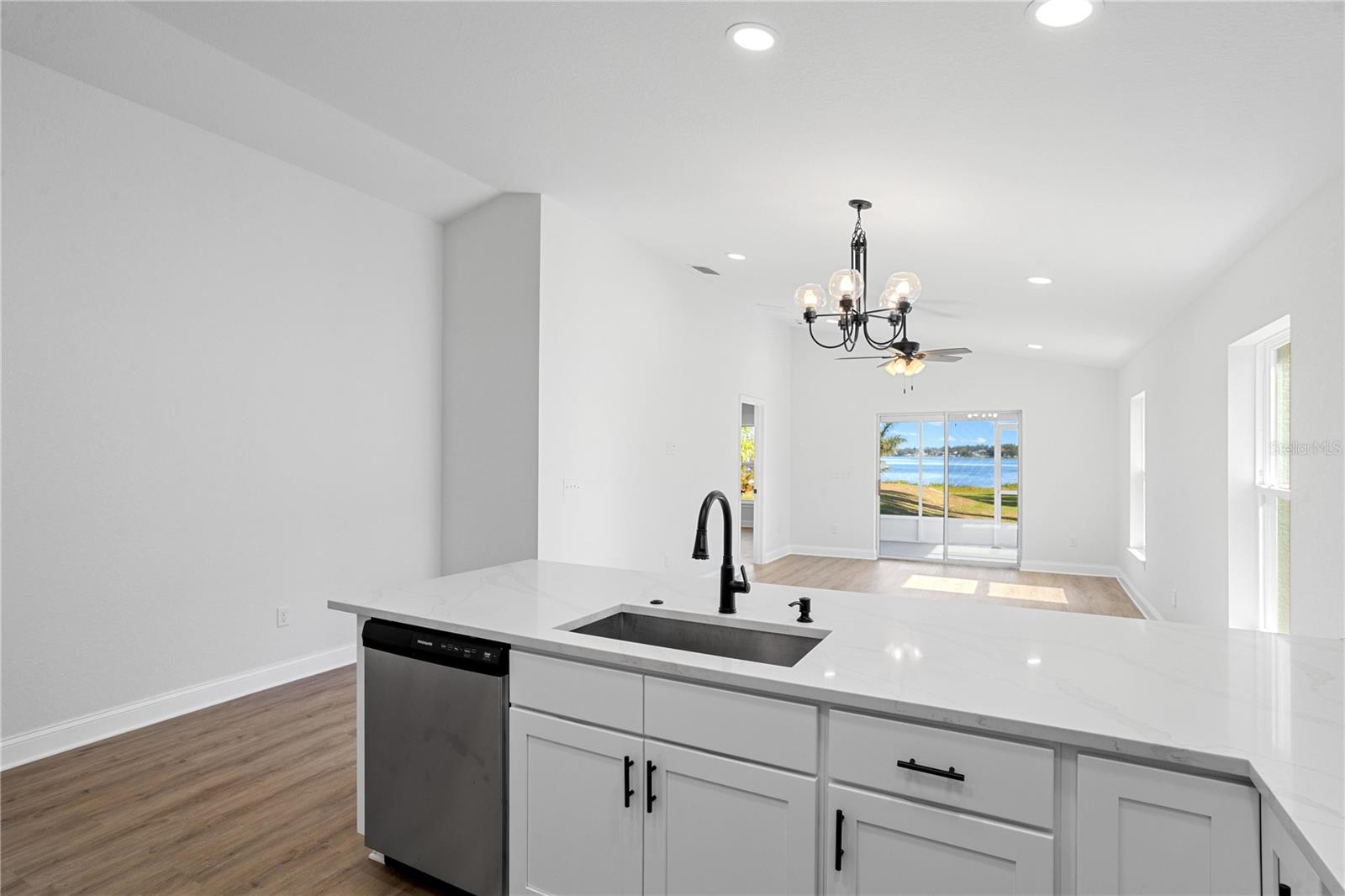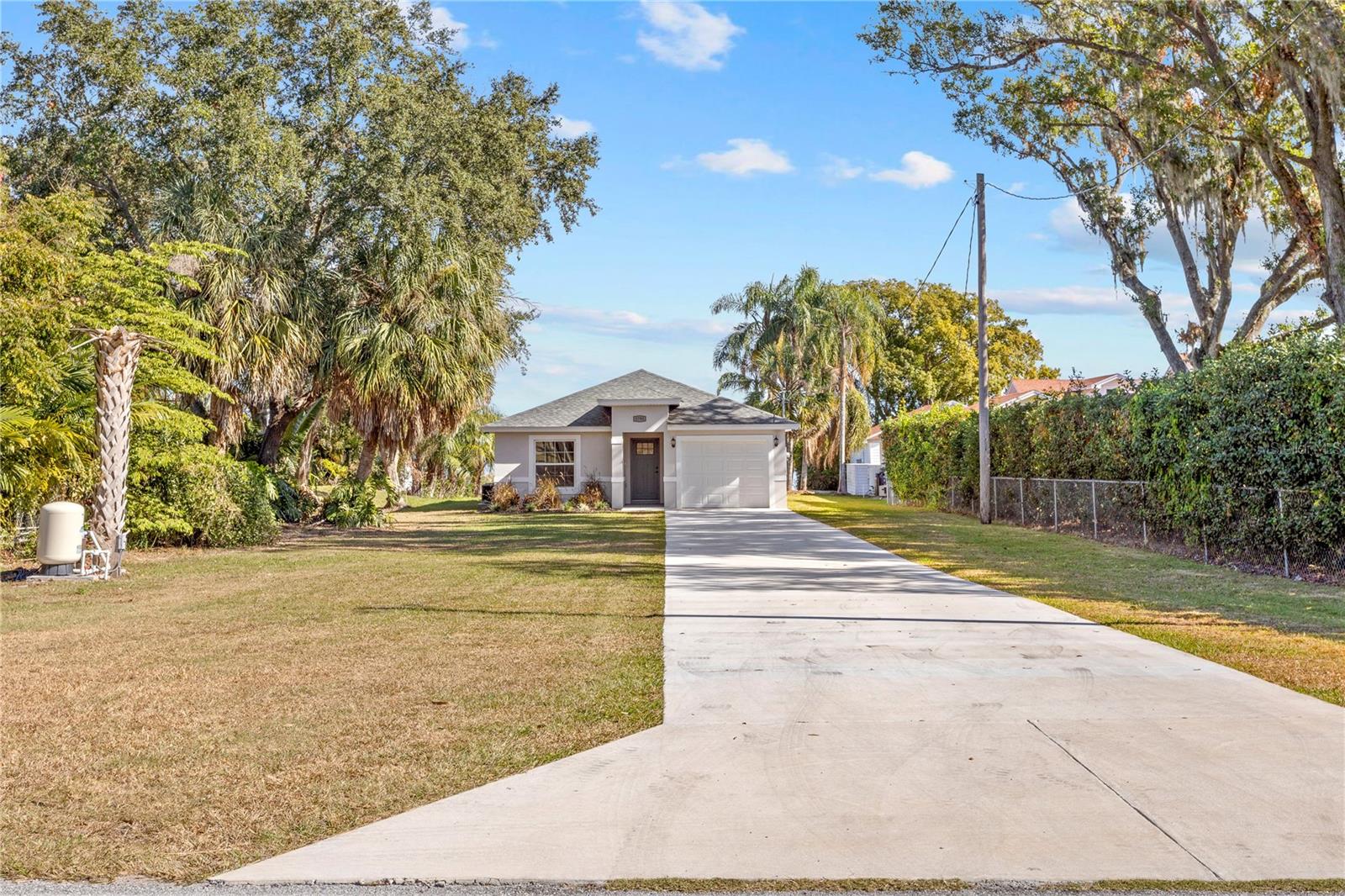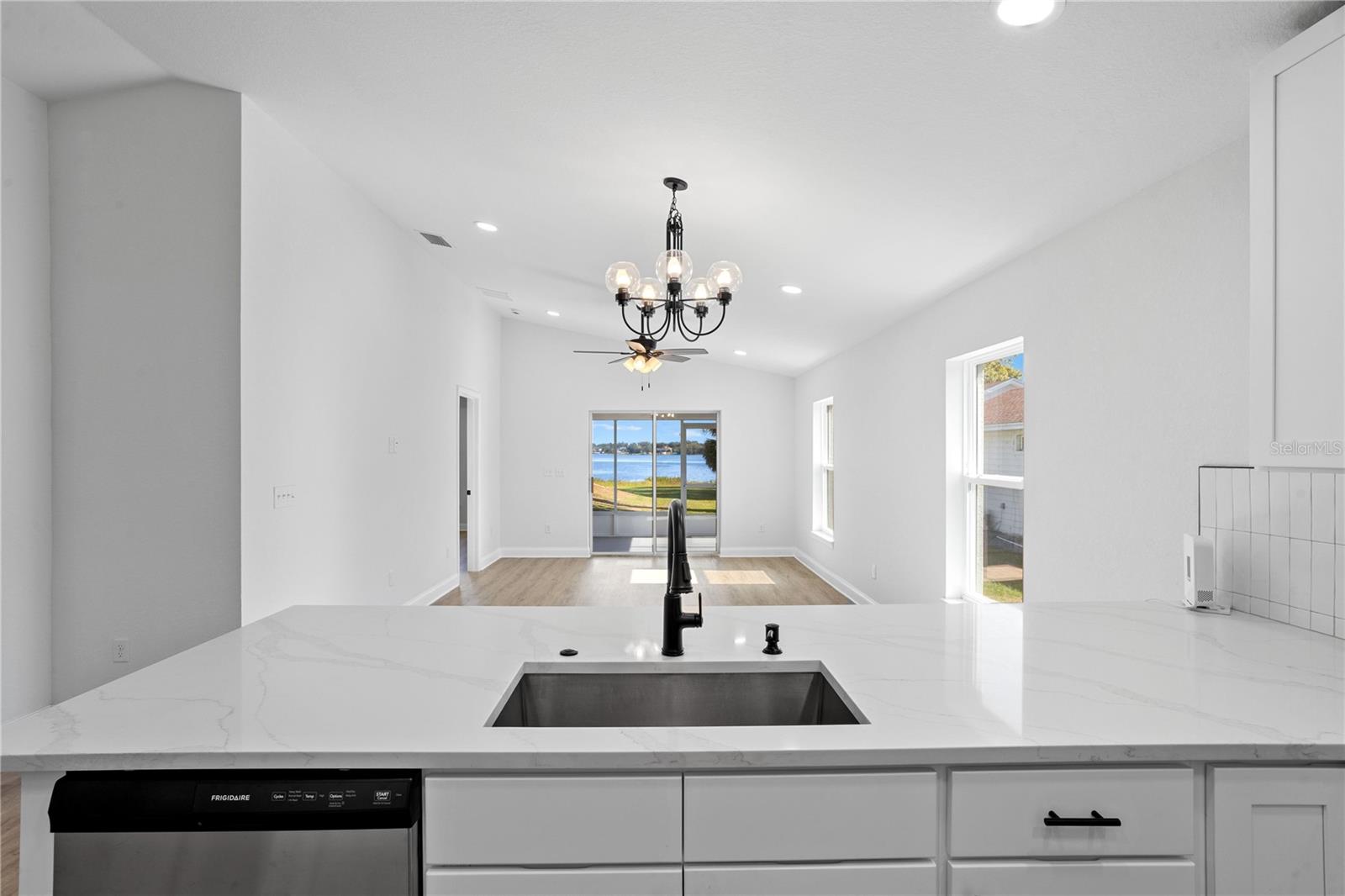 Welcome to your brand-new 2024 build on the serene shores of Eagle Lake! This thoughtfully designed 3-bedroom, 2-bathroom home offers modern living with stunning lakefront views and no HOA. Step into the inviting foyer, which opens to two guest bedrooms and a beautifully appointed kitchen. The kitchen is the heart of the home, featuring elegant quartz countertops, all new stainless steel frigidaire appliances, a breakfast bar, soft-close cabinets and drawers, and a closet pantry—perfect for seamless cooking and entertaining. The primary suite, tucked away at the rear of the home for added privacy, is extra spacious and includes an en-suite bathroom with a large shower stall and a walk-in closet. It also has added features including tray ceilings, recessed lighting, and a large window with a direct view of the lake! Enjoy the tranquility of the outdoors from the covered, enclosed, and screened-in patio with direct, unobstructed views of Eagle Lake—ideal for relaxing or hosting gatherings. Sitting on over half an acre, you'll have plenty of room to store extra vehicles, boats, RV's, etc. plus a blank canvas to make property additions if you wish. This stunning new build combines modern finishes, functional design, and a picturesque location. Schedule your showing today and make this lakeside retreat your dream home!