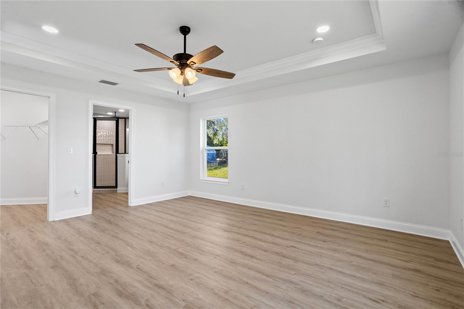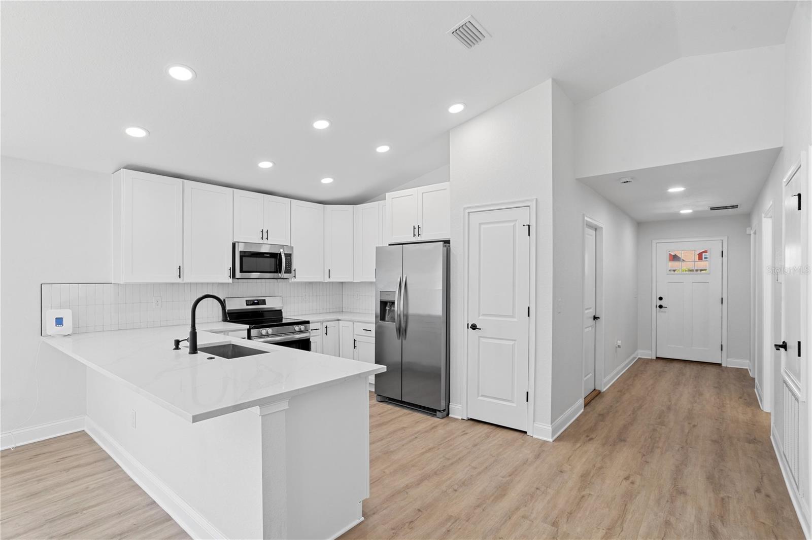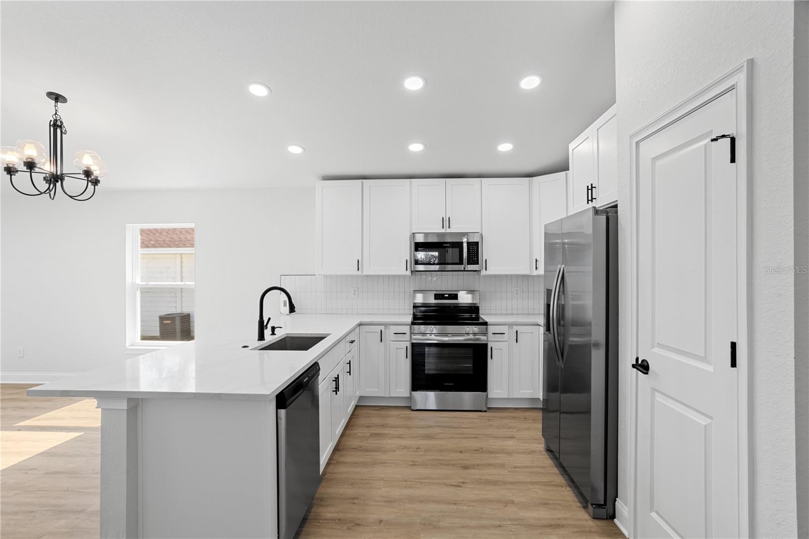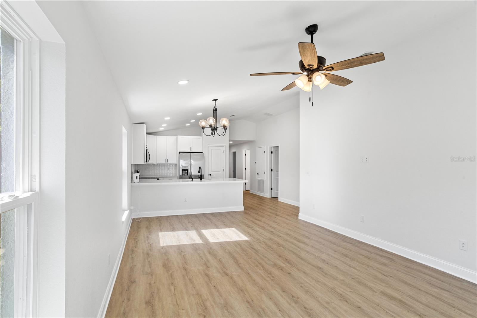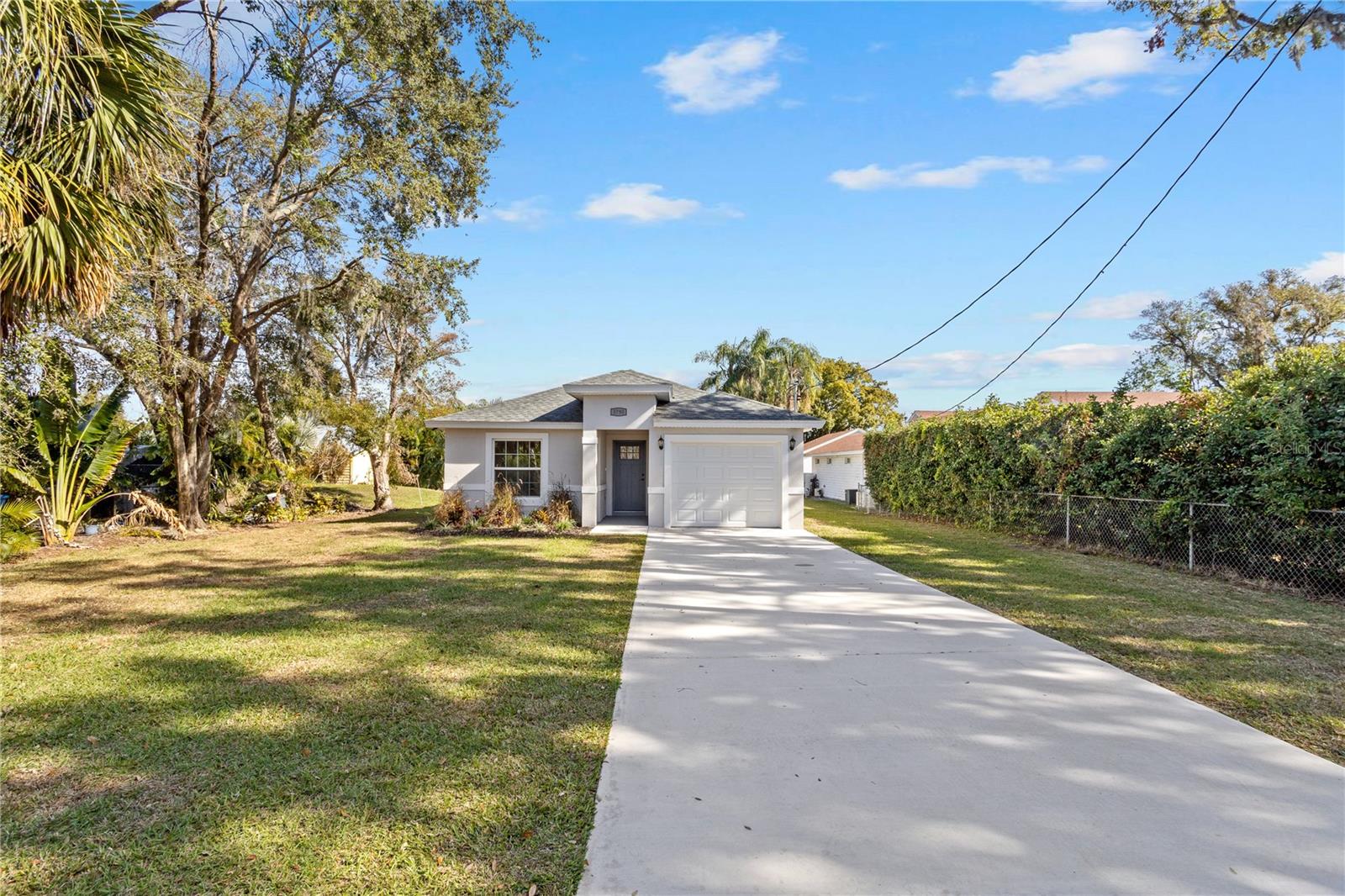Welcome to your brand-new 2024 build on the serene shores of Eagle Lake! This thoughtfully designed 3-bedroom, 2-bathroom home offers modern living with stunning lakefront views and no HOA. Step into the inviting foyer, which opens to two guest bedrooms and a beautifully appointed kitchen. The kitchen is the heart of the home, featuring elegant quartz countertops, all new stainless steel frigidaire appliances, a breakfast bar, soft-close cabinets and drawers, and a closet pantry—perfect for seamless cooking and entertaining. The primary suite, tucked away at the rear of the home for added privacy, is extra spacious and includes an en-suite bathroom with a large shower stall and a walk-in closet. It also has added features including tray ceilings, recessed lighting, and a large window with a direct view of the lake! Enjoy the tranquility of the outdoors from the covered, enclosed, and screened-in patio with direct, unobstructed views of Eagle Lake—ideal for relaxing or hosting gatherings. Sitting on over half an acre, you'll have plenty of room to store extra vehicles, boats, RV's, etc. plus a blank canvas to make property additions if you wish. This stunning new build combines modern finishes, functional design, and a picturesque location. Schedule your showing today and make this lakeside retreat your dream home!