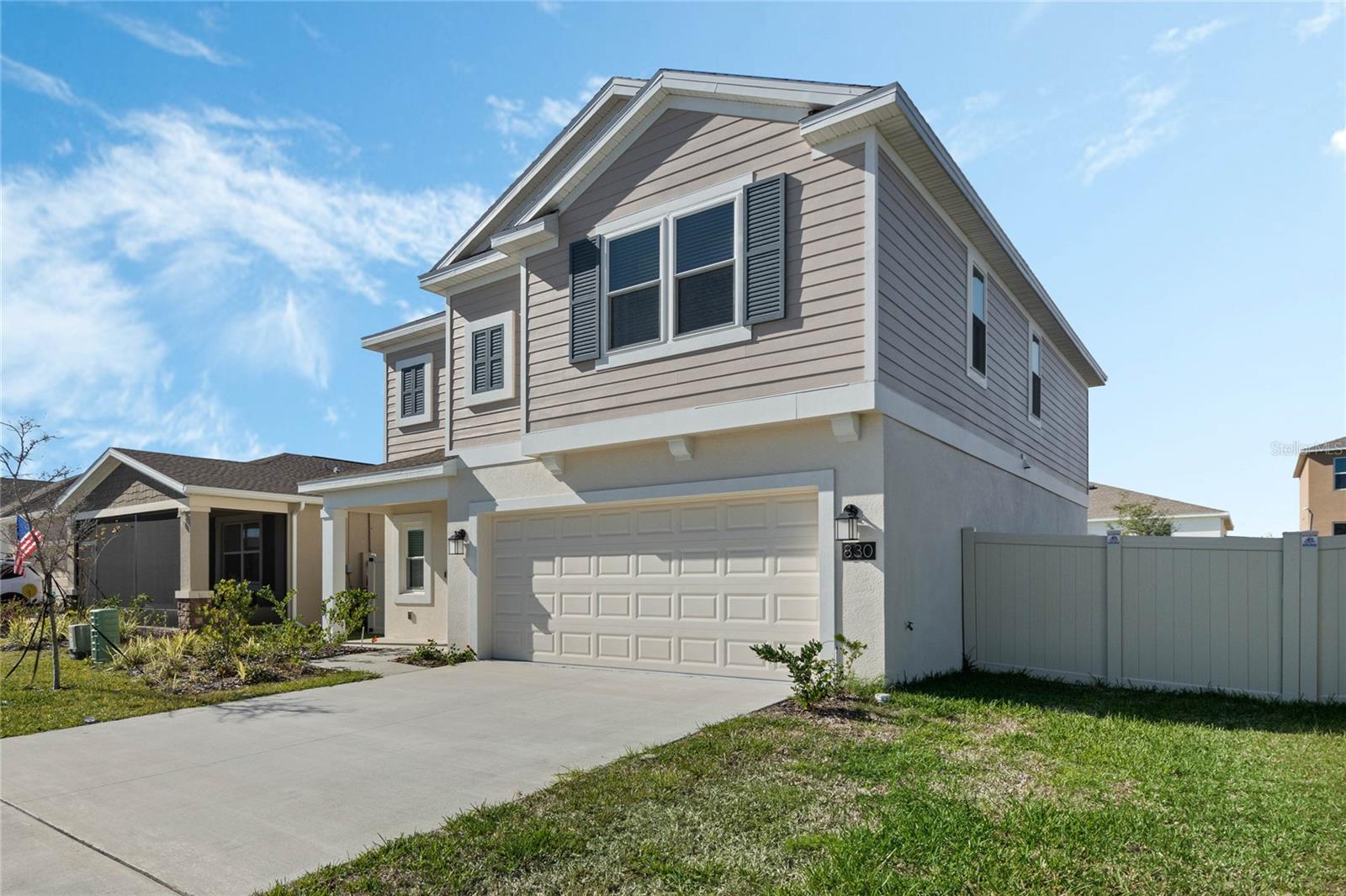 This stunning 5-bedroom, 2.5-bathroom home, built in 2023, offers 2,254 sq. ft. of modern living space in the growing city of Winter Haven. Featuring brand-new impact windows. The upstairs windows in the front of the home are tinted and have child safety locks. Energy-saving solar panels and a Ring security system are also included. What's not to love about a home that combines style, safety, and efficiency. The community offers a low semi-annual HOA. With a motivated seller, this home is priced to sell. Don't miss your chance to own a beautiful, nearly new home. Schedule your private showing today!