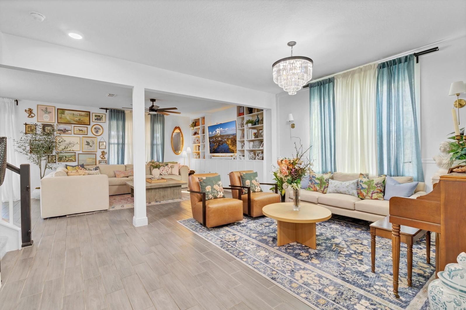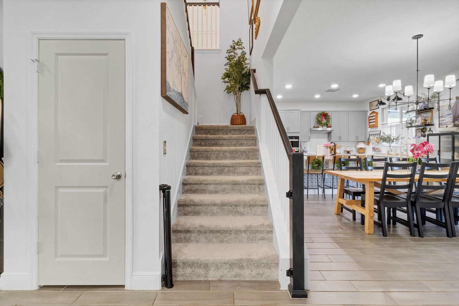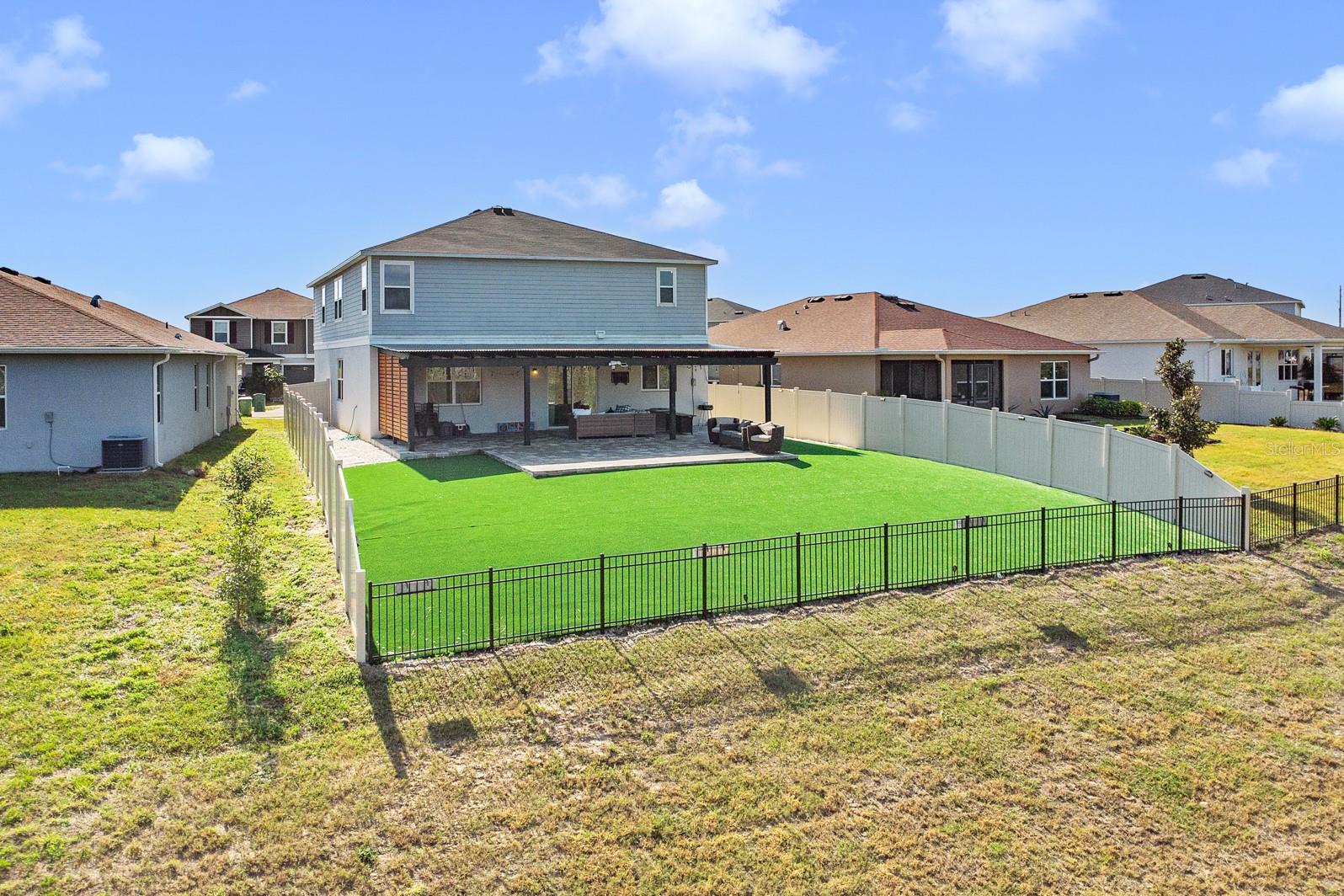 Extensively upgraded 5 bed 2.5 bath executive home with ultimate privacy in the backyard and located in the community of Lake Lucerne. No backyard neighbors as your home backs up to woods and expansive tree views. Walking in your guests will instantly feel at ease and welcomed with the open floor concept. Govee lights adorn the front of the house and pergola in the backyard. Enhanced permanent exterior Christmas lights controlled on phone add to your ability to create lasting memories. Your kitchen has been upgraded with quartz countertops and stainless steel appliances. For larger gatherings the kitchen declares itself party ready with a double oven installed in 2024. Custom trim molding upstairs and downstairs make your home feel elegant yet comfortable. Built in mudroom cabinet & shelving to go along in entertainment center in living room. Walk in pantry customized with counter top. Downstairs guest room closet was custom built. Garage floor has been given an epoxy finish. Garage door has been soundproofed. High end artificial turf backyard. Pergola backyard with stunning accent wall and gives your patio an ultimate outdoor living space. White rocks and brick walkway in backyard side of the house. As you ascend to your second level living space, you will find ample room for a secondary entertainment space. One upstairs room has luxury vinyl tile and could be easily used as an office / den. Expansive master bedroom with custom built master closet. Custom built closet in second bedroom upstairs. Custom built shelving in laundry room & master bath linen closet. Wallpaper throughout the whole house for that perfected look. The community offers a lovely pool, playground and large network of sidewalks for taking advantage of the joys of great Florida weather. No CDD with close proximity to both highway 27 and downtown Winter Haven. Come see your new home today!