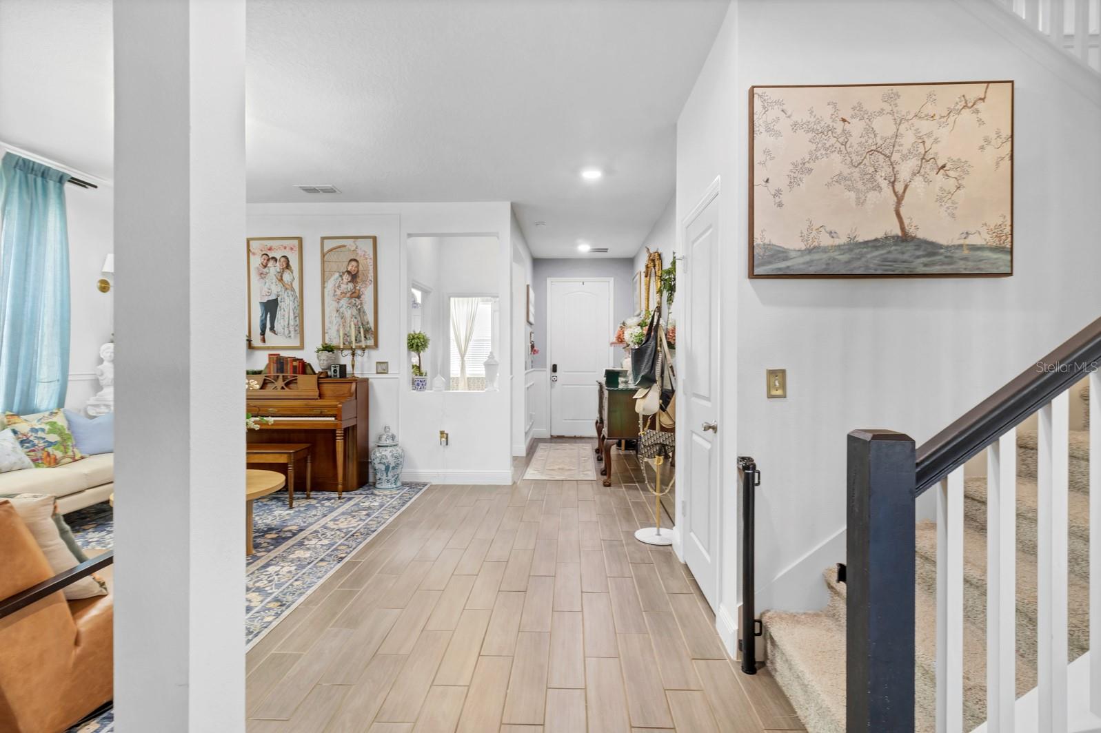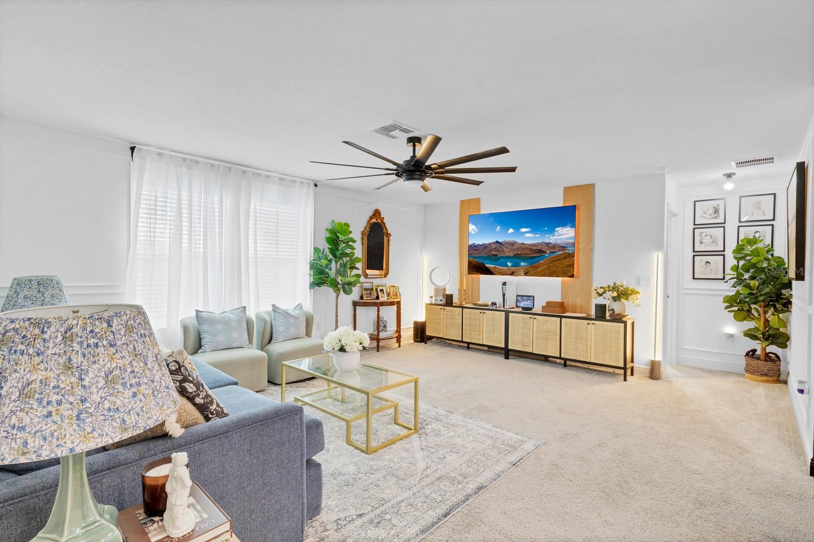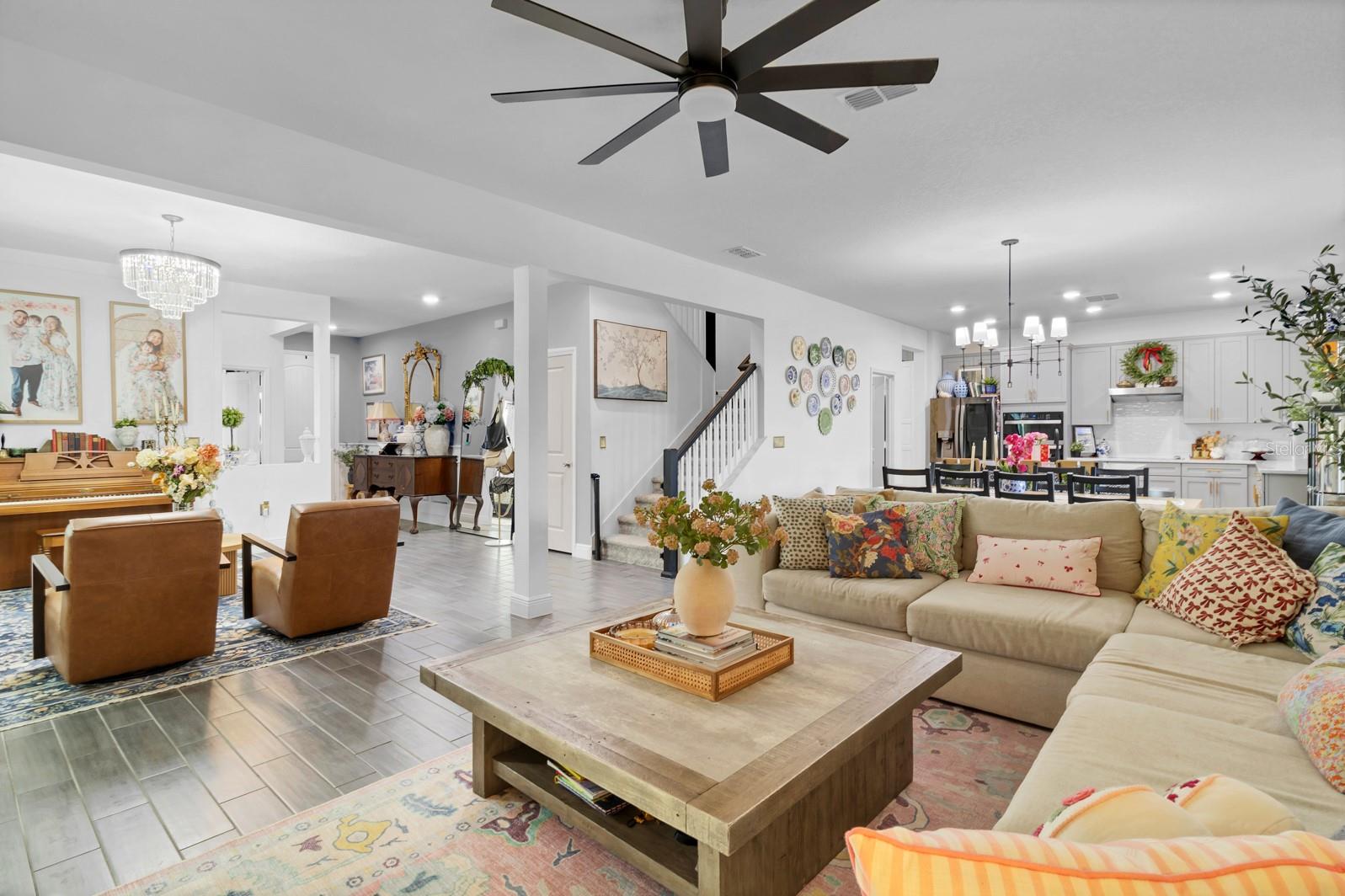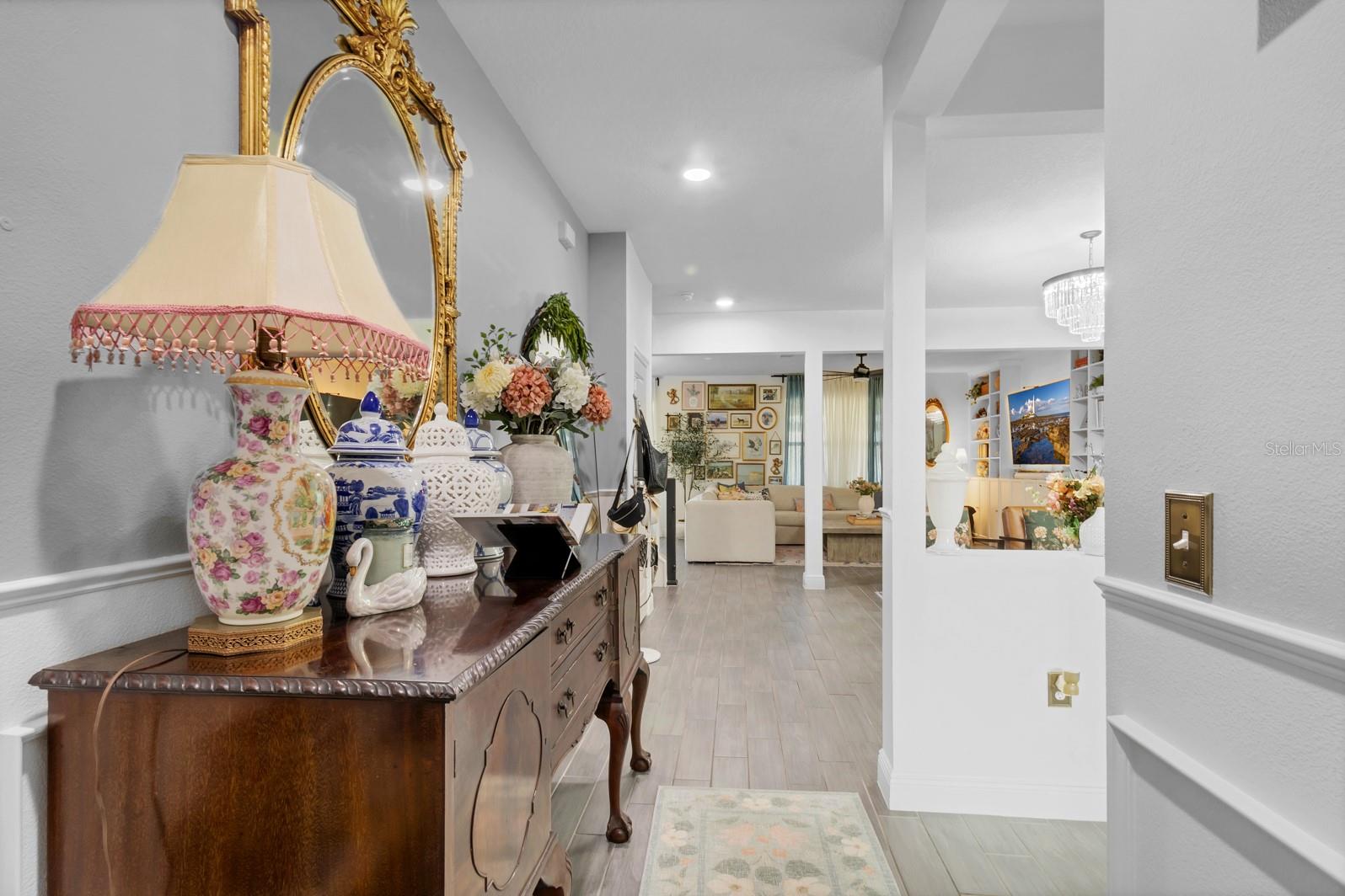 Extensively upgraded 5 bed 2.5 bath executive home with ultimate privacy in the backyard and located in the community of Lake Lucerne. No backyard neighbors as your home backs up to woods and expansive tree views. Walking in your guests will instantly feel at ease and welcomed with the open floor concept. Govee lights adorn the front of the house and pergola in the backyard. Enhanced permanent exterior Christmas lights controlled on phone add to your ability to create lasting memories. Your kitchen has been upgraded with quartz countertops and stainless steel appliances. For larger gatherings the kitchen declares itself party ready with a double oven installed in 2024. Custom trim molding upstairs and downstairs make your home feel elegant yet comfortable. Built in mudroom cabinet & shelving to go along in entertainment center in living room. Walk in pantry customized with counter top. Downstairs guest room closet was custom built. Garage floor has been given an epoxy finish. Garage door has been soundproofed. High end artificial turf backyard. Pergola backyard with stunning accent wall and gives your patio an ultimate outdoor living space. White rocks and brick walkway in backyard side of the house. As you ascend to your second level living space, you will find ample room for a secondary entertainment space. One upstairs room has luxury vinyl tile and could be easily used as an office / den. Expansive master bedroom with custom built master closet. Custom built closet in second bedroom upstairs. Custom built shelving in laundry room & master bath linen closet. Wallpaper throughout the whole house for that perfected look. The community offers a lovely pool, playground and large network of sidewalks for taking advantage of the joys of great Florida weather. No CDD with close proximity to both highway 27 and downtown Winter Haven. Come see your new home today!