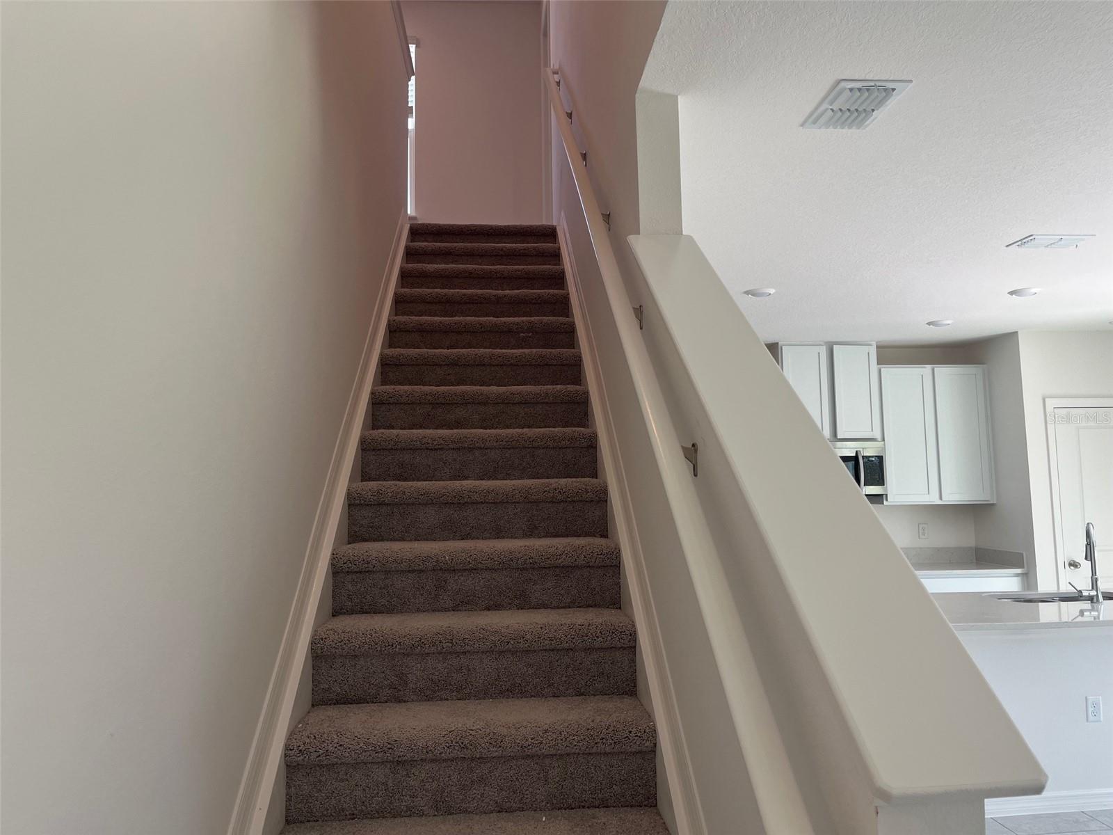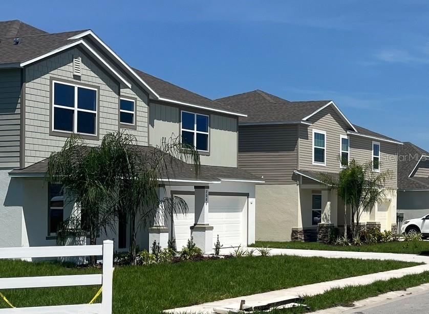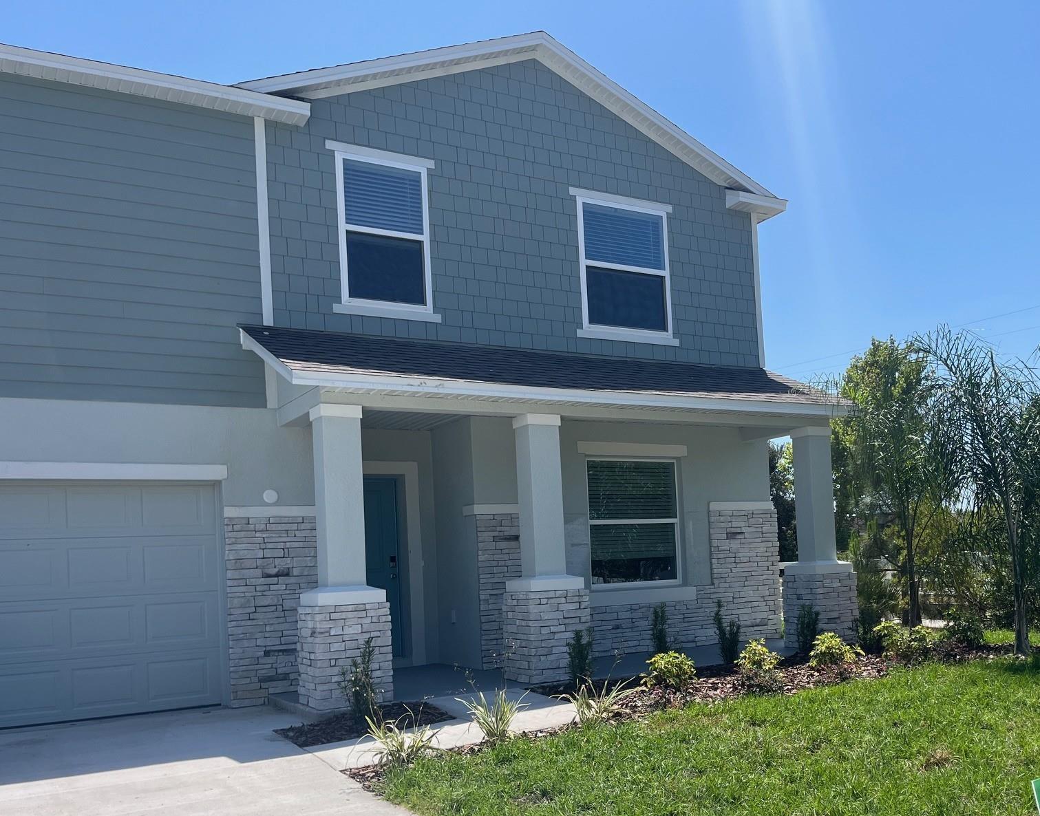 Move-In Ready!!! The Melbourne is a beautifully designed two-story home that blends modern style, functionality, and luxury features, creating the perfect space for both relaxation and entertaining. Situated on a corner lot with a serene view of the pond, the home’s exterior is enhanced by stunning stone accents, adding to its curb appeal and charm. On the first floor, a private bedroom with a full bath provides an ideal space for guests or multigenerational living. This versatile room offers both privacy and convenience, making it perfect for family visits, a home office, or additional sitting space. It’s the perfect flexible area for your needs. As you enter, the bright and airy family room flows seamlessly into the kitchen and dining areas, where natural light fills the space, creating an inviting atmosphere. The spacious kitchen is a chef's dream, featuring elegant quartz countertops, a central island, and ample cabinetry for all your storage needs, along with a refrigerator. A rear staircase off the kitchen leads to the second floor for easy access. Upstairs, the private owner’s suite provides a relaxing retreat, complete with a generous walk-in closet and an en-suite bathroom featuring dual vanities and a luxurious tile shower with an enclosure. The suite also boasts a tray ceiling, adding a touch of sophistication and elegance. Three additional bedrooms are well-appointed and share a centrally located full bathroom. A versatile loft area offers extra living space to fit your lifestyle, while the second-floor laundry room, complete with a washer and dryer, adds a layer of convenience. The home also features a spacious two-car garage with ample storage and parking. Outside, the extended rear patio offers an ideal space for outdoor entertaining or simply enjoying a peaceful moment while taking in the beautiful view. Designed with energy efficiency in mind, the home is equipped with Energy Star windows, and the durable architectural shingles add both style and long-term value. Inside, the common areas are finished with ceramic tile, offering a clean and stylish look, while the loft and bedrooms are carpeted for added comfort. The home’s professionally landscaped yard includes an irrigation system, keeping your lawn looking pristine year-round. With a full builder warranty, you can have peace of mind knowing the quality craftsmanship and attention to detail are guaranteed. The Melbourne offers a thoughtfully designed layout, modern finishes, and luxurious upgrades, making it a perfect choice for those seeking a blend of comfort, energy efficiency, and timeless style.