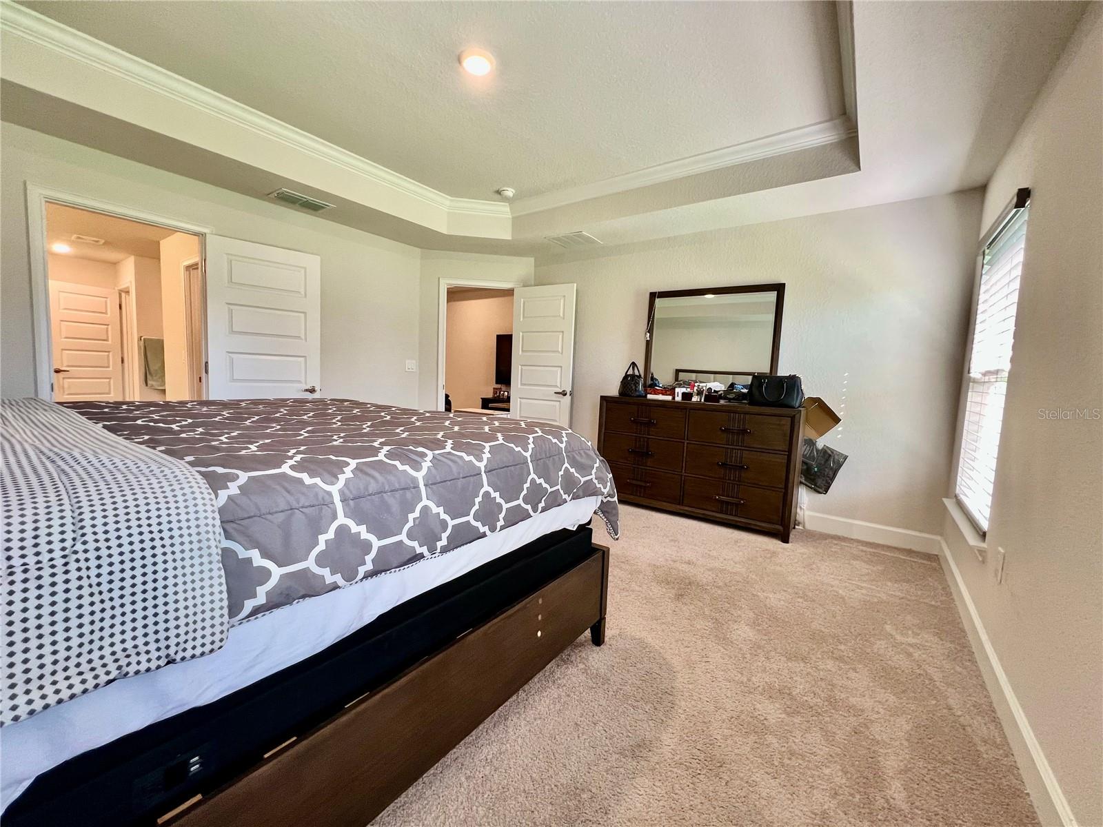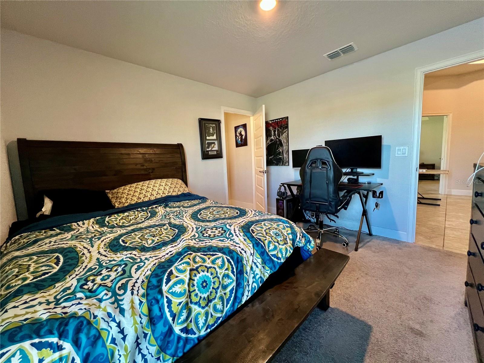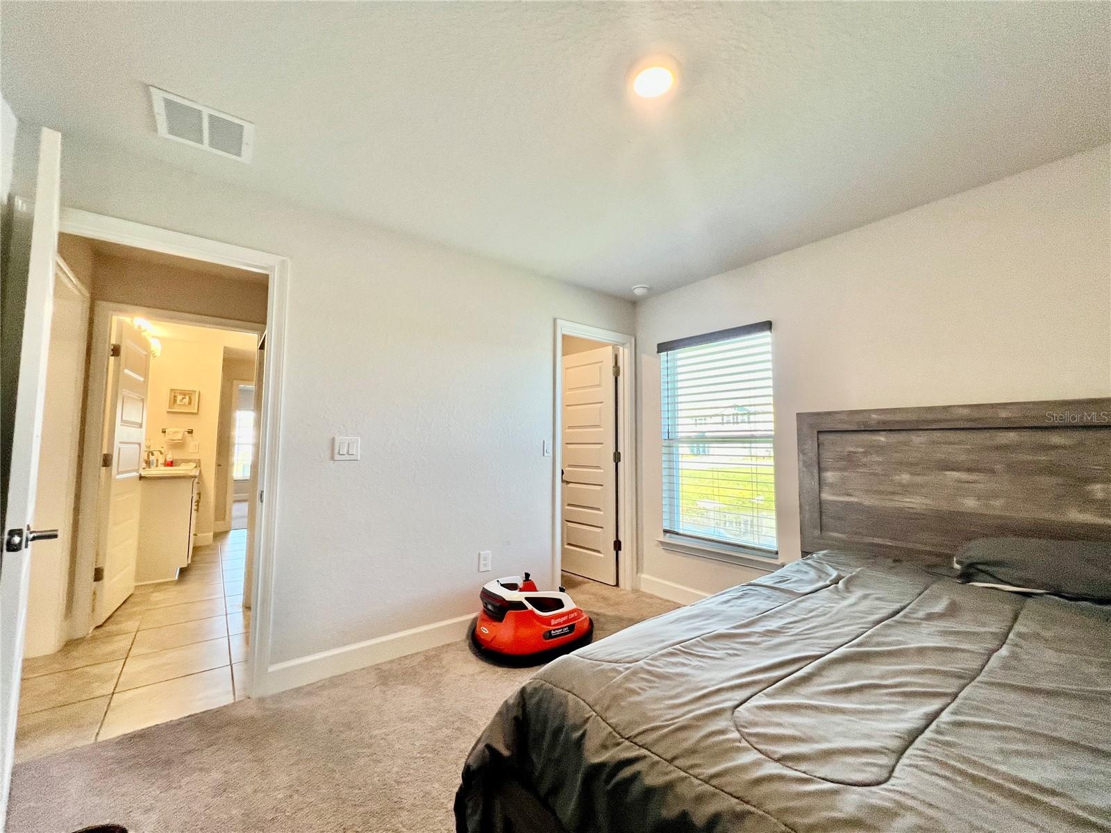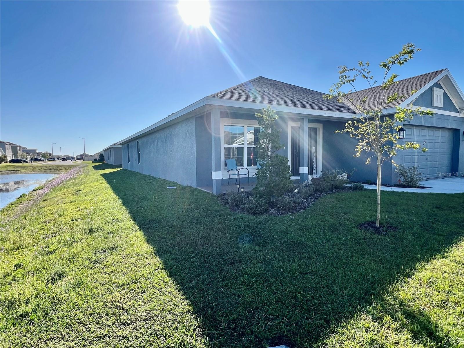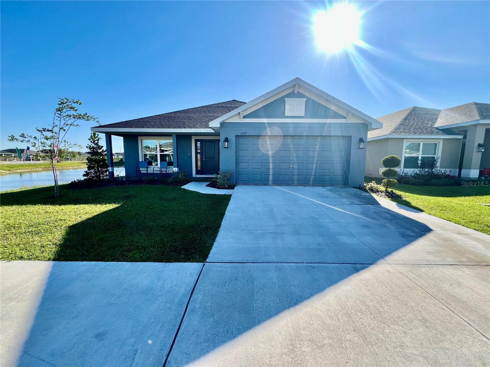 FOR SALE in the desirable community of VILLAMAR! This is the 2200 model, consisting of 4 bedrooms and 3 full bathrooms, on a corner lot with a water view on the right side of the home. This home features many upgrades that you cannot get with new construction such as modern blinds in all windows, all stainless steel appliances including an upgraded refrigerator, washer and dryer, screened in lanai, and a smart garage door motor. As you step into the home you will see a beautiful ceramic tile in all areas except the bedrooms where you have plush carpet. The main bedroom is located in the back of the home to ensure privacy. The additional three bedrooms are placed on the opposite side of the home with one of the bedrooms with an ensuite bathroom and the other two share a Jack-and-Jill bathroom. The screened in lanai in the back extends your living space outdoors and provides the perfect place to host gatherings or simply enjoy the weather. This community has a very low annual HOA and it does have a beautiful community pool, playground, and lake. Contact us for more information and to set up your viewing today!