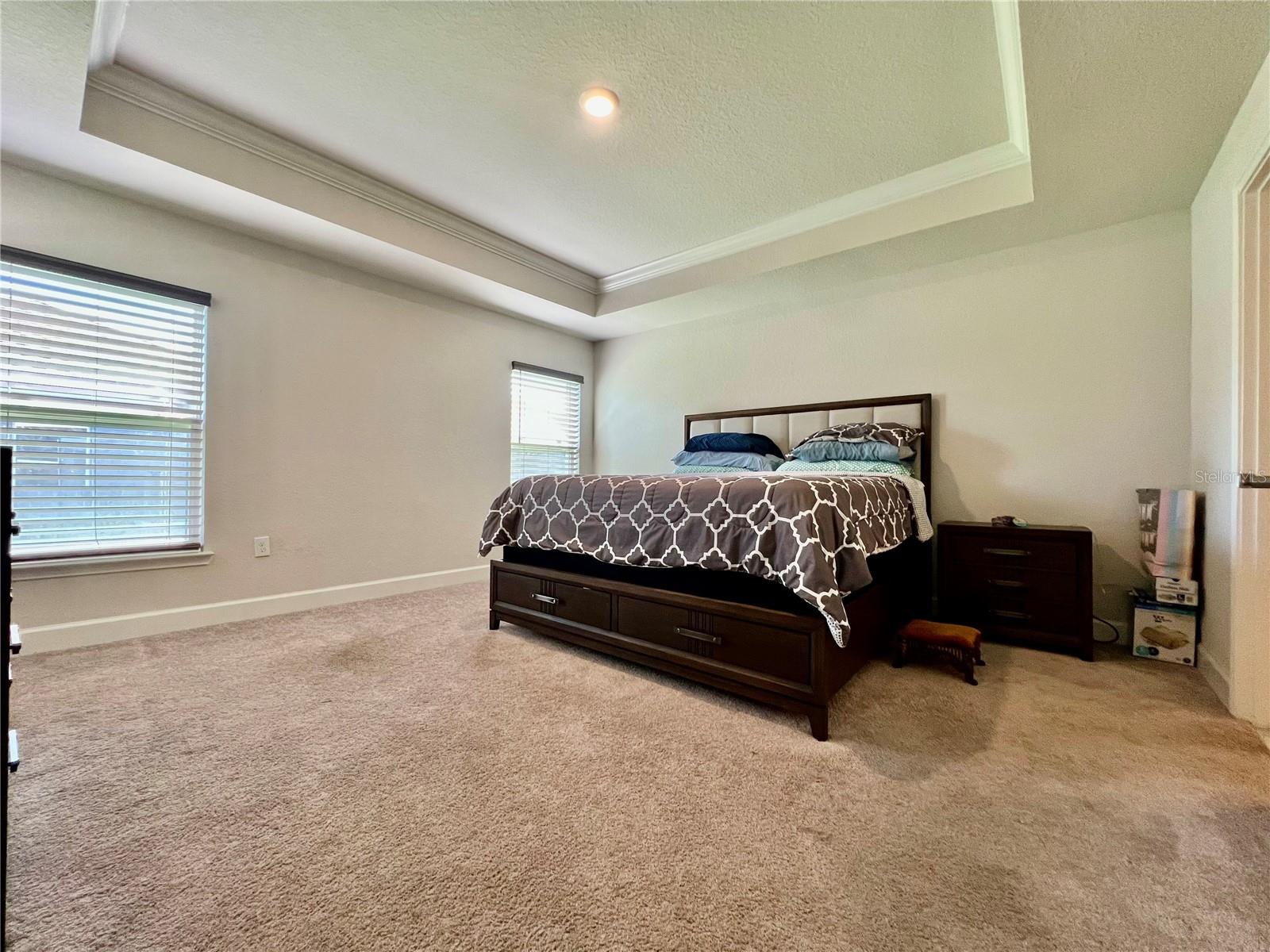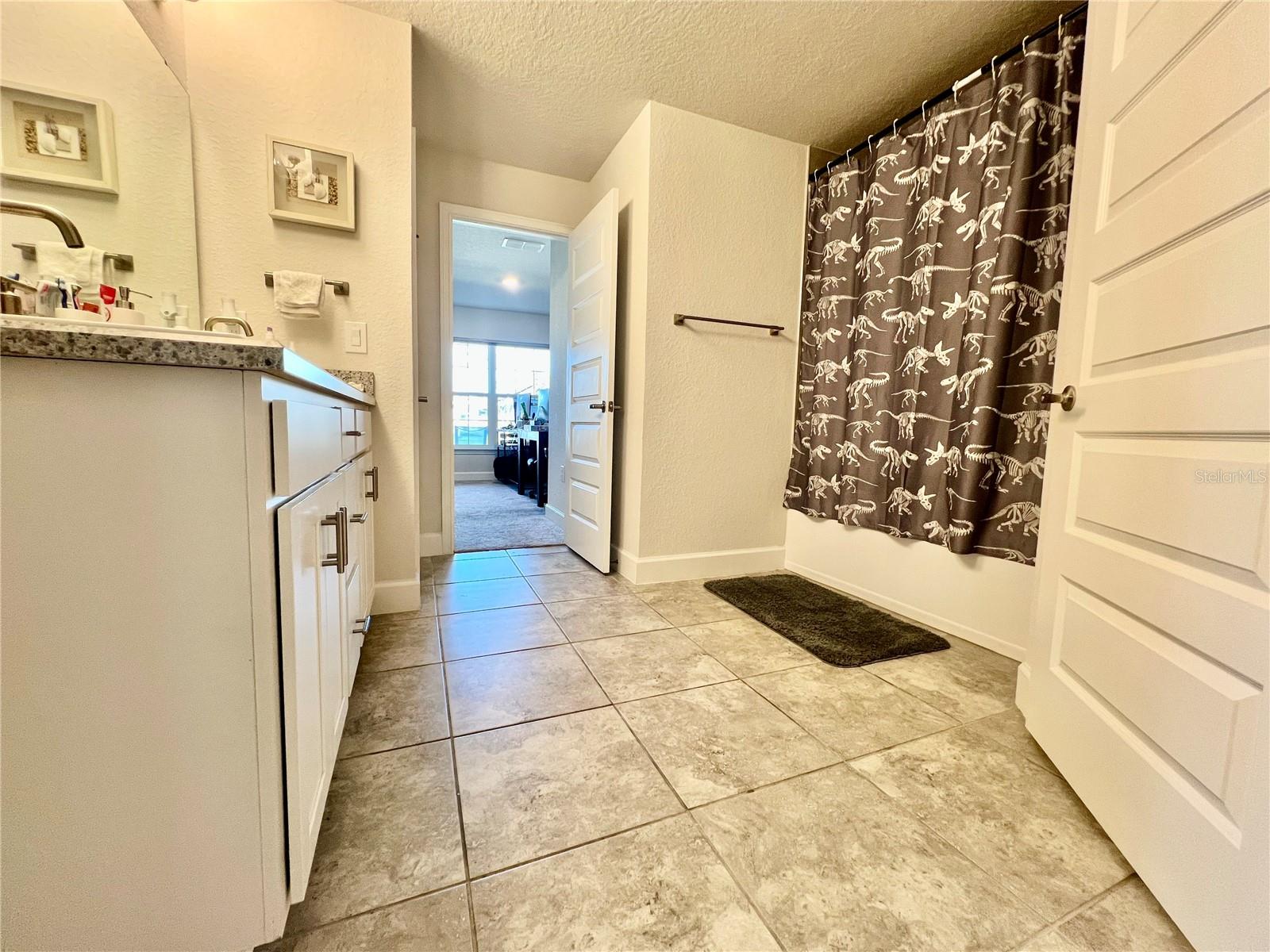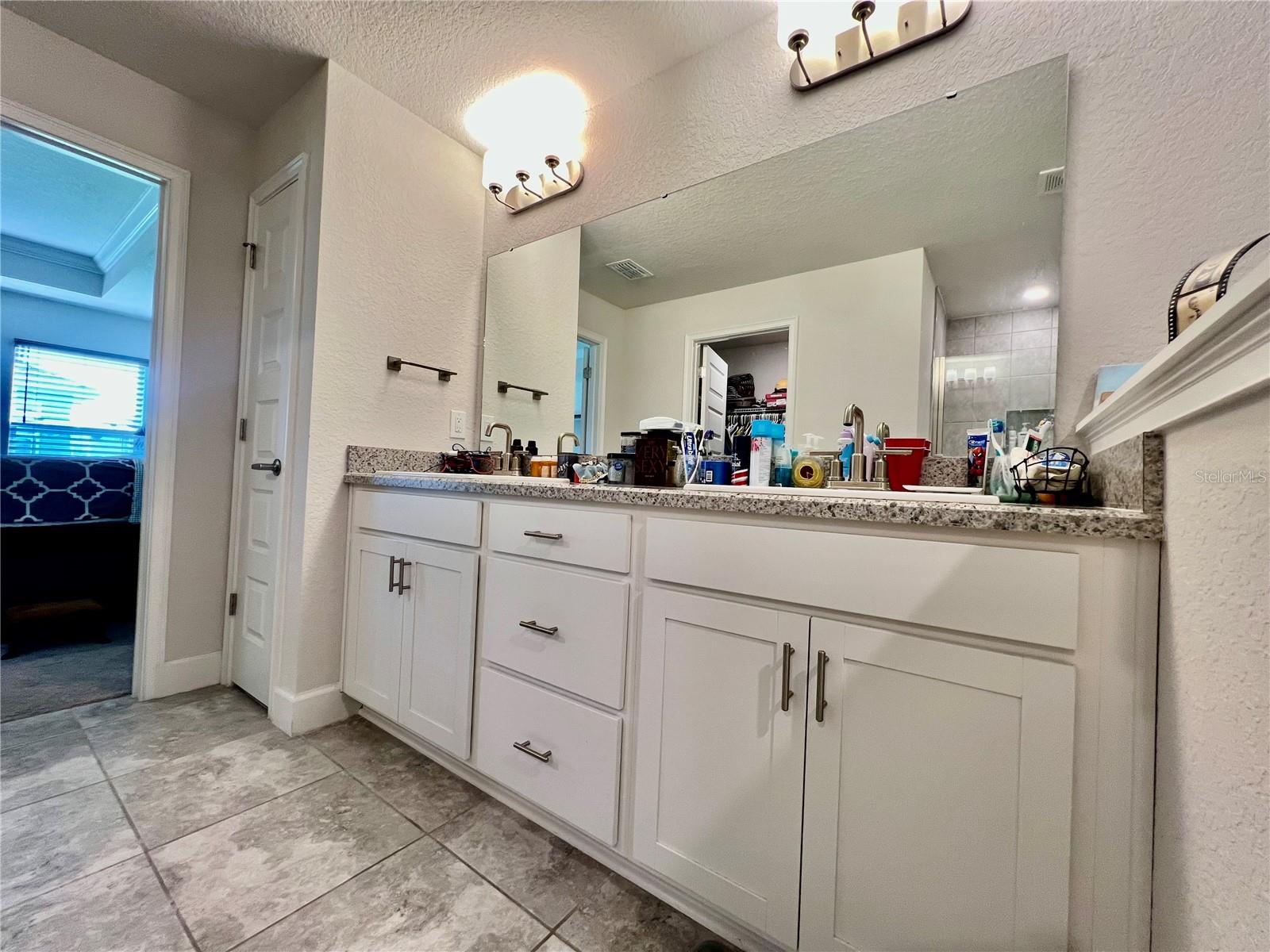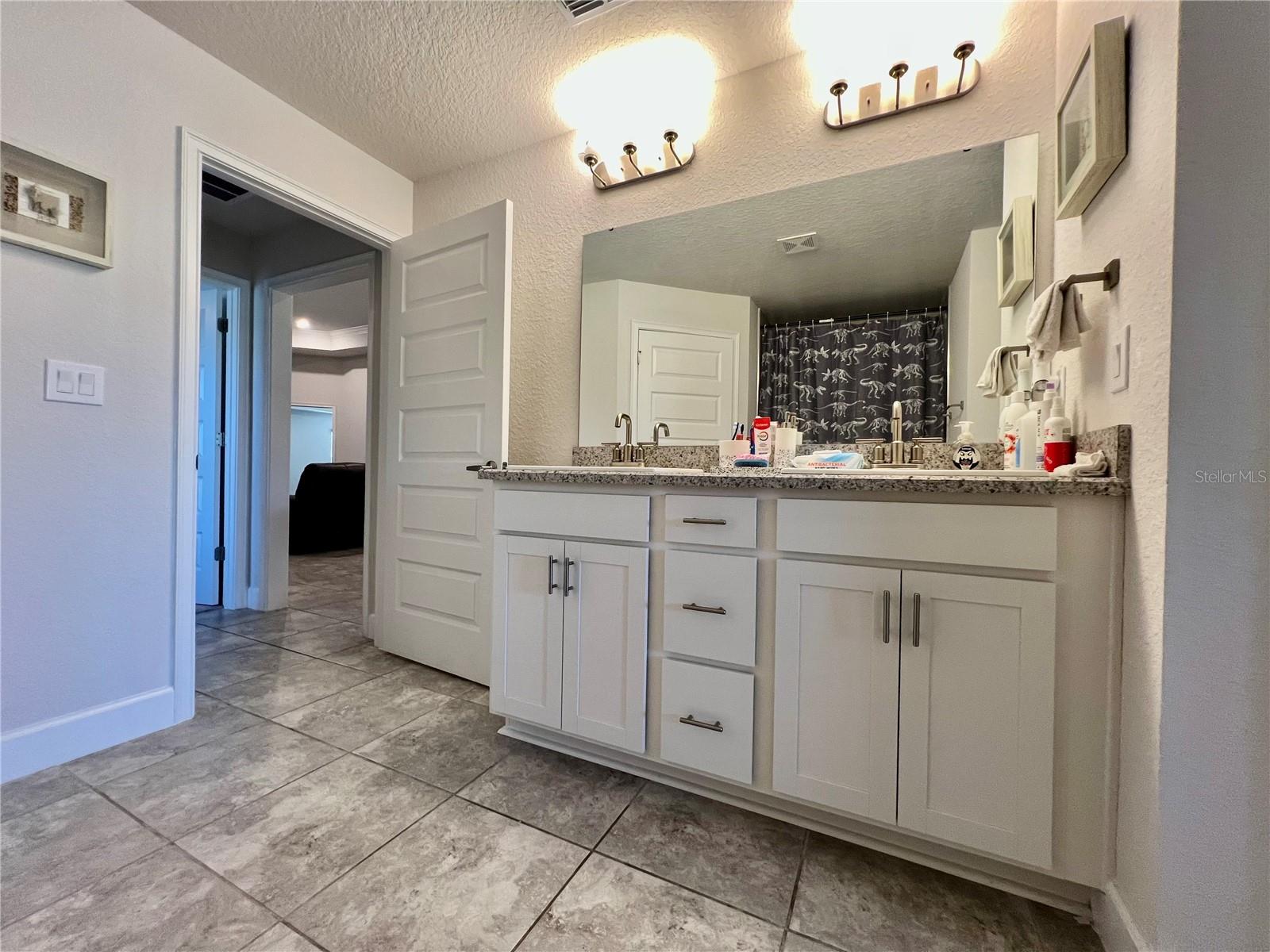 FOR SALE in the desirable community of VILLAMAR! This is the 2200 model, consisting of 4 bedrooms and 3 full bathrooms, on a corner lot with a water view on the right side of the home. This home features many upgrades that you cannot get with new construction such as modern blinds in all windows, all stainless steel appliances including an upgraded refrigerator, washer and dryer, screened in lanai, and a smart garage door motor. As you step into the home you will see a beautiful ceramic tile in all areas except the bedrooms where you have plush carpet. The main bedroom is located in the back of the home to ensure privacy. The additional three bedrooms are placed on the opposite side of the home with one of the bedrooms with an ensuite bathroom and the other two share a Jack-and-Jill bathroom. The screened in lanai in the back extends your living space outdoors and provides the perfect place to host gatherings or simply enjoy the weather. This community has a very low annual HOA and it does have a beautiful community pool, playground, and lake. Contact us for more information and to set up your viewing today!