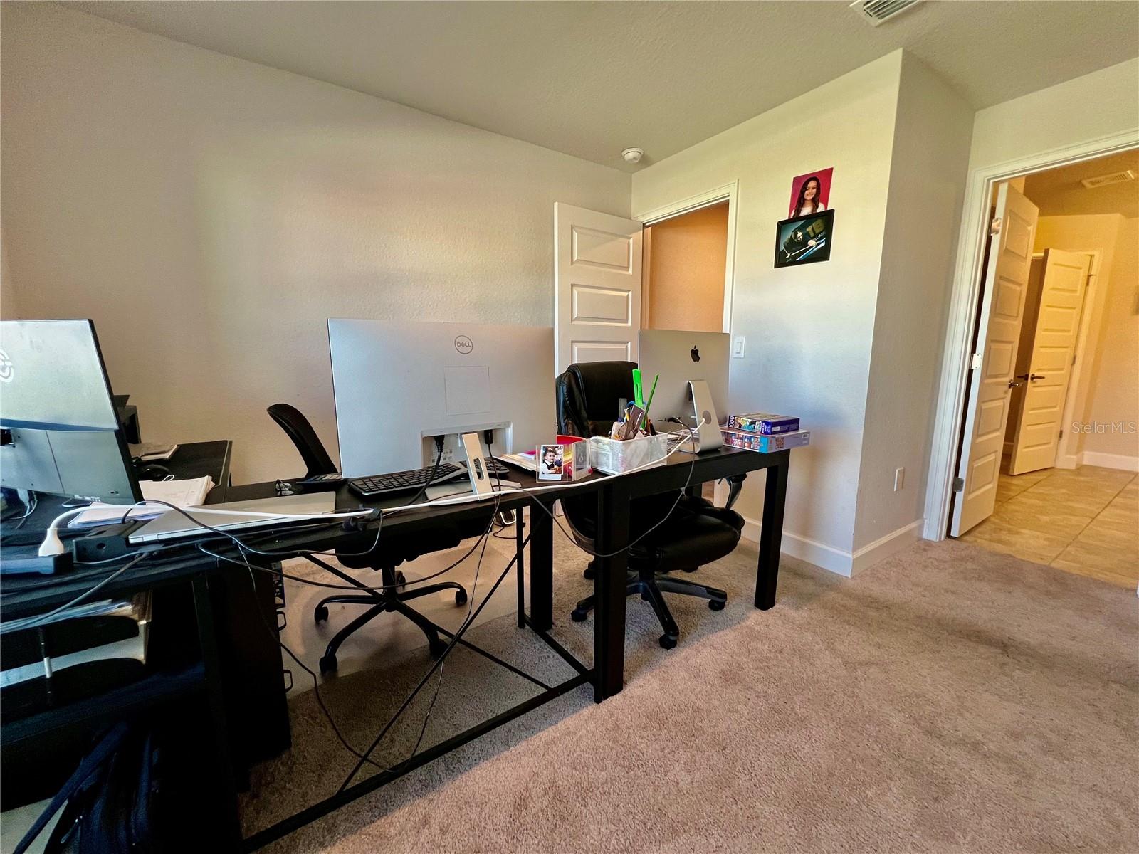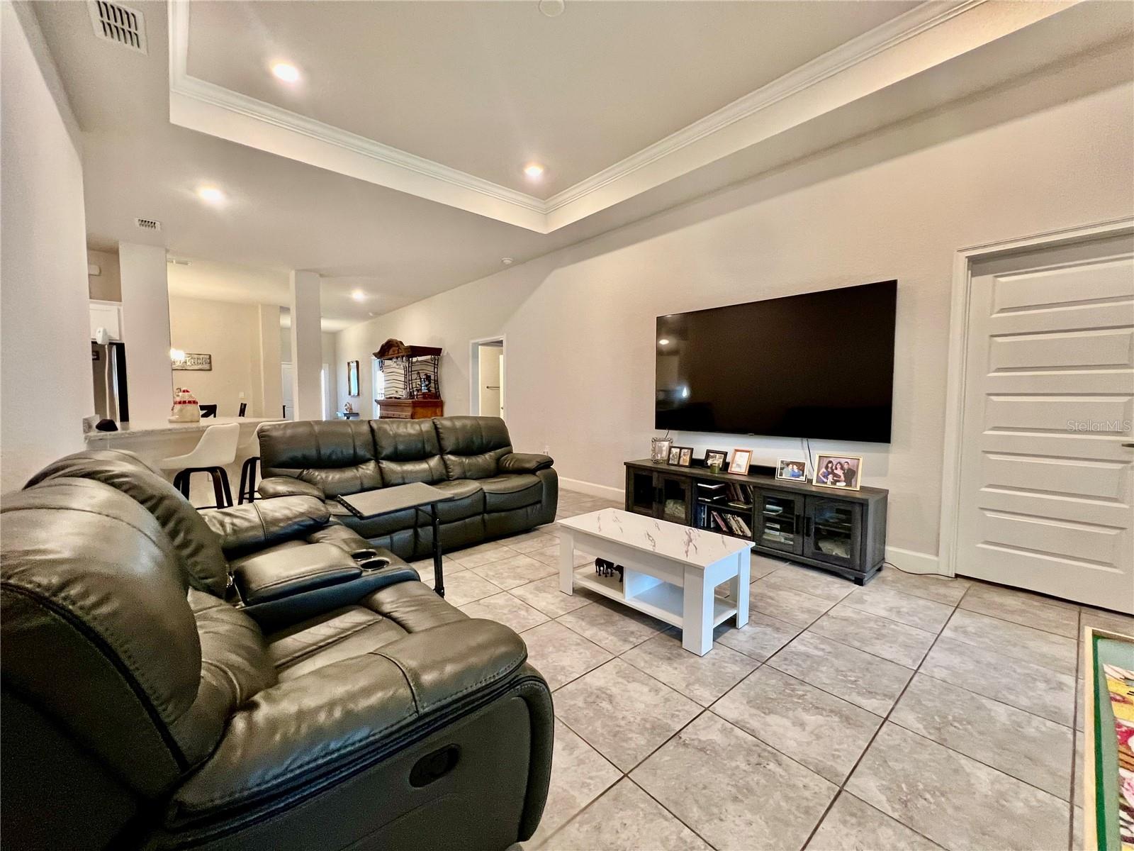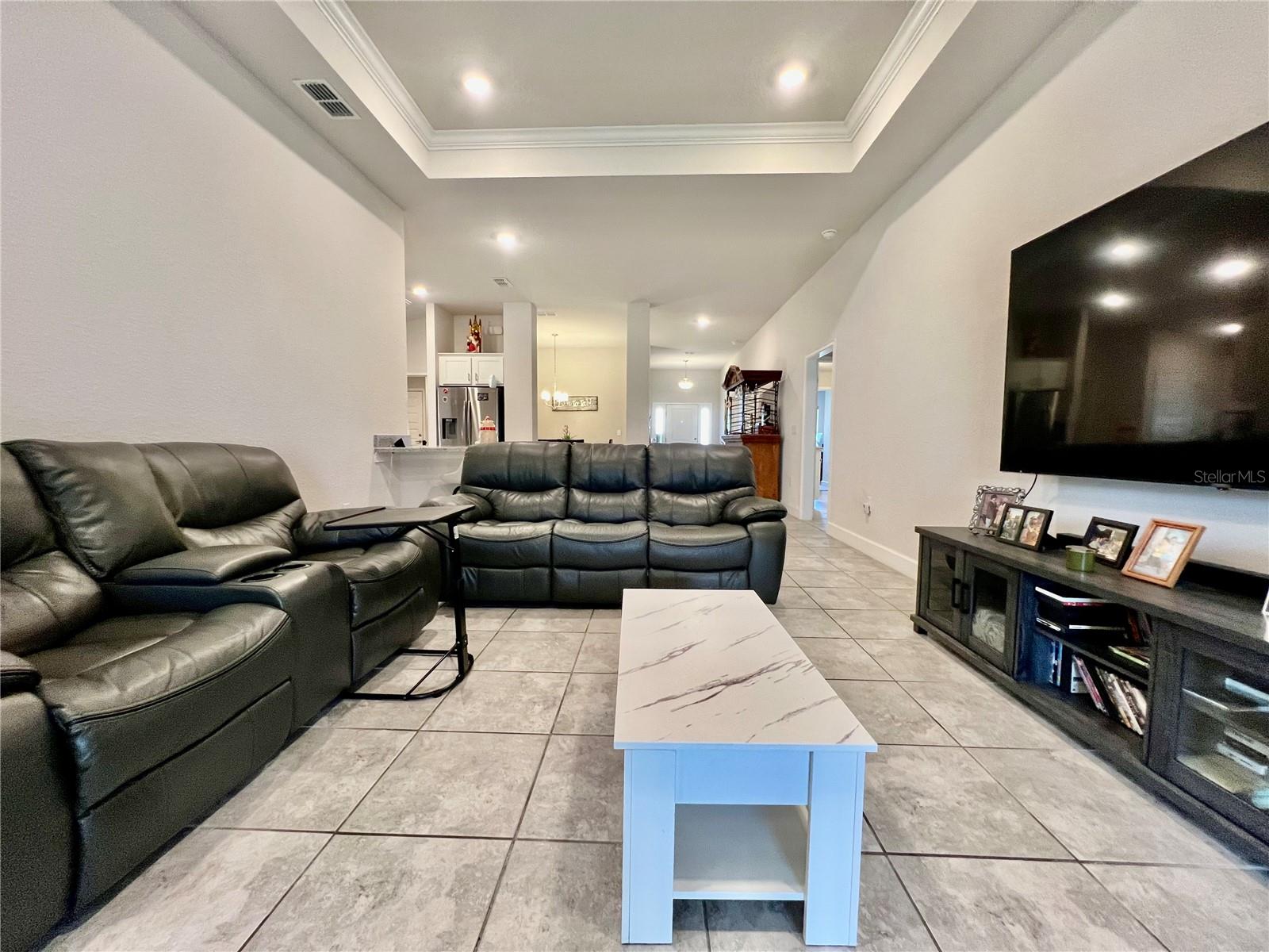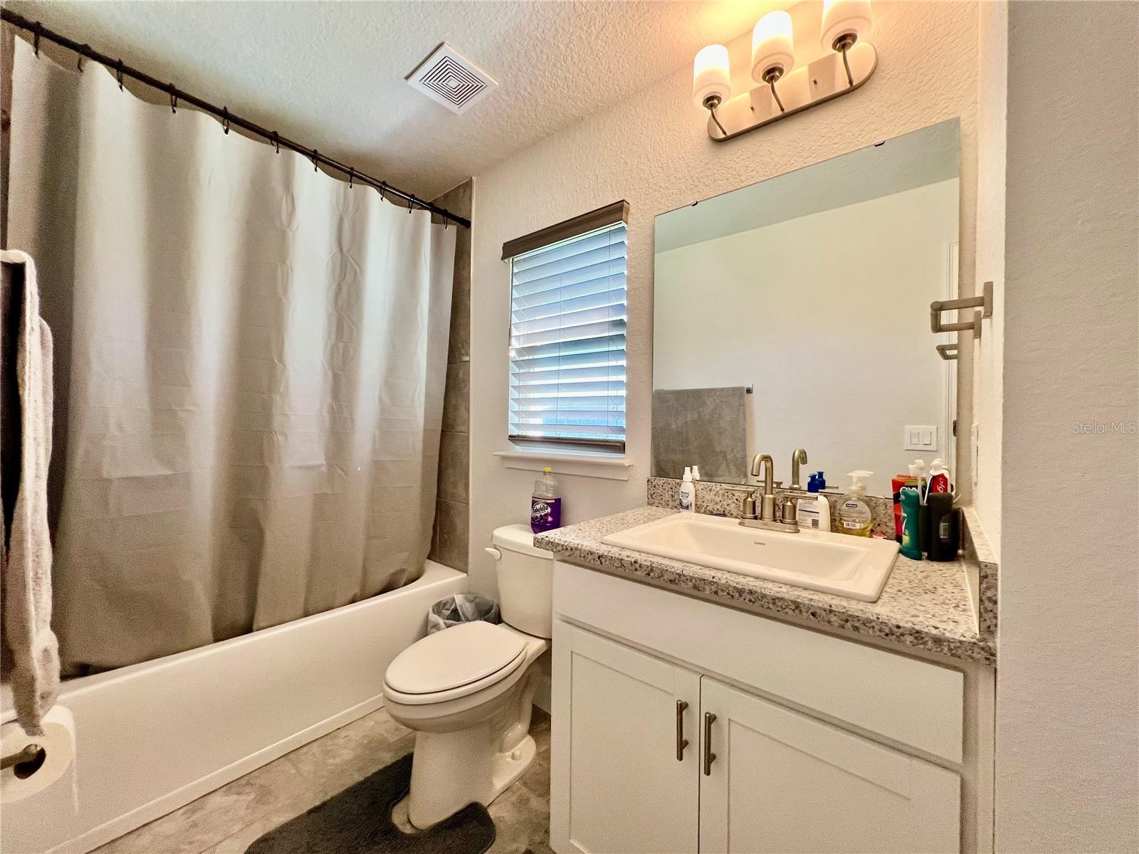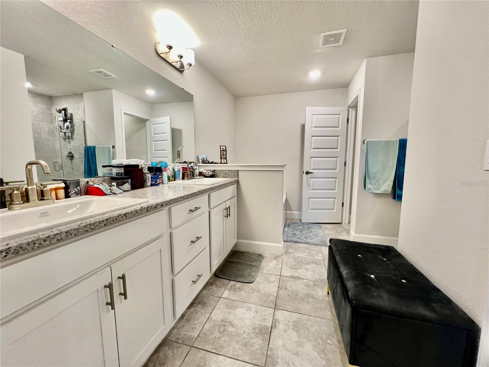 FOR SALE in the desirable community of VILLAMAR! This is the 2200 model, consisting of 4 bedrooms and 3 full bathrooms, on a corner lot with a water view on the right side of the home. This home features many upgrades that you cannot get with new construction such as modern blinds in all windows, all stainless steel appliances including an upgraded refrigerator, washer and dryer, screened in lanai, and a smart garage door motor. As you step into the home you will see a beautiful ceramic tile in all areas except the bedrooms where you have plush carpet. The main bedroom is located in the back of the home to ensure privacy. The additional three bedrooms are placed on the opposite side of the home with one of the bedrooms with an ensuite bathroom and the other two share a Jack-and-Jill bathroom. The screened in lanai in the back extends your living space outdoors and provides the perfect place to host gatherings or simply enjoy the weather. This community has a very low annual HOA and it does have a beautiful community pool, playground, and lake. Contact us for more information and to set up your viewing today!