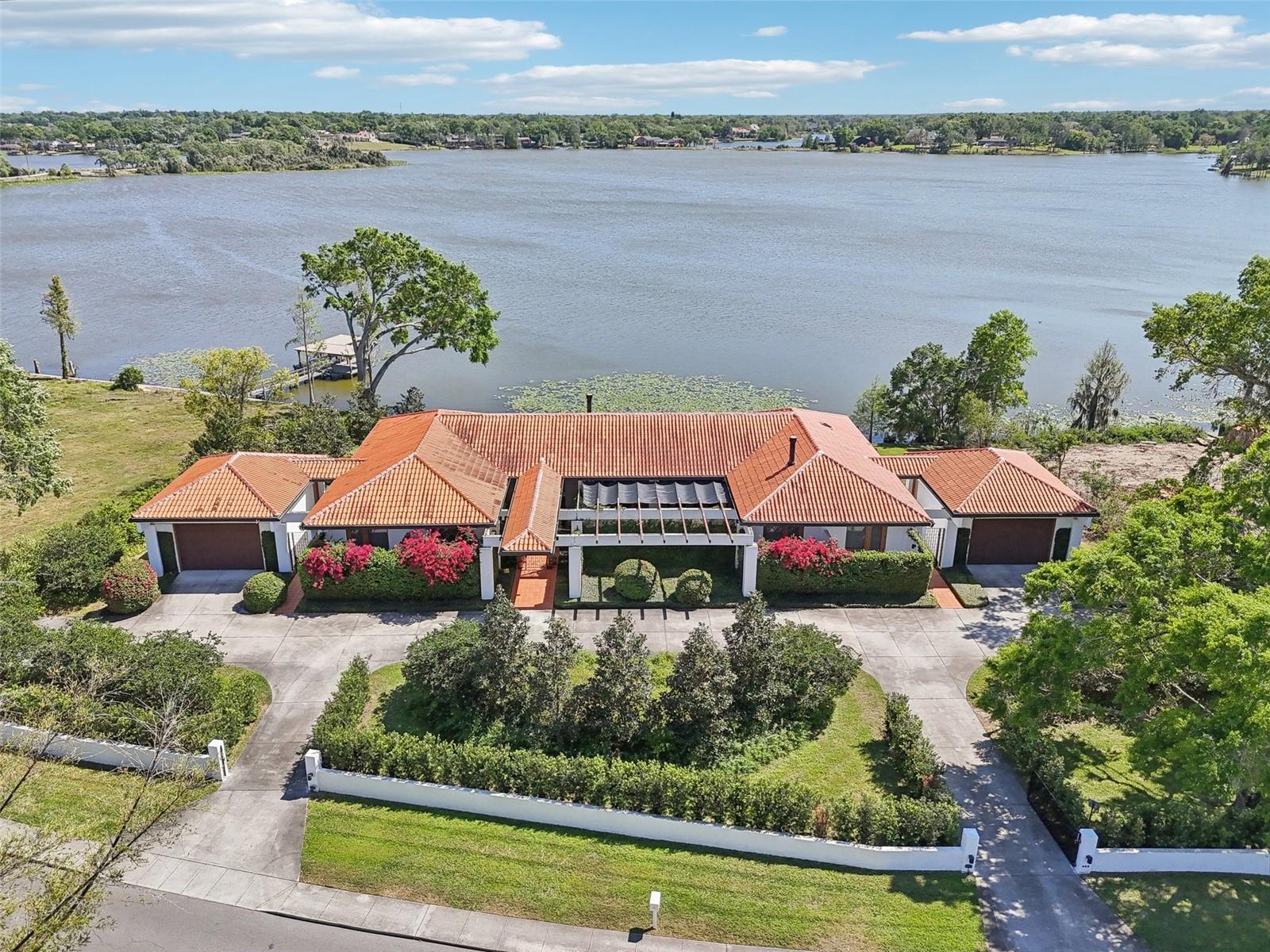 A rare opportunity to own a true architectural masterpiece by renowned Sarasota School of Architecture co-founder, Gene Leedy. Designed, especially for his daughter, with his signature pre-stressed concrete T-beam construction and cantilevered balconies, this extraordinary modernist estate seamlessly blends form and function while embracing its breathtaking lakefront setting. Nestled on nearly an acre along the tranquil shores of Lake Otis, this mid-century modern gem offers soaring 12’ ceilings, expansive walls of glass, and private courtyards that effortlessly bring the outdoors in. Every en-suite bedroom opens to a serene courtyard, creating a sense of retreat and tranquility. The master suite is a sanctuary of its own, featuring an entire wall of custom beach wood shelving with a rolling ladder, dual vanities, spacious walk-in closets, and stunning lake views. Designed for both grand entertaining and intimate gatherings, the chef’s dream kitchen is a true showstopper—boasting custom beach wood cabinetry, granite countertops, a Viking gas range, dual dishwashers, an oversized Subzero refrigerator, a walk-in pantry, separate ice maker, and a wine cooler. A massive center island ensures ample prep space, making hosting effortless. The outdoor spaces are equally impressive, with a vast 60’ x 50’ patio leading to a sleek 36’ lap pool and heated spa, all overlooking the lake. Whether you’re relaxing by one of the two fireplaces, working from one of two dedicated home offices, or enjoying the architectural beauty of the T-beam construction and minimalist walls, this home offers an unparalleled living experience. Additional highlights include a bold entry courtyard, two double-car garages with side entries, an expansive balcony, upgraded modern lighting and plumbing fixtures, and a whole-house generator for peace of mind. Offered at an exceptional value, this one-of-a-kind estate is a must-see for lovers of modern architecture and timeless design. Schedule your private tour today and experience the legacy of Gene Leedy firsthand!