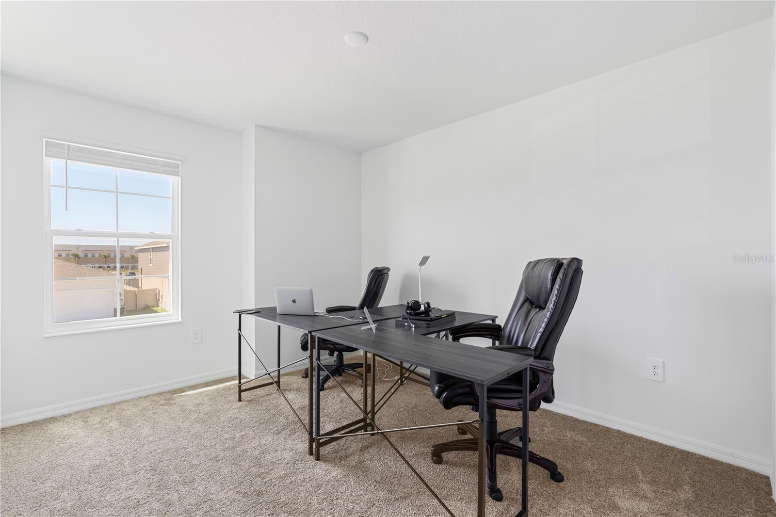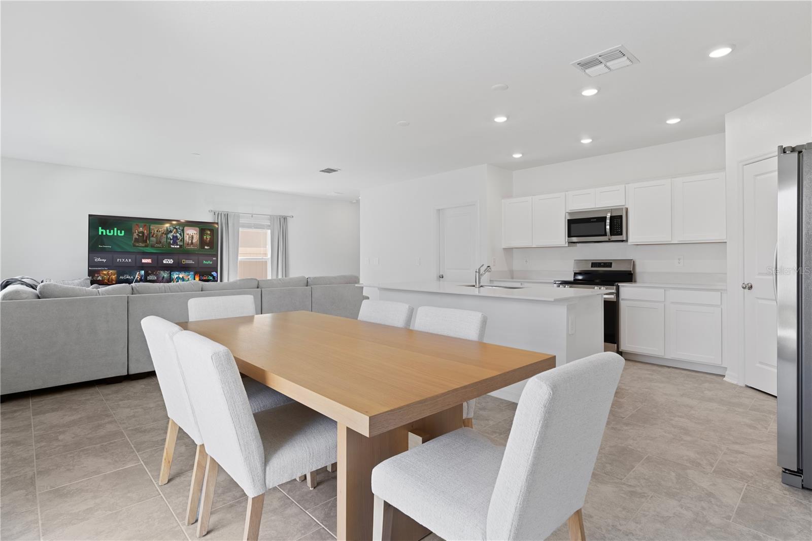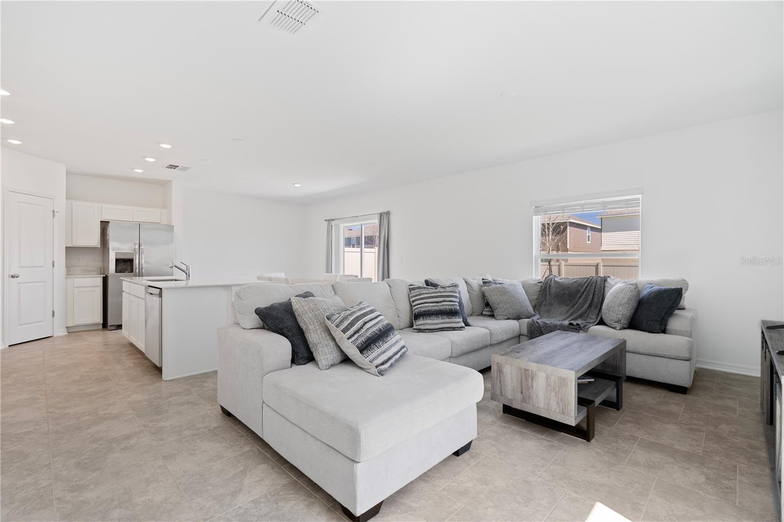 Welcome to this beautifully designed Atlanta Plan home, featuring four bedrooms, two and a half baths, and a spacious two-car garage. This thoughtfully crafted residence boasts an open-concept layout, seamlessly connecting the great room, dining area, and a stylish kitchen with a large island, perfect for entertaining. The kitchen is equipped with ample counter space, a generous pantry, and brand-new appliances. Enjoy easy indoor-outdoor living with sliding glass doors that lead to a covered lanai, ideal for relaxing or hosting guests. Upstairs, the owner’s suite offers a spa-like bathroom with a large walk-in shower, dual vanity, and a spacious walk-in closet. Three additional bedrooms, a full bathroom, a versatile loft, and a convenient laundry room complete the second floor. This move-in-ready home is packed with high-end finishes, including solid surface countertops, oversized tile flooring in wet areas, and all-new appliances. Located in a prime area, you'll be just minutes from shopping, dining, and scenic bike paths. The property is partially furnished, and the owner is open to negotiating the sale of the furniture. Don't miss the opportunity to make this exceptional home yours—schedule a showing today!