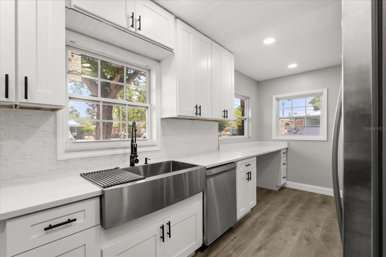 Fully Renovated Gem in the Heart of Winter Haven! Step into this farmhouse charm : 2-bedroom, 2-bathroom home, nestled on a spacious lot in the established Villa Manor neighborhood. NO HOA This move-in-ready residence presents luxury finishes, laminate flooring throughout, a sleek new kitchen with updated cabinets, carrara white quarts countertops, and stainless steel appliances, and a freshly tiled bathroom with contemporary finishes. Fresh interior and exterior paint, and upgraded lighting fixtures. The large backyard offers plenty of space for outdoor living or future expansion. Located minutes from local schools, parks, and downtown Winter Haven’s shops and restaurants, this home is perfect for first-time buyers, downsizers, or investors seeking turnkey potential.
