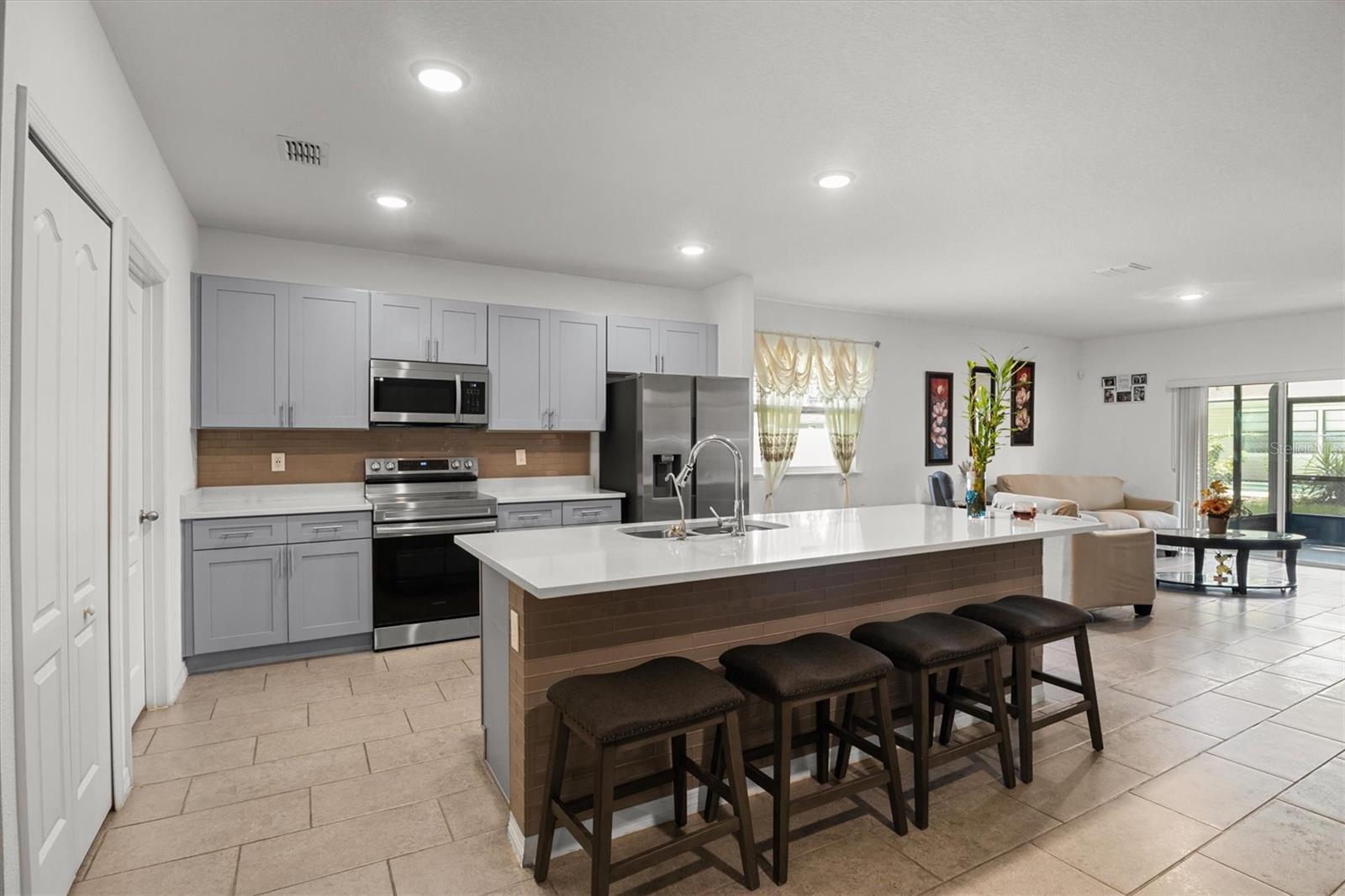 Welcome to your dream home in the heart of Winter Haven! Built in 2023, this beautifully designed 4-bedroom, 2-bath residence offers modern living with exceptional convenience. Step inside to find a bright, open-concept layout with ceramic tile flooring throughout the main living areas and a spacious kitchen complete with a large island — perfect for entertaining. Enjoy your mornings or evenings on the screened-in lanai, ideal for outdoor dining or relaxing in your private backyard retreat. Located just minutes from top shopping destinations, major attractions, and nearby middle school, this move-in-ready home is perfectly positioned for both comfort and lifestyle. Don’t miss out on this incredible opportunity!