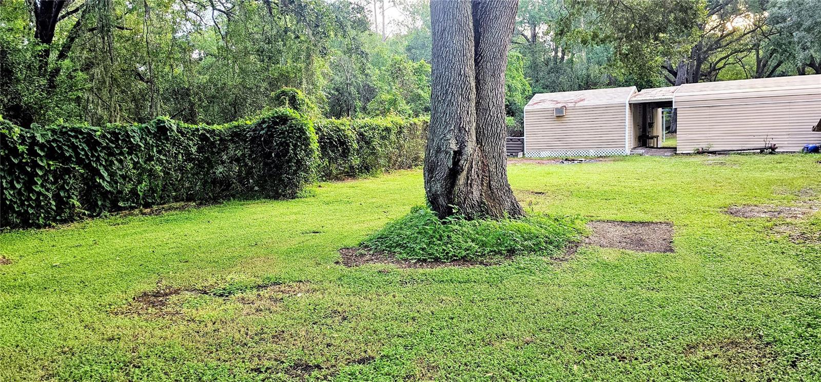 Pricing Improvement! NO HOA or Lot Rent. USDA Eligible! This charming home is situated on a half-acre of dry, high-fenced land, providing the perfect blend of comfort, space & security. The home boasts a 2016 durable metal roof, new Pergo waterproof laminate flooring, updated Cold AC, updated plumbing, 50 gallon 2023 water heater, fresh paint inside & out, ensuring both durability and luxury. Perfect for entertaining with open floorplan with large kitchen, breakfast bar, living room, split-bedroom layout and large, screen/window back porch with brick extended patio and outdoor brick grill. One of the highlights of this home is its prime location, backing up to over 300 acres of tranquil woods. Say goodbye to backyard neighbors and look forward to waking up to the sounds of nature, enjoying your morning coffee in a peaceful setting. But that's not all! Calling all car guys! The property comes with a Huge 24’ x 24’ x 13.6’ high INSULATED metal garage that is 150 mph hurricane wind resistant on a slab with every post 4 ft deep in concrete. It provides ample space & electricity for a shop to work on your cars, RV, boat, recreational toys, storage or a home business. Plus, there is a carport on slab attached to another shed for combined area 43’ x 45’ attached to privacy fence shielding the back yard. You finally have freedom & privacy without the constraints of an HOA, which is a rare find! Irrigation system in front and back yard. Conveniently located with easy access to the Parkway & i-4, making commutes to Lakeland, Orlando or Tampa a breeze. Don't miss out on this fantastic opportunity – make this home yours and embrace a lifestyle of comfort, tranquility, and freedom. No HOA means no restrictions – just the way you want it! Call today to schedule your private showing!