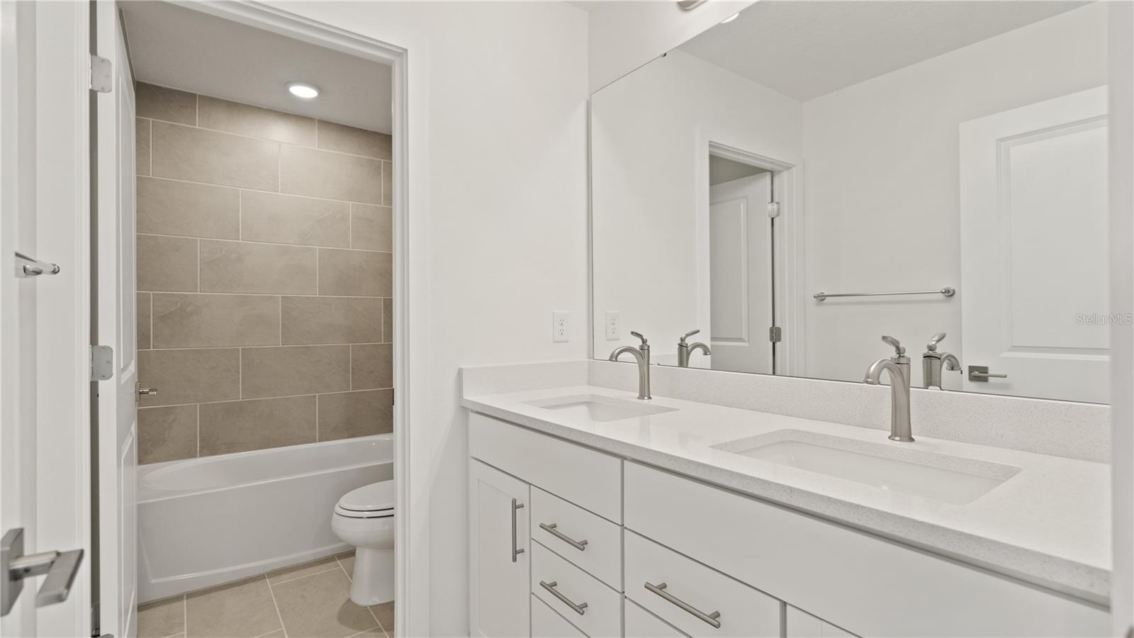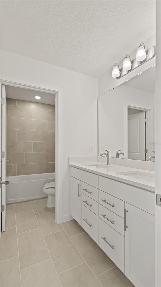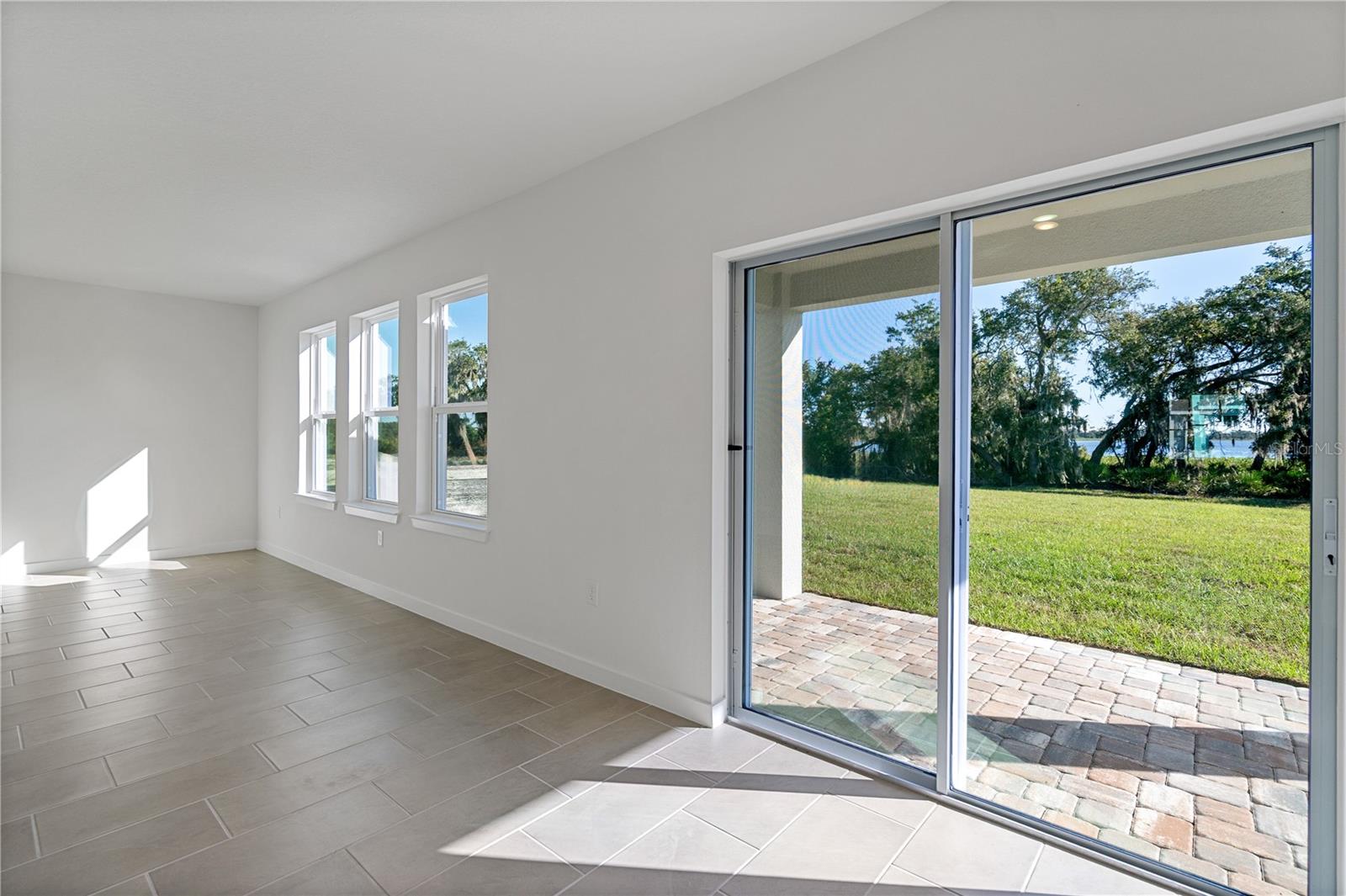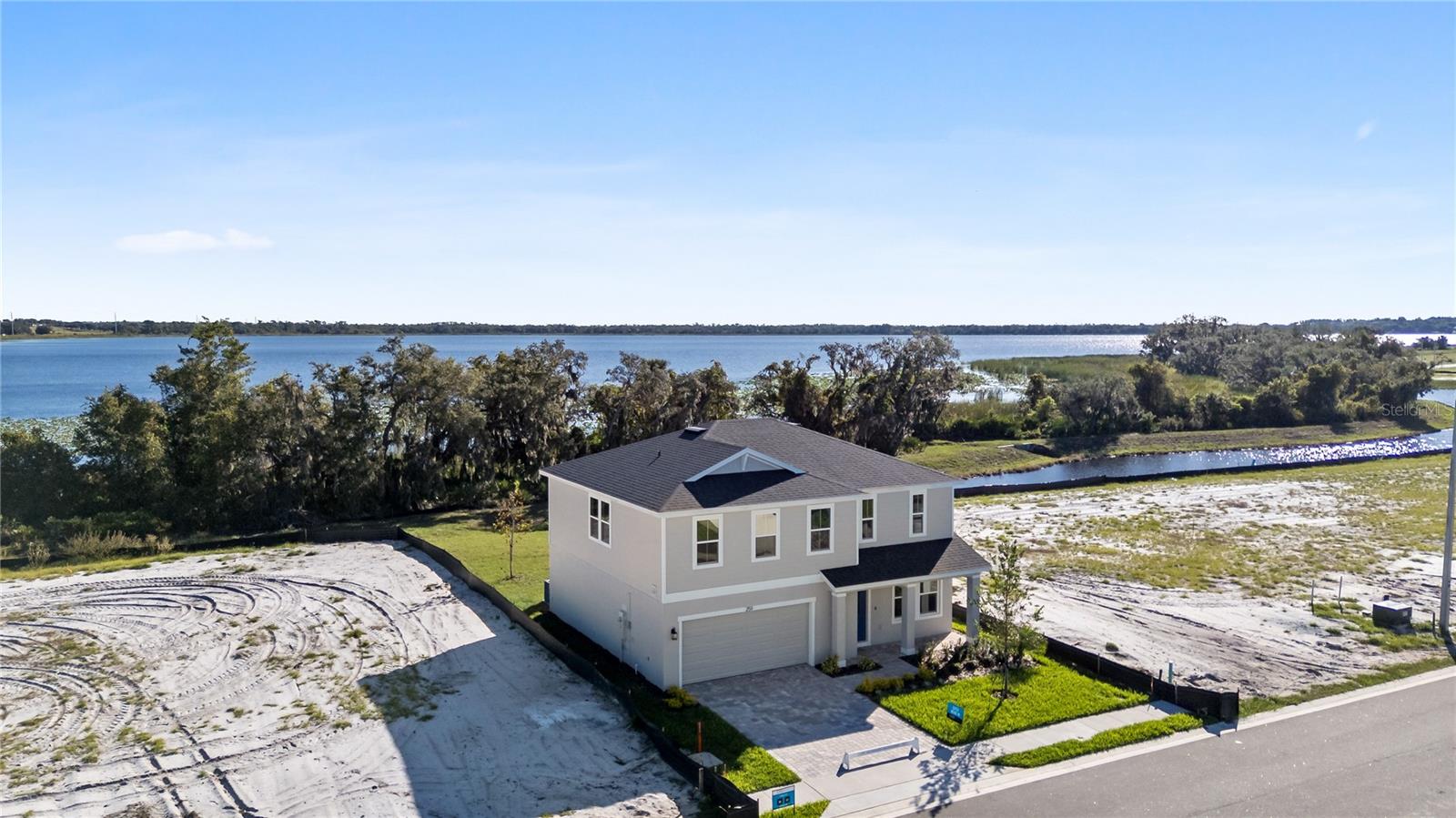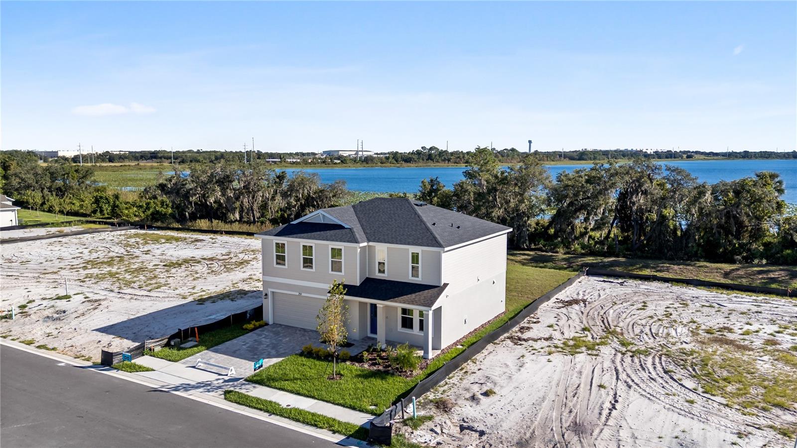 MOVE-IN READY Home with lakefront homesite! This stunning Highbourne with Coastal elevation greets you with a charming front porch, perfect for relaxing and enjoying the outdoors. Inside, a versatile flex space offers an ideal area for a formal living room or home office, conveniently connected to the kitchen. Just past the flex room is a thoughtfully placed half bathroom. The heart of the home features an expansive open-concept kitchen, dining, and living area, perfect for entertaining family and friends. The kitchen showcases elegant granite countertops, shaker cabinets, and a spacious layout. Sliding doors off the dining area lead to a covered lanai and an oversized backyard, providing serene views of the woods and lake. Upstairs, the oversized primary suite offers a luxurious primary bathroom with dual vanities, providing a private retreat. Three additional bedrooms and a centrally located laundry room complete the second floor, making the home ideal for families. The first floor is fully tiled, adding a sleek and easy-to-maintain finish throughout the main living areas. This Highbourne quick move-in home at Willowbrook North combines modern design, thoughtful layout, and beautiful natural surroundings, offering the perfect balance of comfort and style.