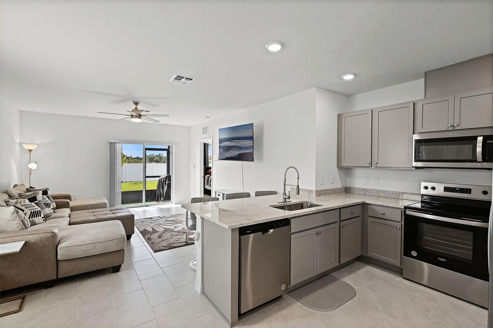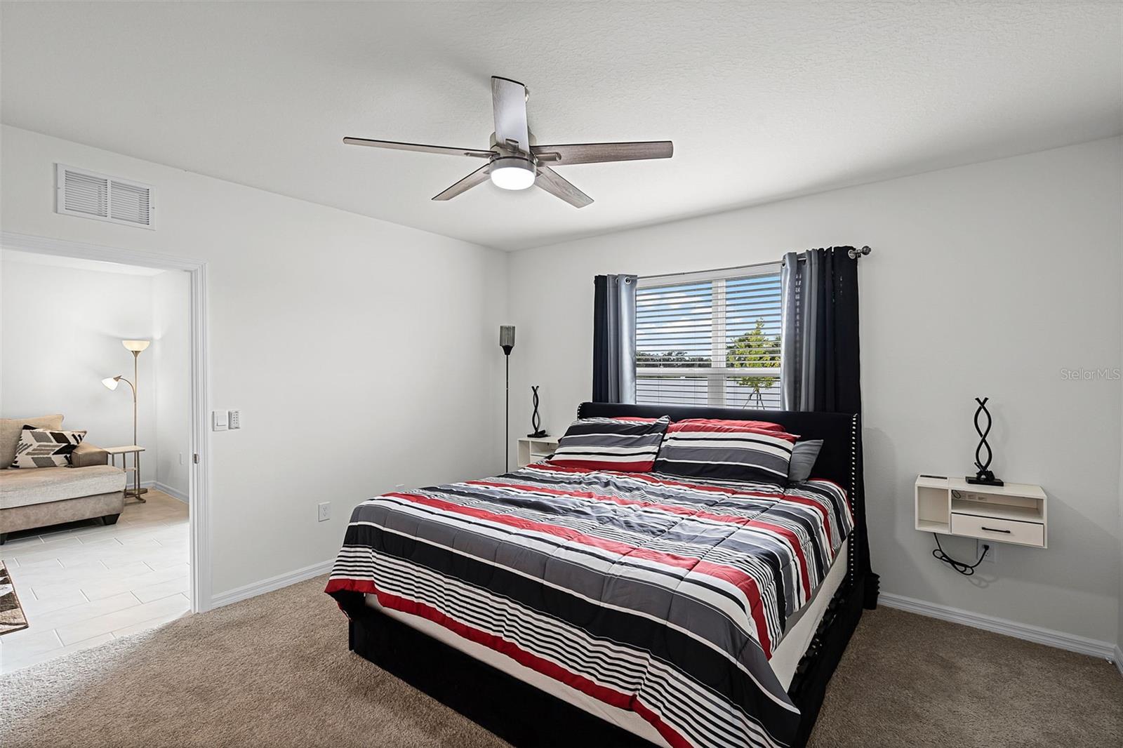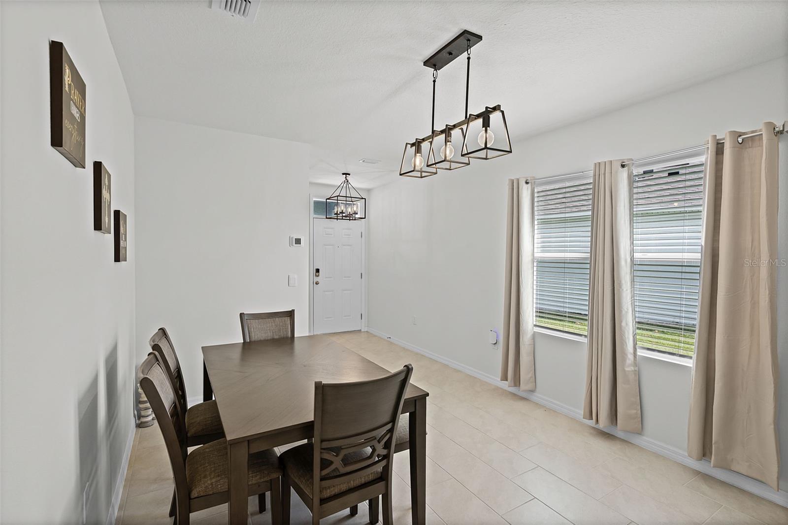 Welcome to this 2024, 3-bedroom, 2-bathroom home in the community of Harmony on Lake Eloise. Step inside through a spacious foyer that seamlessly flows into the dining room and open living area, creating the perfect space for entertaining or relaxing. The modern kitchen features stainless steel appliances, a breakfast bar with additional seating, and stylish tile flooring throughout the main living areas. The split-bedroom floor plan ensures privacy, with the primary suite tucked away at the back of the home. Here you’ll find a large walk-in closet and a spa-like bathroom with dual vanities and a stand-alone shower. Two additional bedrooms and a full bath with a shower/tub combo are located at the front of the home, offering comfort and convenience for guests or family. Enjoy Florida living year-round with sliding glass doors leading to a screened patio overlooking the fenced backyard—ideal for outdoor dining and relaxation. Harmony on Lake Eloise offers everything you need for a vibrant Florida lifestyle. Close to world-class theme parks, attractions, shopping, and dining, it’s the perfect place to call home.