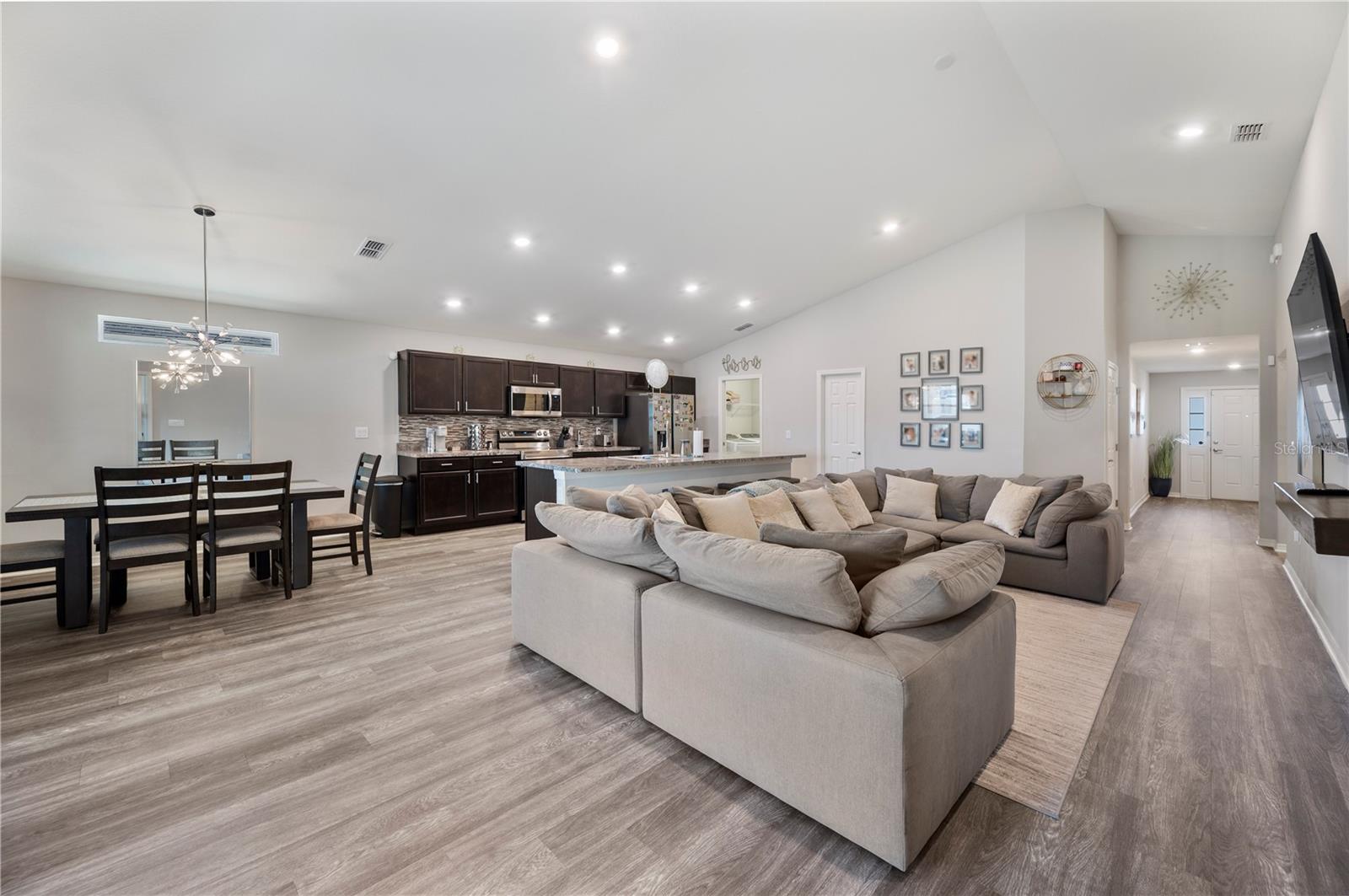 Welcome to the Serendipity floor plan — where comfort meets style! This stunning three-bedroom, den, two-bathroom home offers the perfect blend of modern design and everyday convenience. Step inside to find a bright, open-concept layout featuring high vaulted ceilings, a spacious great room, a beautifully appointed kitchen with a large island and walk-in pantry, and a cozy dining area ideal for gatherings. The owner’s suite provides a peaceful retreat with dual walk-in closets and a luxurious en-suite bath. The flexible den is perfect for a home office, guest space, or hobby room, offering versatility to fit your lifestyle. Enjoy year-round outdoor living in the beautiful enclosed lanai overlooking the fully fenced backyard—perfect for relaxing or entertaining in privacy. Located in a highly desirable area, this home offers convenient access to top-rated schools, shopping, dining, parks, and houses of worship. Designed for both elegance and functionality, the Serendipity truly lives up to its name—a happy discovery of the place you’ll love to call home.