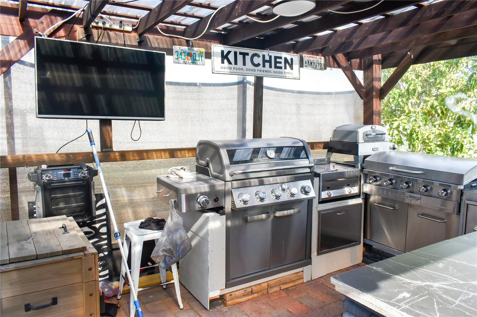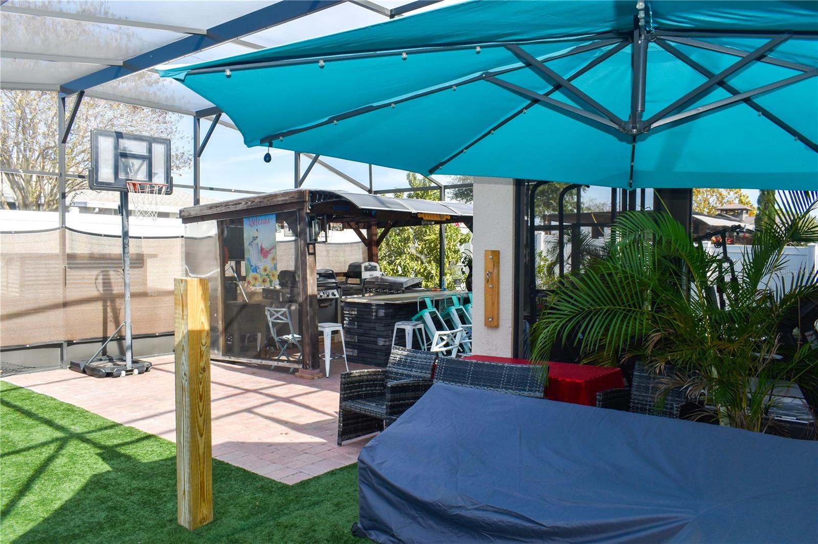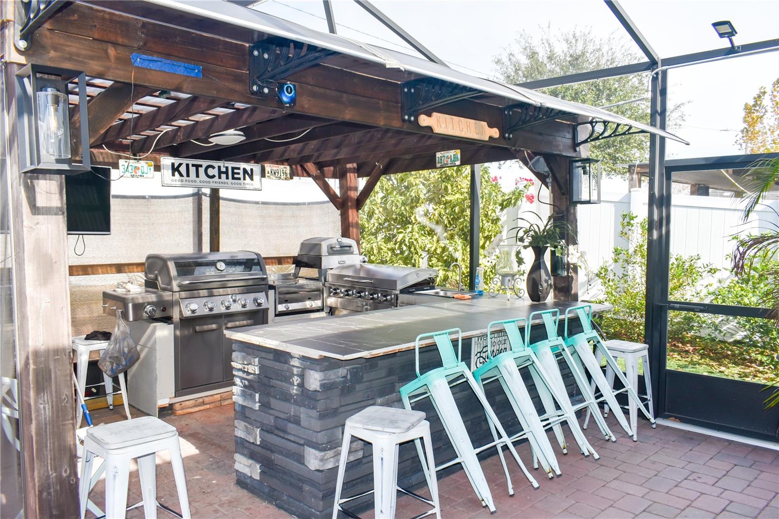 Welcome to this stunning 3-bedroom, 2-bathroom home located in the highly desirable Lake Smart Pointe community of Winter Haven. Built in 2020 and offering 1,677 sq. ft. of meticulously upgraded living space, this residence features a breathtaking lake view that perfectly complements its luxury finishes. The open-concept interior is a designer’s dream, boasting ceramic tile throughout, luxury PVC wall panels, and a high-end kitchen complete with quartz countertops, custom storage, and a wine cooler. Technology is at the forefront with a leased 26-panel solar system, EV charging station, surround sound in the living room and garage and a Wi-Fi-enabled water garage heater. For the family, a dedicated learning room features a professional-grade butcher block workspace. Your private outdoor oasis includes screened front and back lanais with custom tile, leading to a spectacular backyard with pavers, turf, and a gazebo housing a fully equipped outdoor kitchen (grill, griddle, fryer, fridge, and island). From the master suite’s barn door and private sliding door access to the whole-house water filtration system, every detail has been considered. Enjoy the best of Florida living with exclusive community access to the Lake Smart observation deck and fishing pier.
