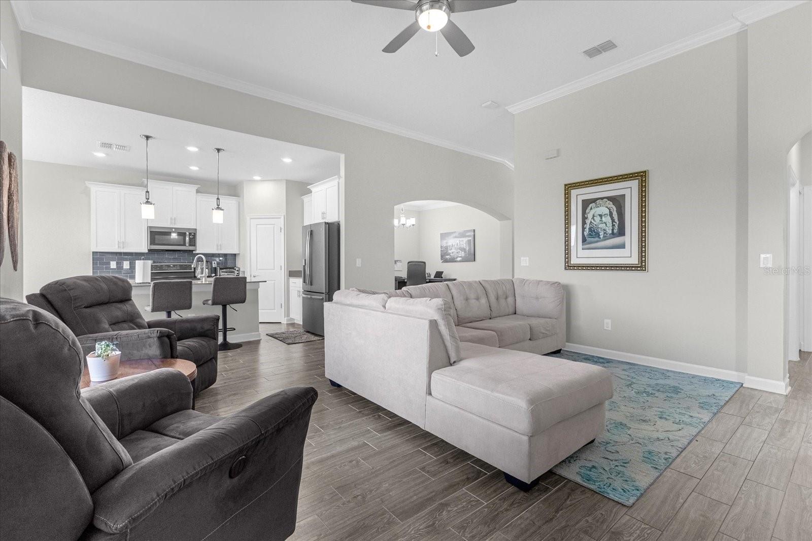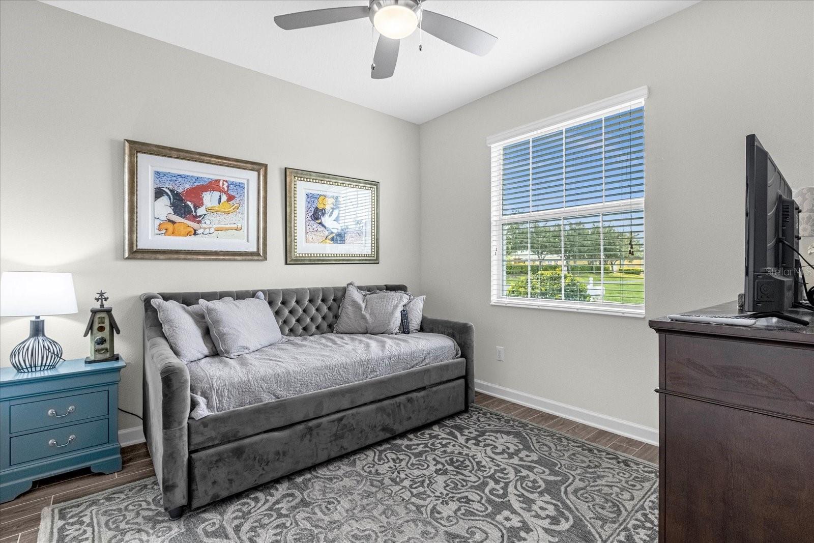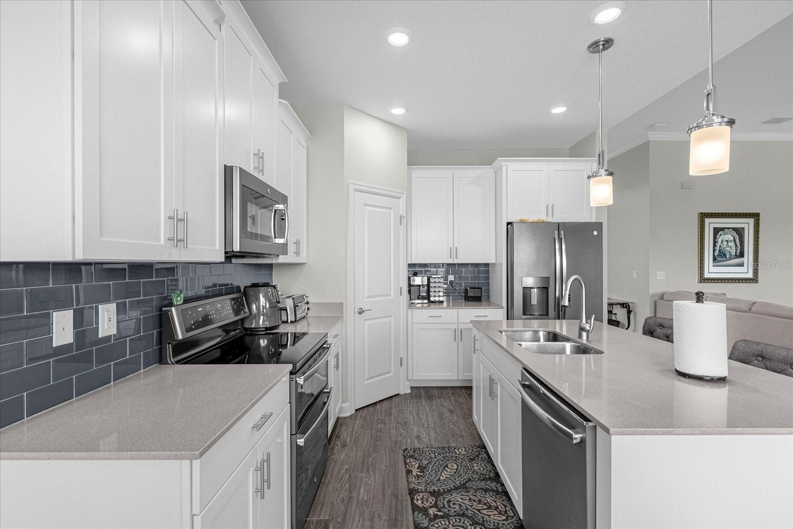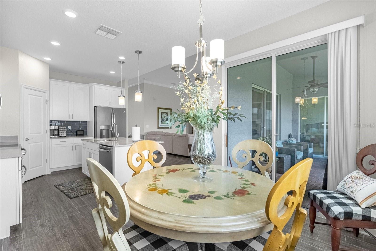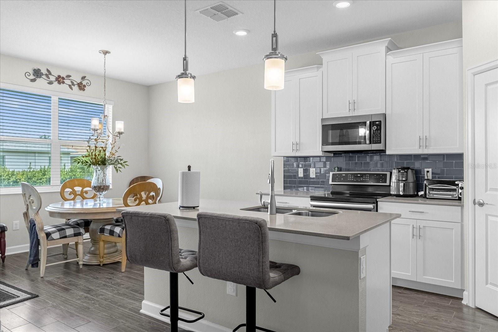 Welcome home to this gorgeous property with 2 bedrooms, plus a den, 2 baths and a 2-car garage in the private, over 55 community of Tradition. Open concept floor plan perfectly suited for those seeking a peaceful yet vibrant living environment. The main area has wood-look tile flooring throughout; Kitchen has a center Island, quartz countertops, stainless steel appliances, and it’s own pantry. This is a smart home with a security system, and 4 years of home warranty remaining. As a resident you are a short distance from exceptional amenities including Clubhouse, large pool and lap pool, spa, tennis courts, pickleball courts and much more. All this on a large lake with a boat ramp and docks for your boating needs. You can view this lake from your home. All only 10 minutes from Lego Land…