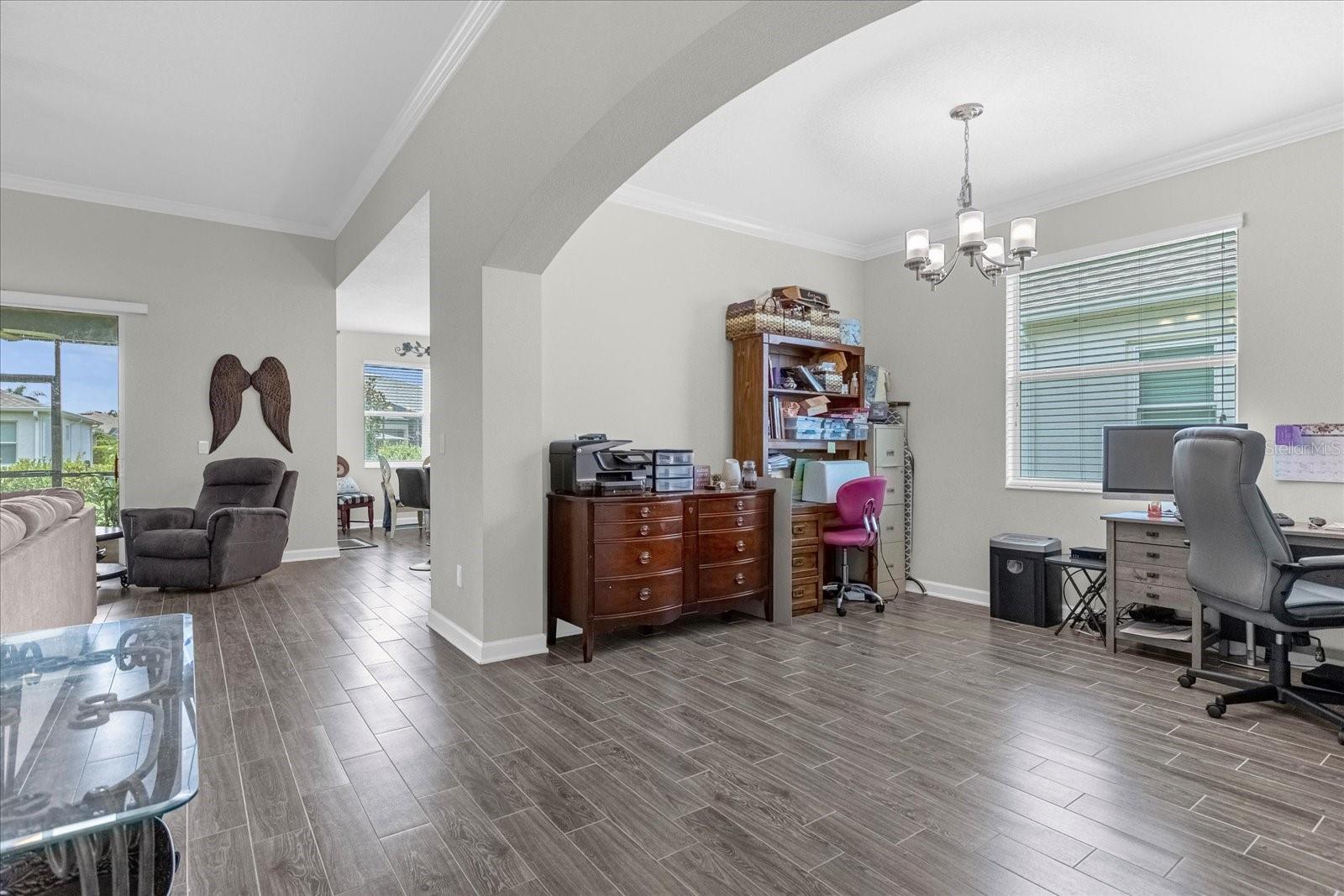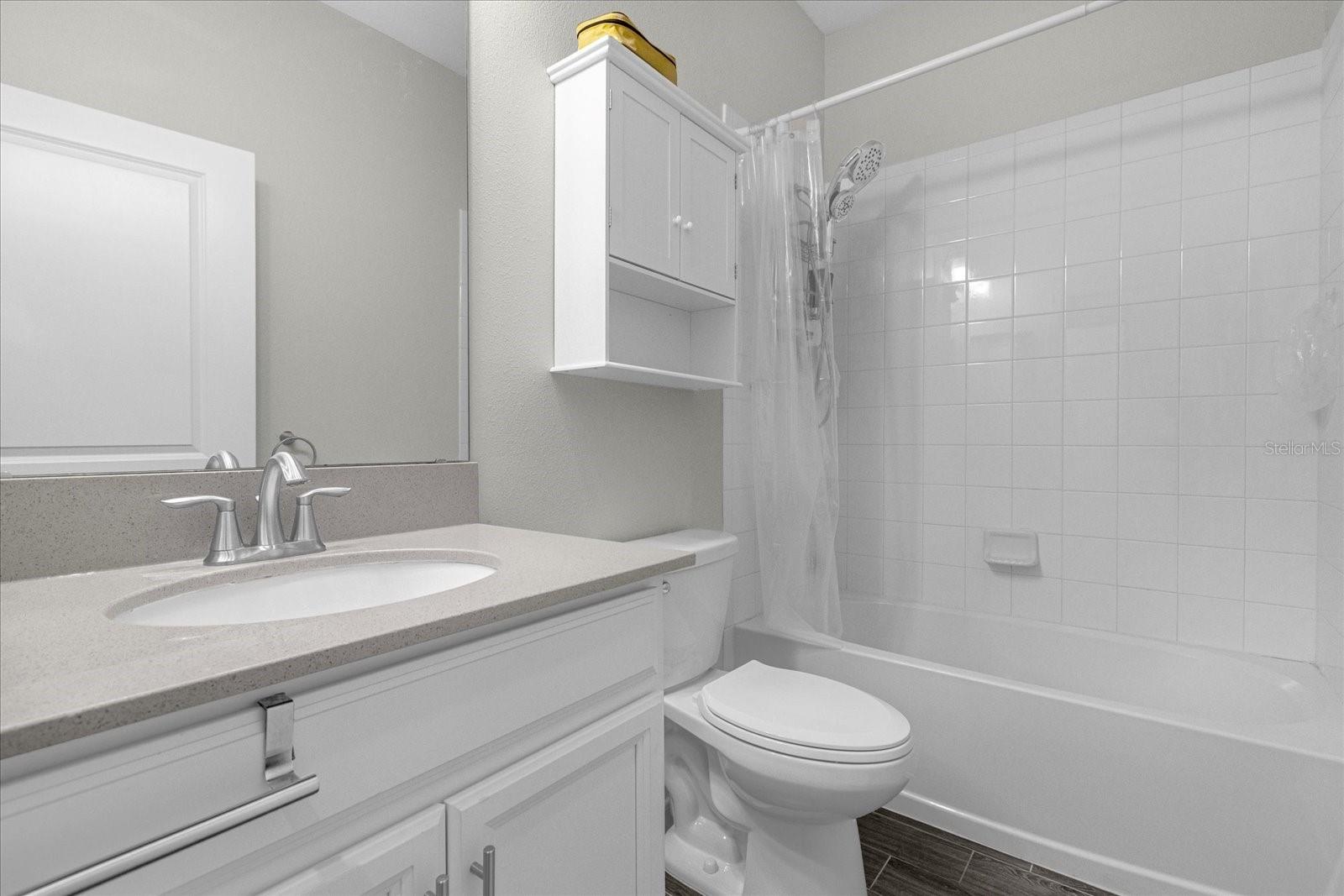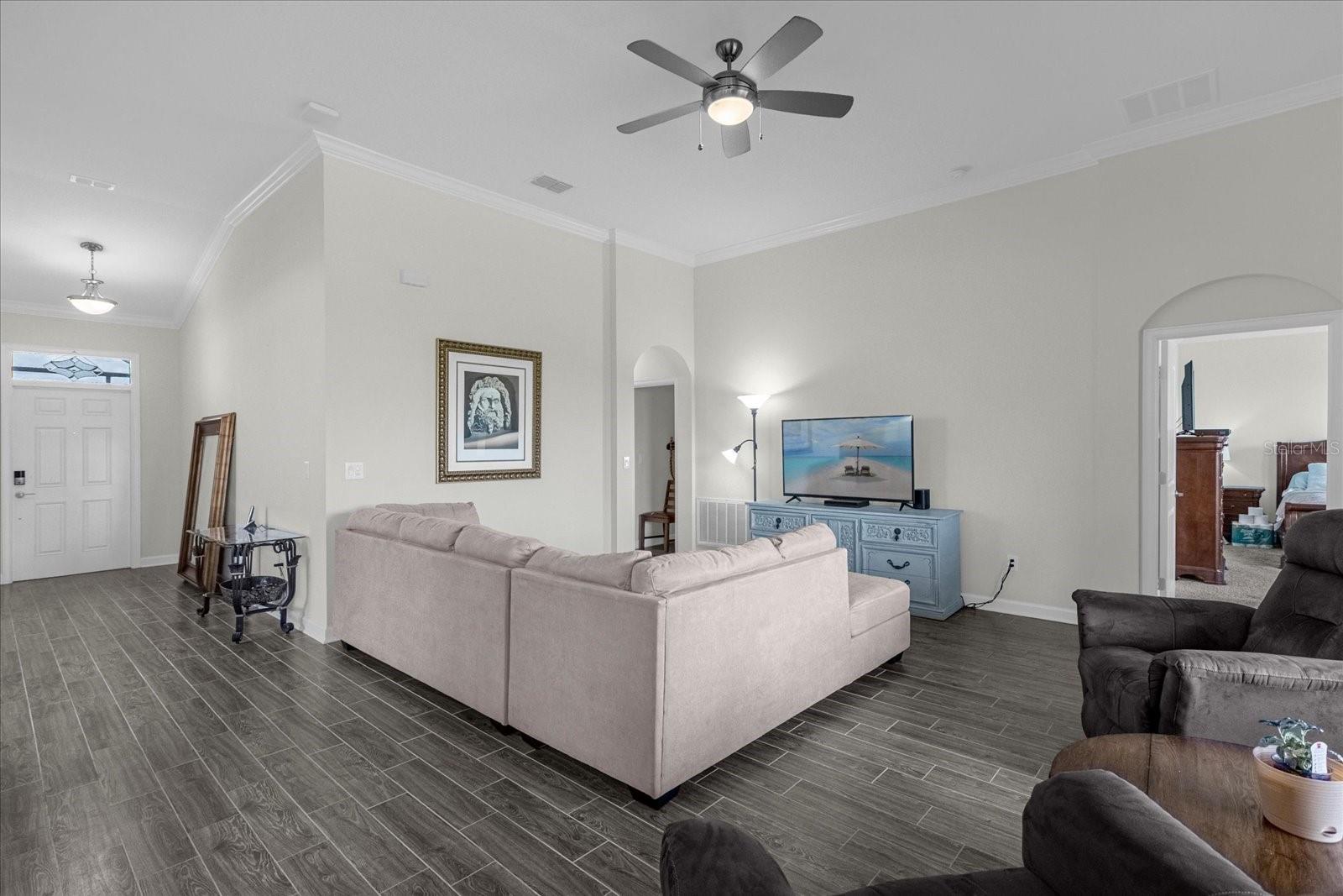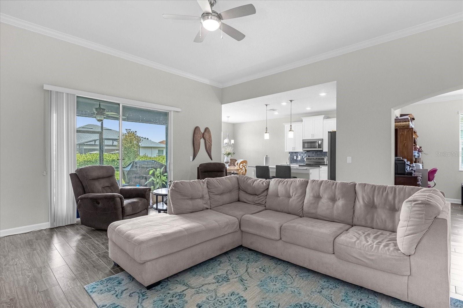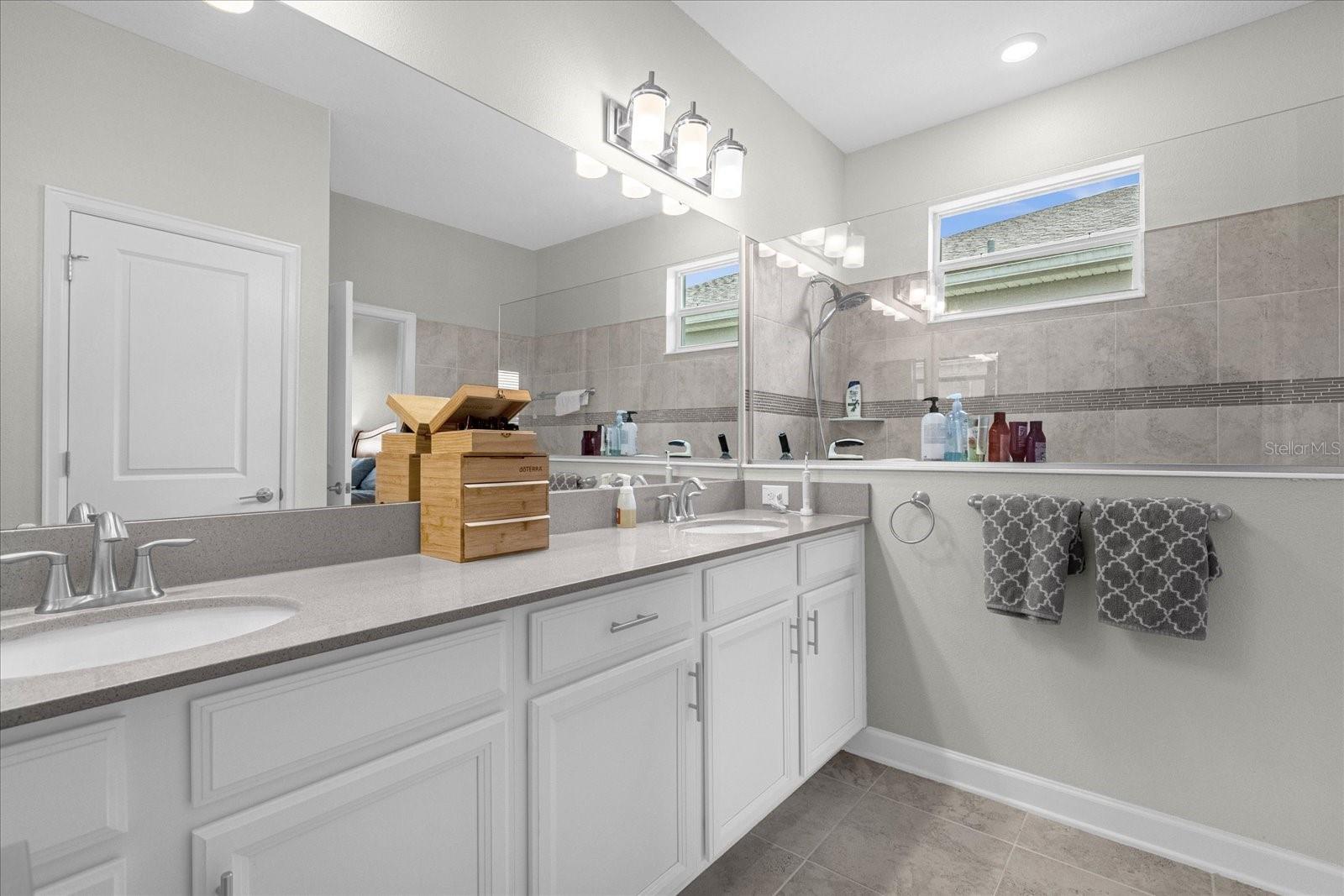 Welcome home to this gorgeous property with 2 bedrooms, plus a den, 2 baths and a 2-car garage in the private, over 55 community of Tradition. Open concept floor plan perfectly suited for those seeking a peaceful yet vibrant living environment. The main area has wood-look tile flooring throughout; Kitchen has a center Island, quartz countertops, stainless steel appliances, and it’s own pantry. This is a smart home with a security system, and 4 years of home warranty remaining. As a resident you are a short distance from exceptional amenities including Clubhouse, large pool and lap pool, spa, tennis courts, pickleball courts and much more. All this on a large lake with a boat ramp and docks for your boating needs. You can view this lake from your home. All only 10 minutes from Lego Land…
