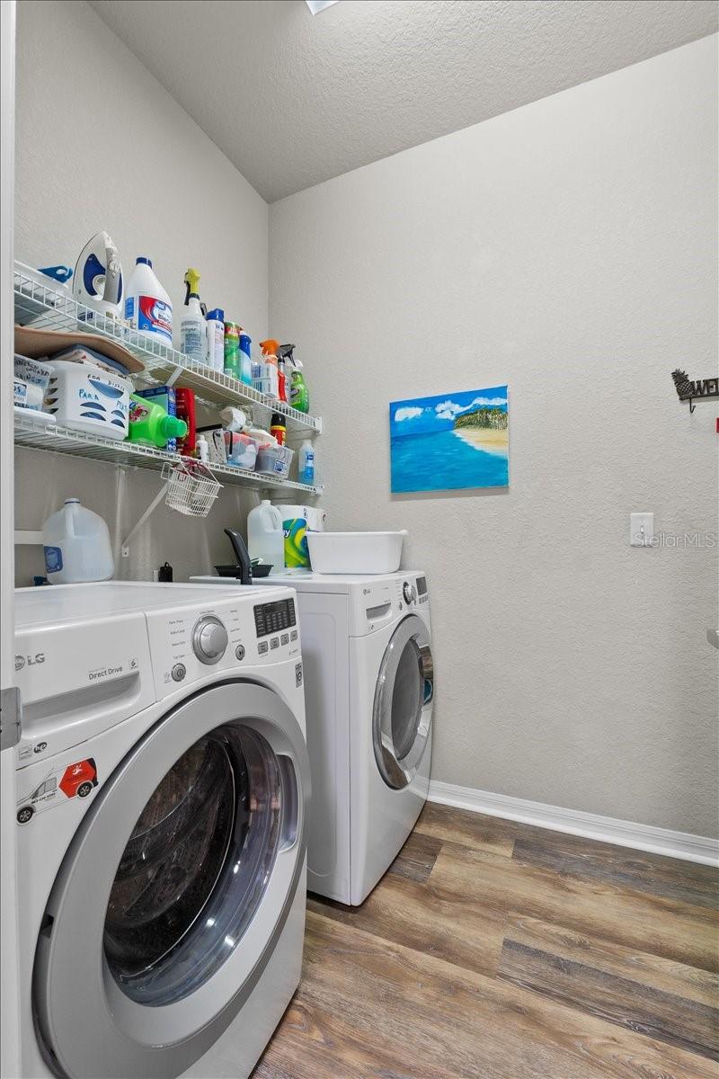 Sparkling 4 bedroom, 3 bath home located on a quiet cul-de-sac with no rear neighbors. This spacious split-bedroom plan offers over a quarter-acre premium lot and is in excellent move-in condition. Features include granite countertops, a large open kitchen with stainless steel appliances, breakfast bar, closet pantry, and an 18-inch solar tube for natural light. The kitchen opens to a huge family room with surround sound speakers. There are formal living and dining rooms, and a centrally located great room ideal for entertaining. The master suite includes a decorative tray ceiling, walk-in closet, double sinks, soaking tub, and separate walk-in shower. The third bathroom serves as a extra bath with direct access to the backyard. Brand new Lifetime Waterproof flooring has been installed throughout much of the home. The indoor laundry room is conveniently located between the garage and kitchen. Ample closet space and upgraded ceiling fans throughout. Additional features include leased solar panels with a 25-year warranty, energy-efficient E-windows with added tint on the west side, solar attic fan, attic insulation over both home and garage, insulated garage door, and built-in shelving. The driveway has been widened and the garage includes attic access with aluminum stairs. A control panel is installed for generator connection. The fully fenced backyard includes a 10x16 shed with electric, a screened-in back porch with solar shades and wall fan, and space to add a pool. Orange, lemon, lime trees and pineapple plants too! Also includes ADT security system, architectural shingles, newer Samsung refrigerator with bottom freezer, and washer and dryer less than four years old. Easy access to Dundee Road and just minutes to Hwy 27. This home is clean, upgraded, and ready to welcome new owners.