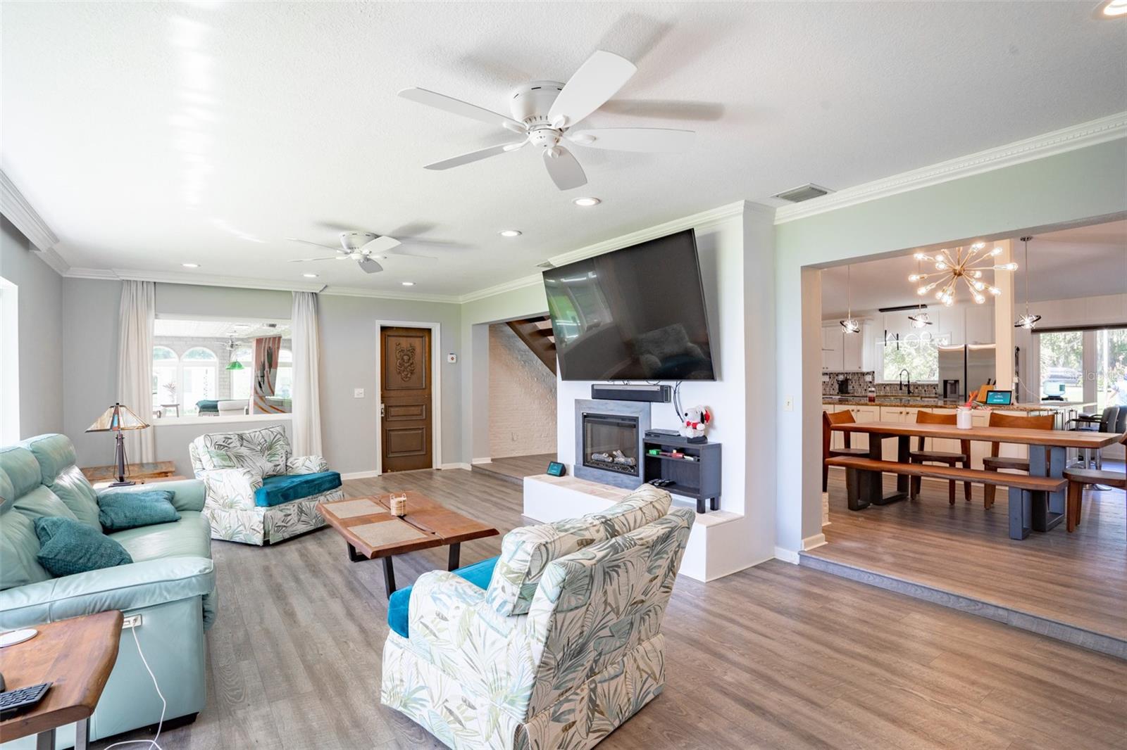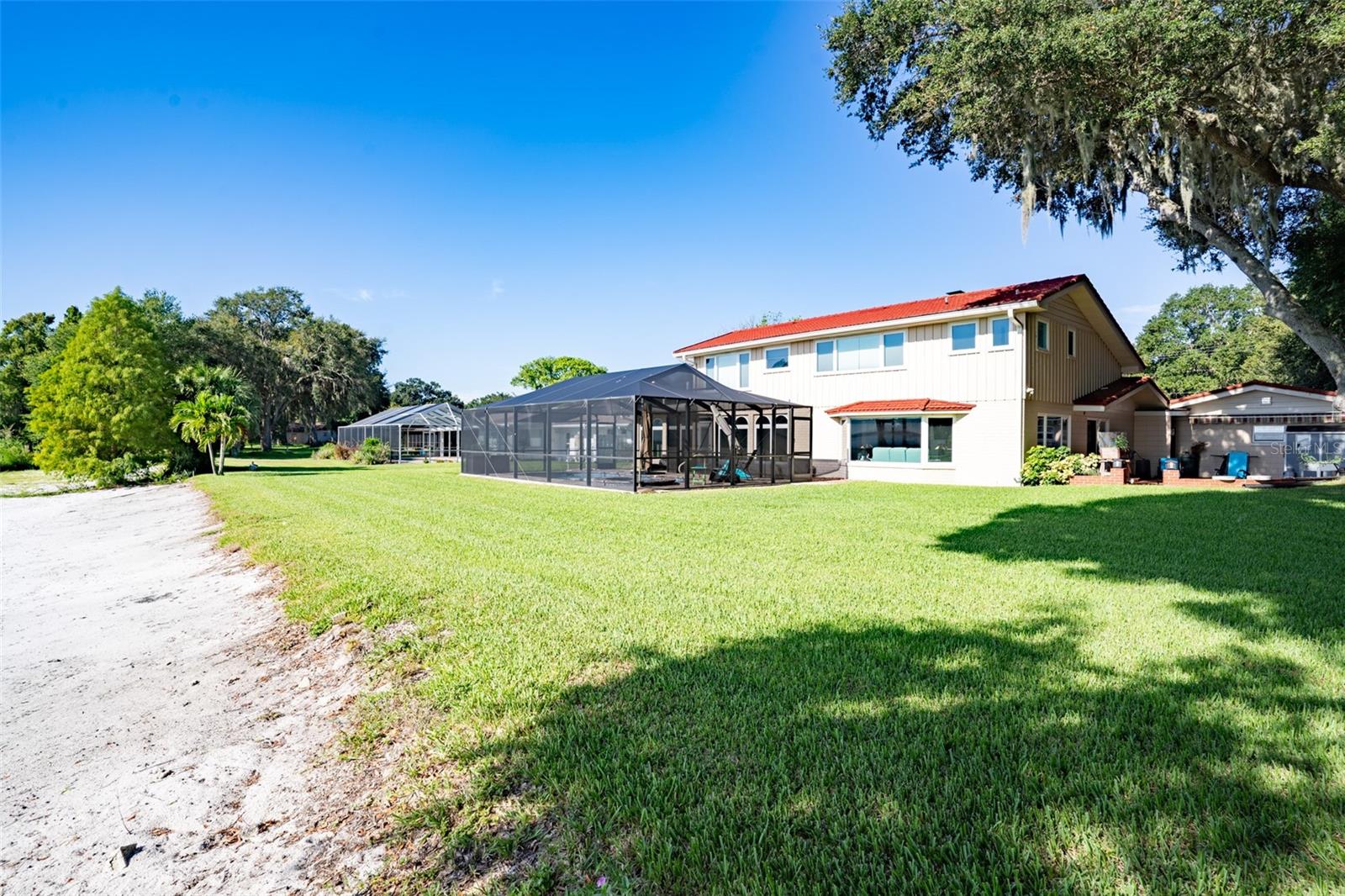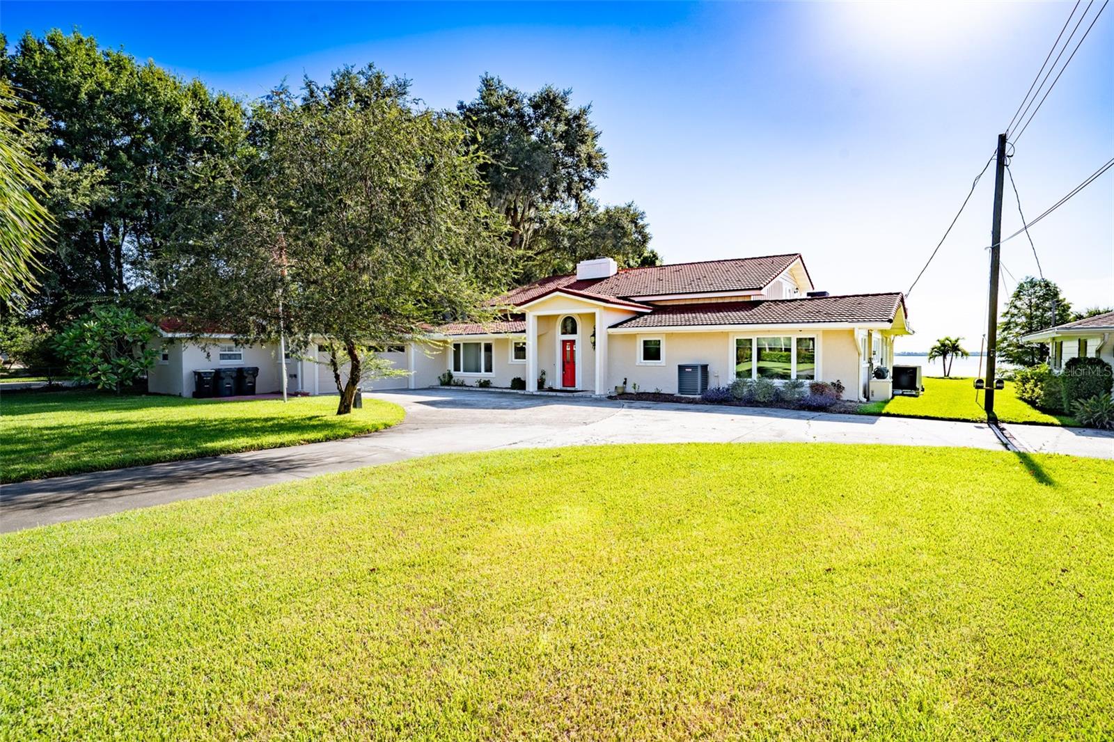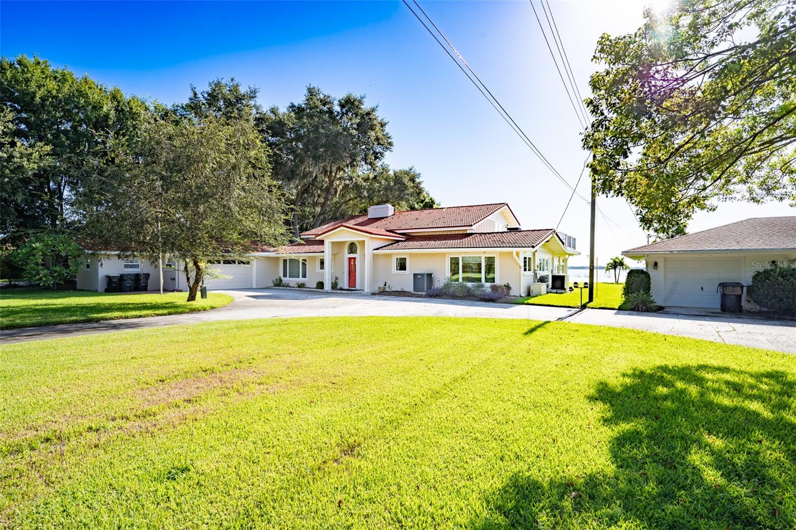 Welcome to elegant lakeside living at its finest! This captivating home offers a metal roof, new windows, new luxury vinyl plank floors, screened-in pool with hot tub and with the lakeside facing East providing a serene backdrop for sunrises over the water and your private beach. Vaulted ceilings accentuate the spacious interior, while the well-appointed kitchen with a large island, high-end granite countertops and stainless appliances is a chef's and entertainers dream. Cozy up by the duel side fireplace in the living area and dining area giving great ambiance in cooler weather. With 2 master bedrooms, one upstairs and one down you can enjoy a lot of privacy from the rest of the home with both having walk in closets. The upstairs master bedroom has its own kitchenette as well as a private living room allowing this to be used as a mother-in-law suite. The other 2 bedrooms on the lower level could easily be turned into another master, as there is a full bathroom that is in the back bedroom and the wall in between is not load bearing. Say goodbye to power outages with a full house generator and all of this in a neighborhood with no HOA, creating a truly exceptional lakeside retreat!!