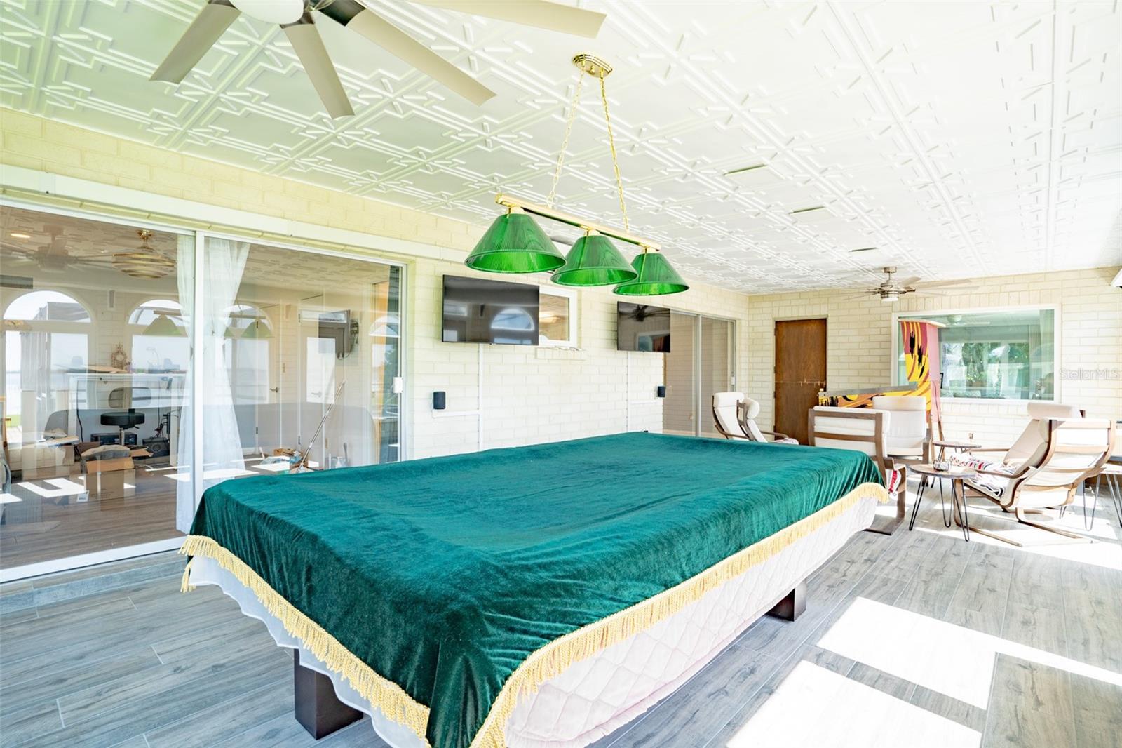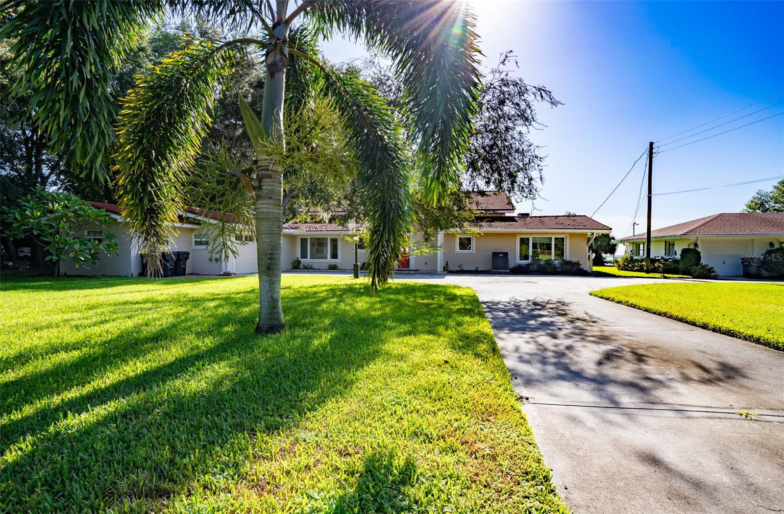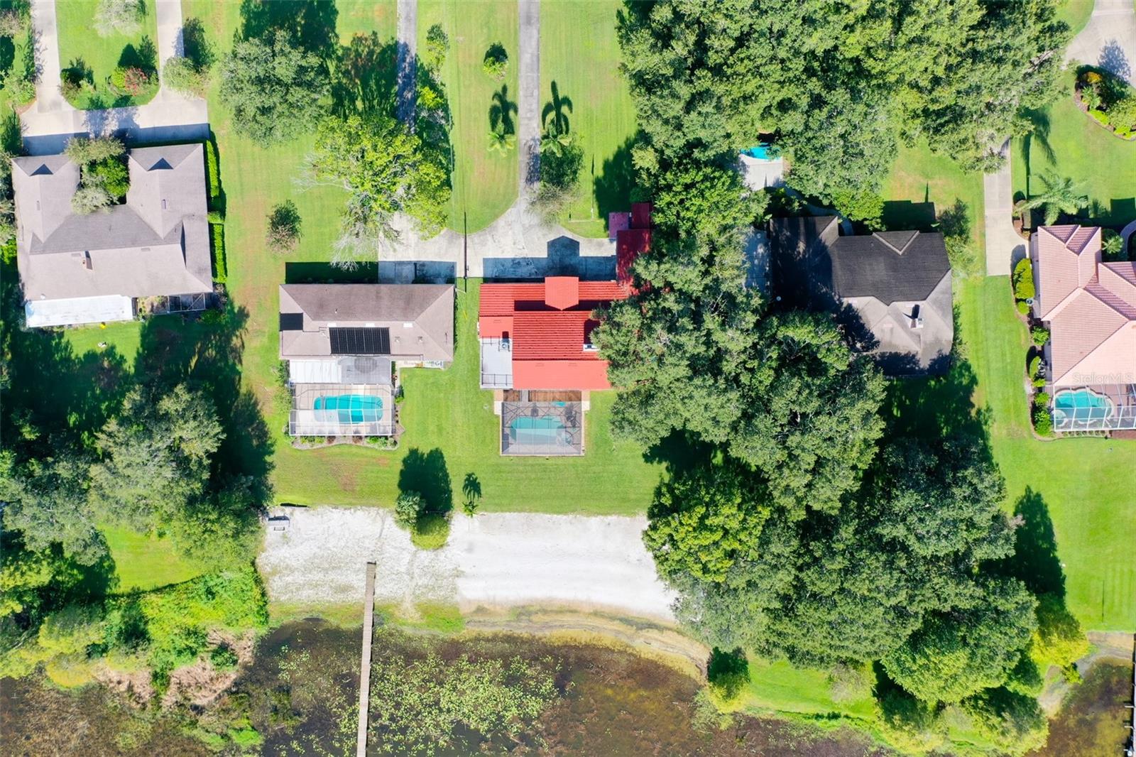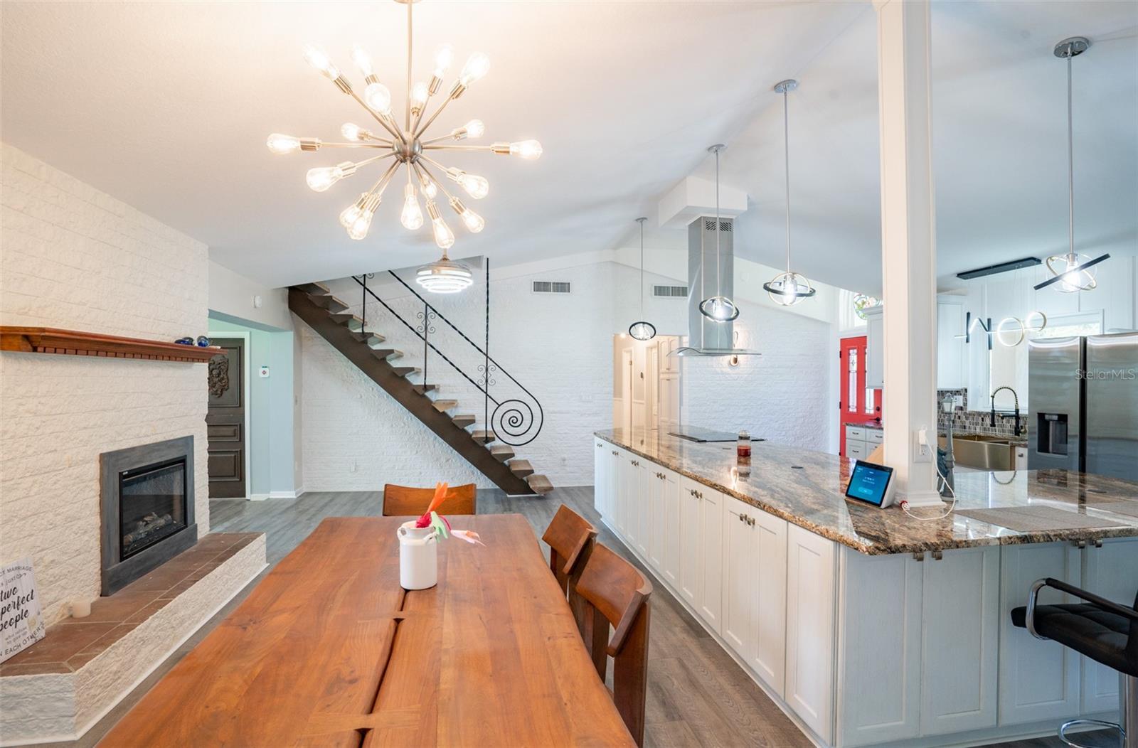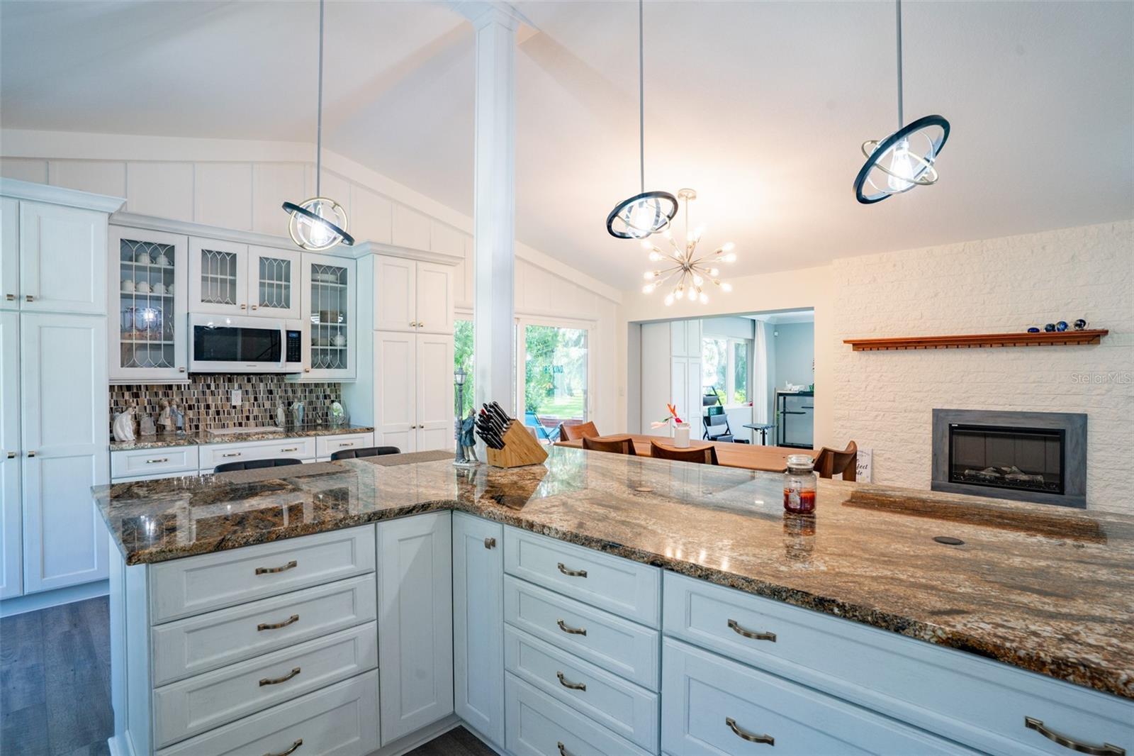 Welcome to elegant lakeside living at its finest! This captivating home offers a metal roof, new windows, new luxury vinyl plank floors, screened-in pool with hot tub and with the lakeside facing East providing a serene backdrop for sunrises over the water and your private beach. Vaulted ceilings accentuate the spacious interior, while the well-appointed kitchen with a large island, high-end granite countertops and stainless appliances is a chef's and entertainers dream. Cozy up by the duel side fireplace in the living area and dining area giving great ambiance in cooler weather. With 2 master bedrooms, one upstairs and one down you can enjoy a lot of privacy from the rest of the home with both having walk in closets. The upstairs master bedroom has its own kitchenette as well as a private living room allowing this to be used as a mother-in-law suite. The other 2 bedrooms on the lower level could easily be turned into another master, as there is a full bathroom that is in the back bedroom and the wall in between is not load bearing. Say goodbye to power outages with a full house generator and all of this in a neighborhood with no HOA, creating a truly exceptional lakeside retreat!!