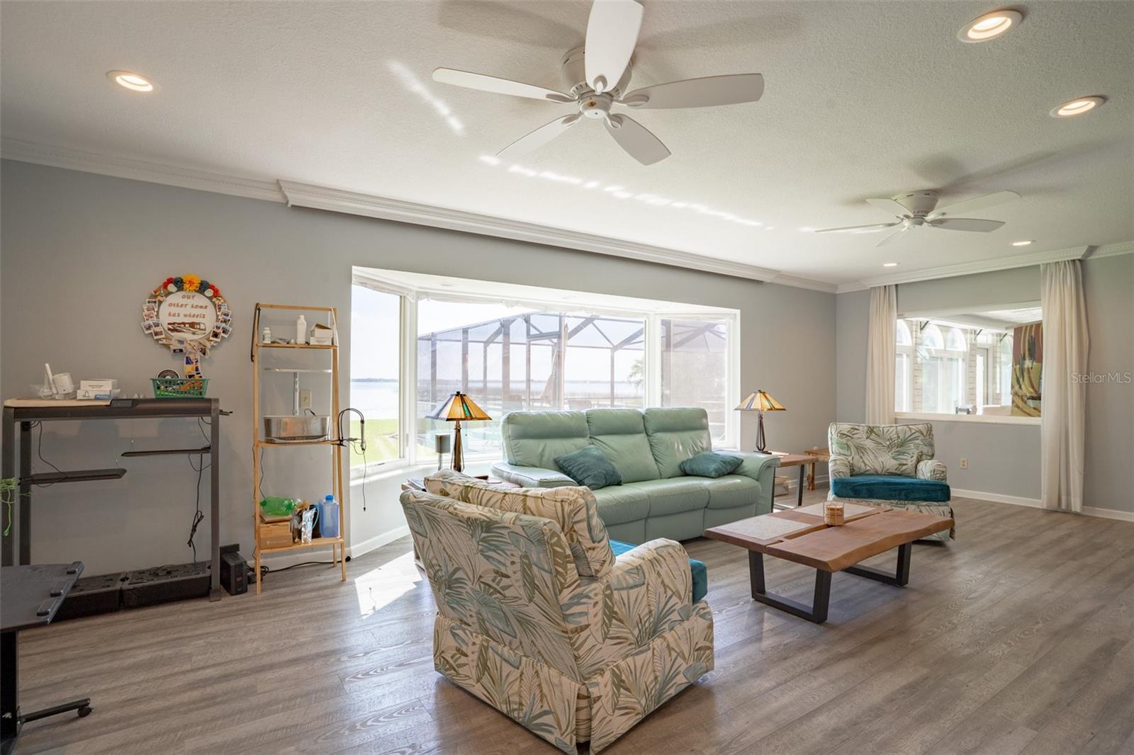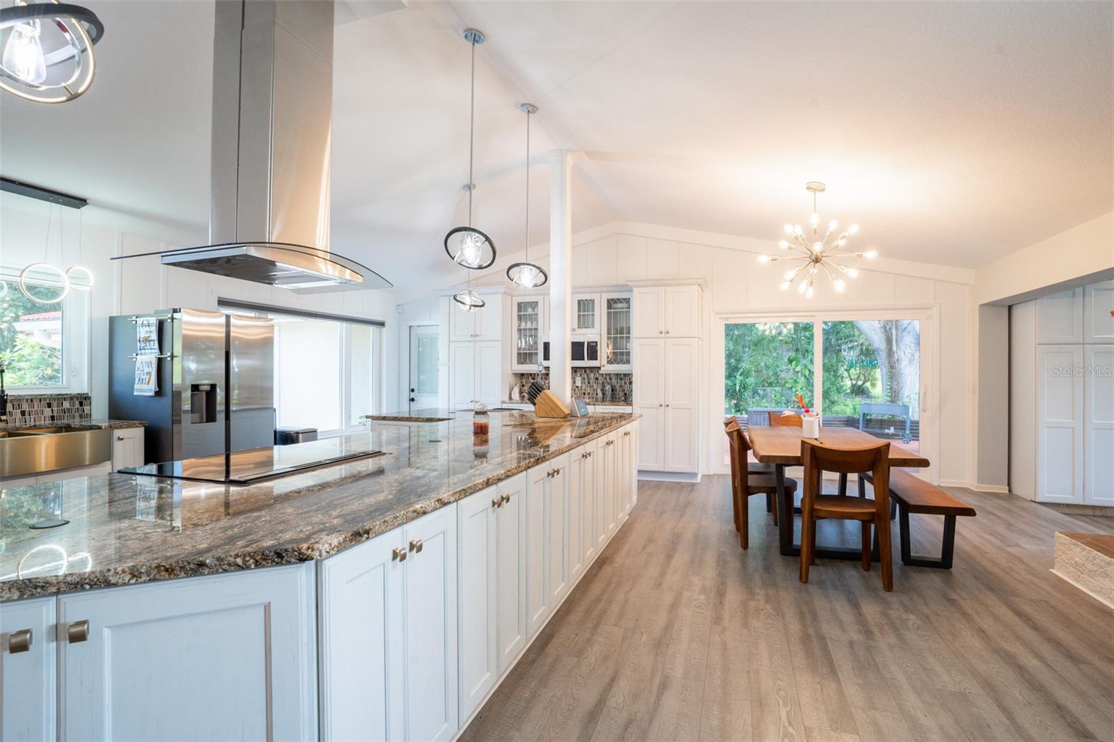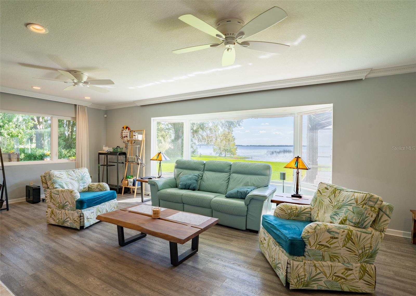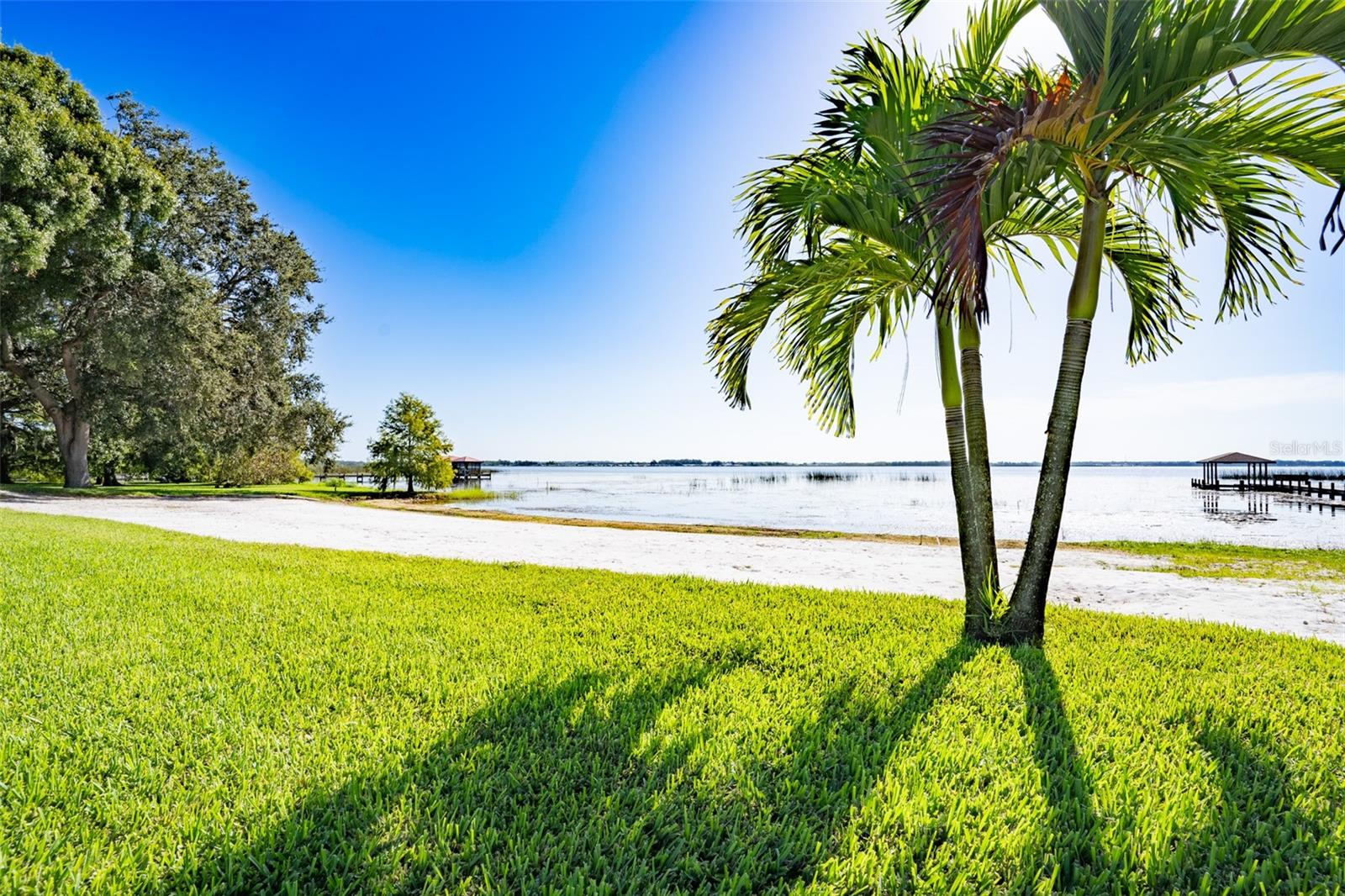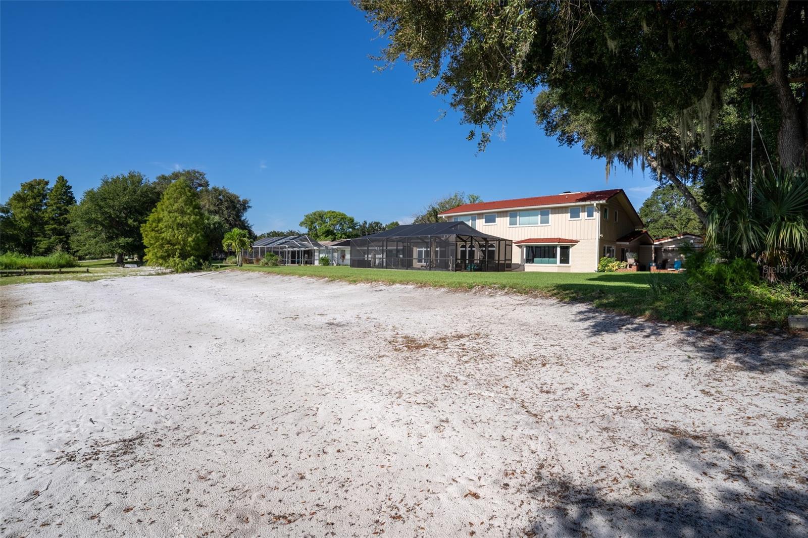 Welcome to elegant lakeside living at its finest! This captivating home offers a metal roof, new windows, new luxury vinyl plank floors, screened-in pool with hot tub and with the lakeside facing East providing a serene backdrop for sunrises over the water and your private beach. Vaulted ceilings accentuate the spacious interior, while the well-appointed kitchen with a large island, high-end granite countertops and stainless appliances is a chef's and entertainers dream. Cozy up by the duel side fireplace in the living area and dining area giving great ambiance in cooler weather. With 2 master bedrooms, one upstairs and one down you can enjoy a lot of privacy from the rest of the home with both having walk in closets. The upstairs master bedroom has its own kitchenette as well as a private living room allowing this to be used as a mother-in-law suite. The other 2 bedrooms on the lower level could easily be turned into another master, as there is a full bathroom that is in the back bedroom and the wall in between is not load bearing. Say goodbye to power outages with a full house generator and all of this in a neighborhood with no HOA, creating a truly exceptional lakeside retreat!!