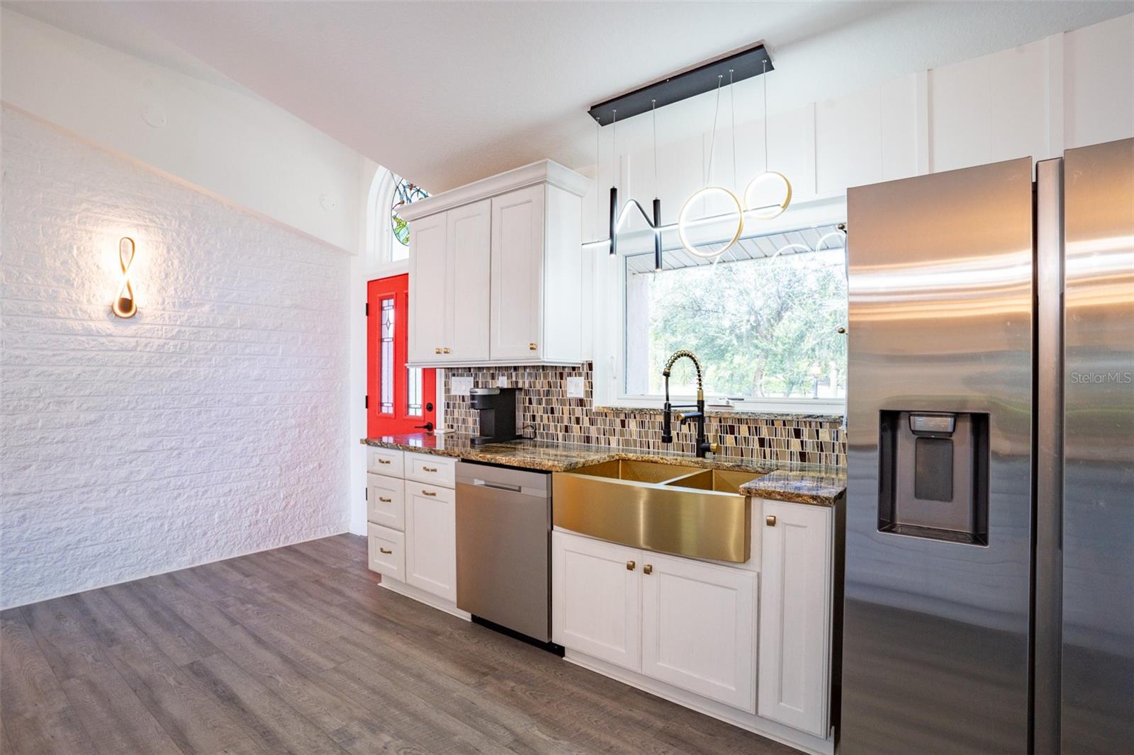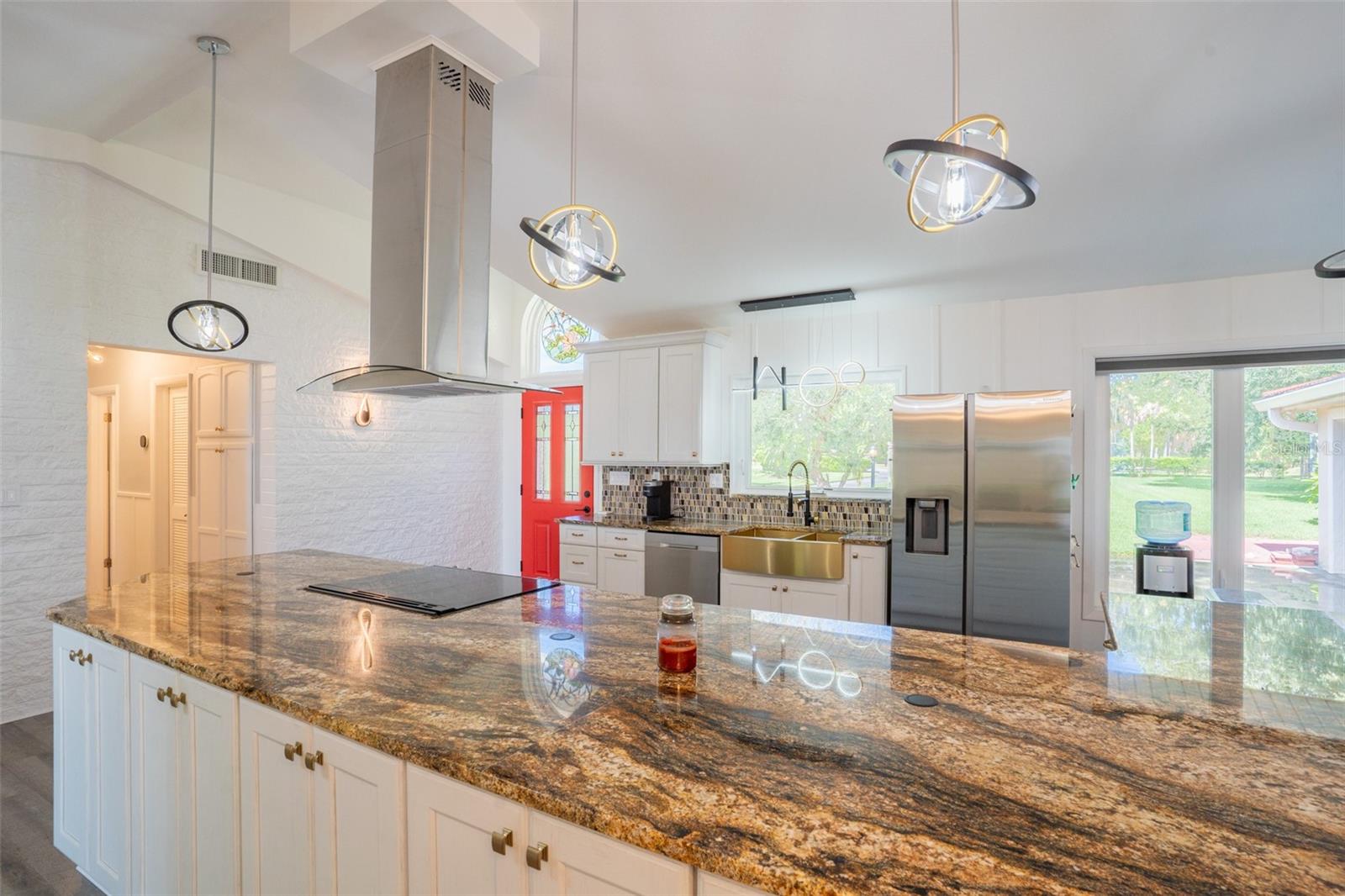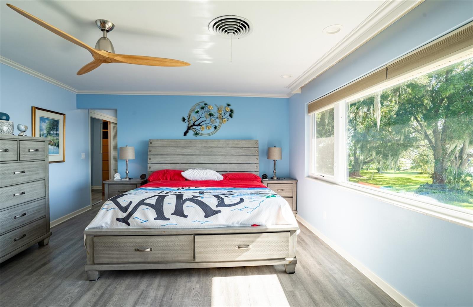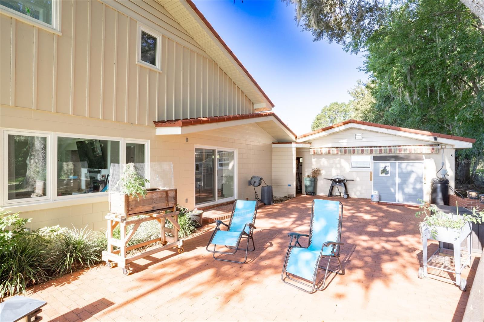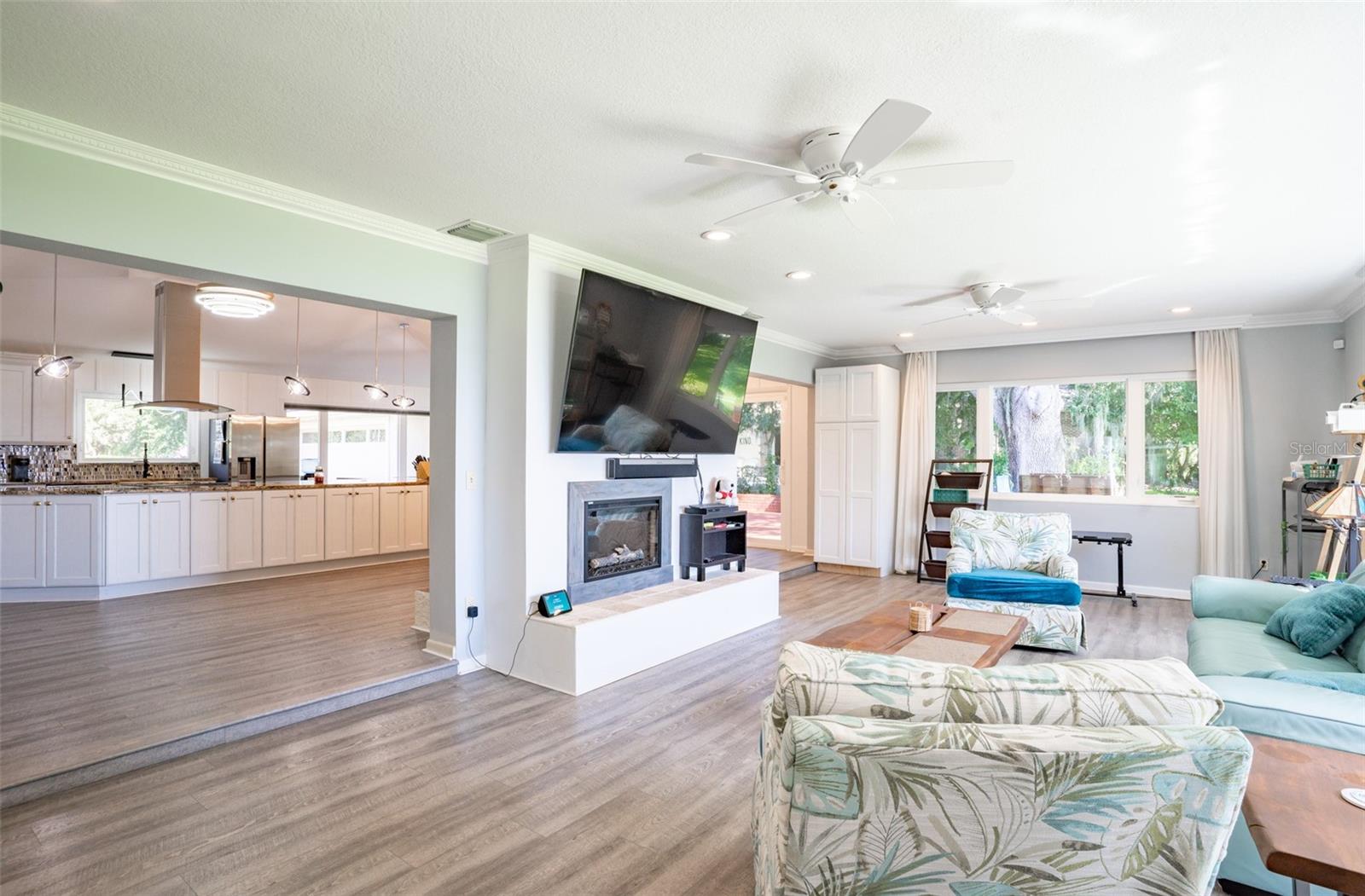 Welcome to elegant lakeside living at its finest! This captivating home offers a metal roof, new windows, new luxury vinyl plank floors, screened-in pool with hot tub and with the lakeside facing East providing a serene backdrop for sunrises over the water and your private beach. Vaulted ceilings accentuate the spacious interior, while the well-appointed kitchen with a large island, high-end granite countertops and stainless appliances is a chef's and entertainers dream. Cozy up by the duel side fireplace in the living area and dining area giving great ambiance in cooler weather. With 2 master bedrooms, one upstairs and one down you can enjoy a lot of privacy from the rest of the home with both having walk in closets. The upstairs master bedroom has its own kitchenette as well as a private living room allowing this to be used as a mother-in-law suite. The other 2 bedrooms on the lower level could easily be turned into another master, as there is a full bathroom that is in the back bedroom and the wall in between is not load bearing. Say goodbye to power outages with a full house generator and all of this in a neighborhood with no HOA, creating a truly exceptional lakeside retreat!!