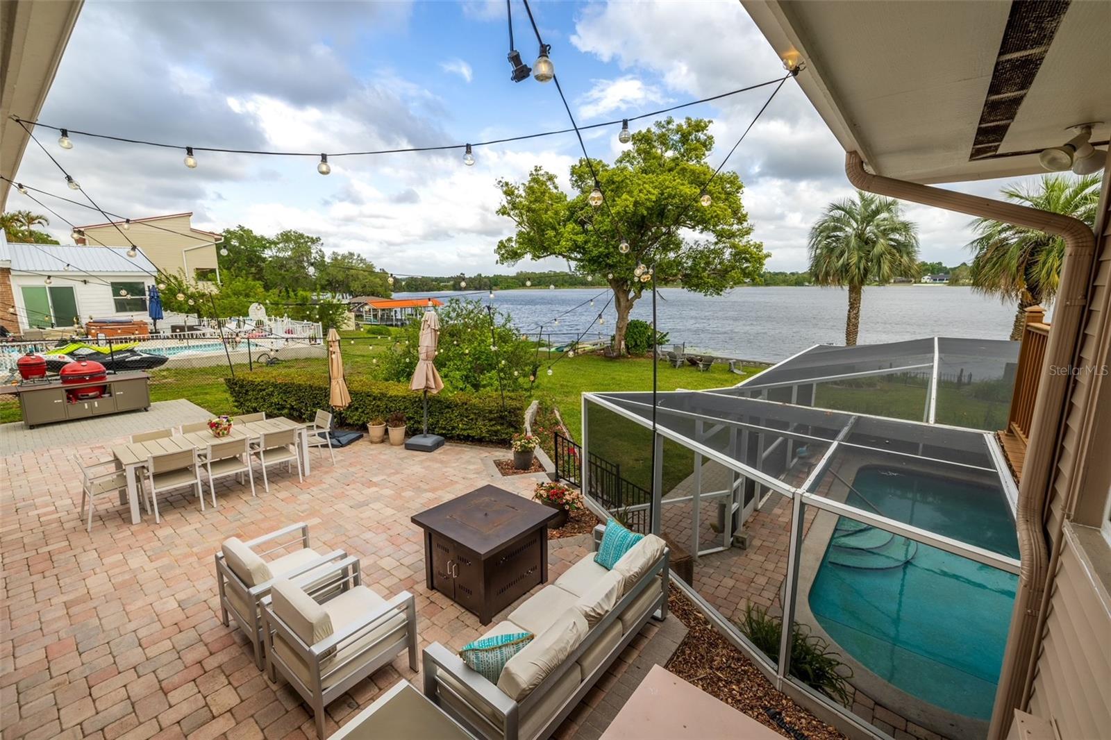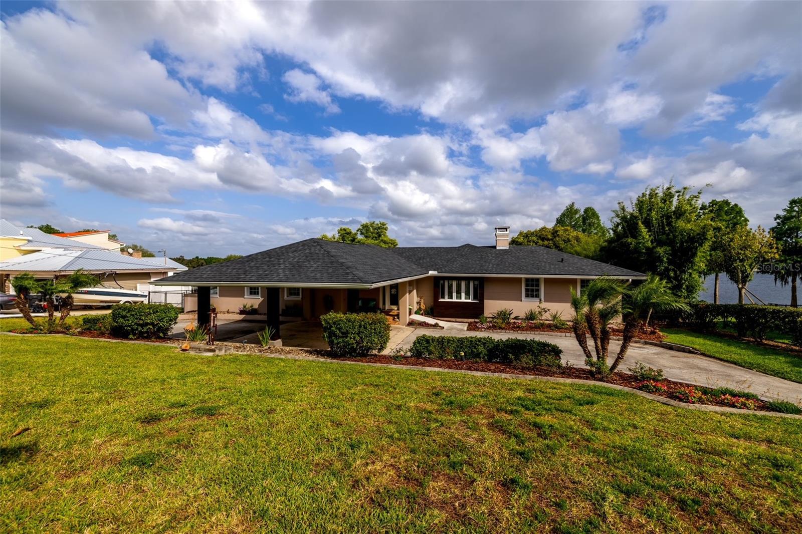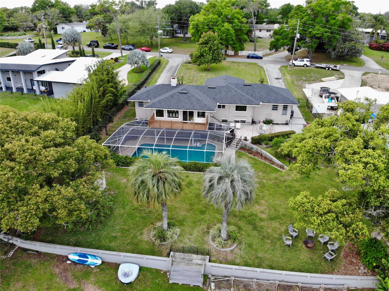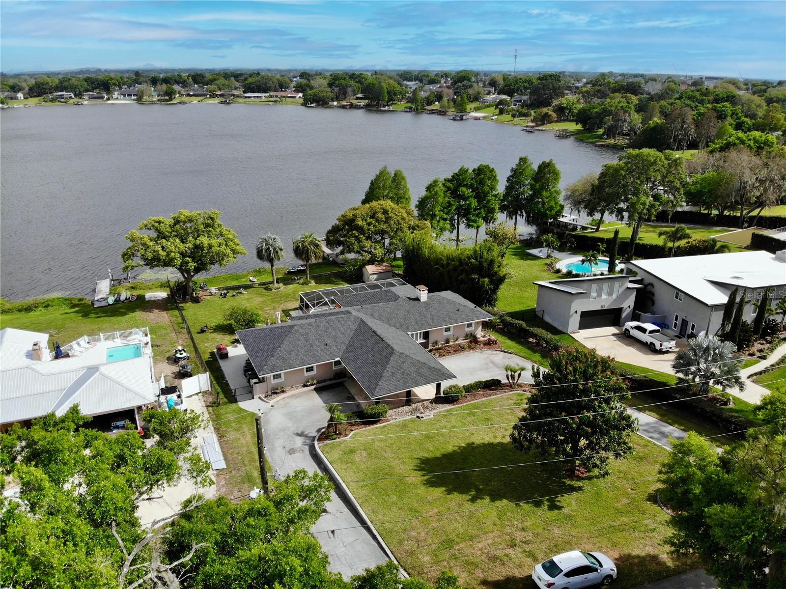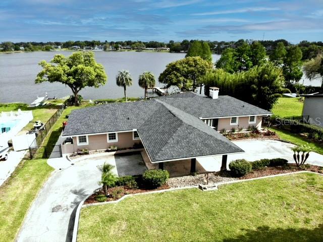 MAGNIFICENT LAKEFRONT POOL HOME. Experience lakeside luxury at its finest in this stunning lakefront retreat with a pool. Nestled on a tranquil, non-HOA street, this home offers over half an acre of natural beauty overlooking spring-fed Lake Florence. This spacious and updated home blends modern comfort with serene natural beauty. The expansive, open-concept layout showcases breathtaking lake views from nearly every room, complemented by high ceilings and abundant natural light. Recent renovations elevate the home's allure, presenting a flawless composition of space and design. Featuring four bedrooms, with a bonus room that could serve as a fifth bedroom, and three baths, this home offers both space and versatility. The living room boasts a stunning stacked stone fireplace and a charming window seat area, while the dining room offers 180-degree lake views, allowing for a blissful escape to immerse yourself in the beauty of the outdoors. The kitchen is equipped with sleek appliances, a farm-style sink, and a nook area perfect for entertaining. The master suite is a sanctuary of comfort and luxury, featuring built-in shelving, a generous walk-in closet, an indulgent jetted tub, a double sink vanity, and a walk-in shower, all contributing to an atmosphere of refined relaxation. Furthermore, the lower level features a cozy game area/man cave. The home's serene setting is further enhanced by its lush backyard oasis, oversized pool, tree swing, fenced-in outdoor spaces including a separate dog run, multi-level paved patio and deck perfect for al fresco dining while enjoying the stunning and peaceful lake views. The landscape is adorned with roses and fruit trees such as mango, banana, Barbados cherry (acerola), fig, guava, lemon, and orange trees. The property offers hurricane readiness features including shutters and a generator set-up interlock switch, as well as unique ground-level spaces providing ease during inclement weather. Additionally, the home includes an electric vehicle charger, perfect for eco-conscious homeowners. Whether seeking a time of quiet contemplation or the adventures of lake house living, this property offers a blissful escape. With its prime location and luxurious amenities, this home is an ideal retreat for those seeking a peaceful yet conveniently located sanctuary. This home offers not just a residence, but a lifestyle—a perfect blend of tranquility and convenience. Don’t miss this opportunity to own a piece of paradise, this house will sell fast. SCHEDULE YOUR PRIVATE TOUR TODAY!