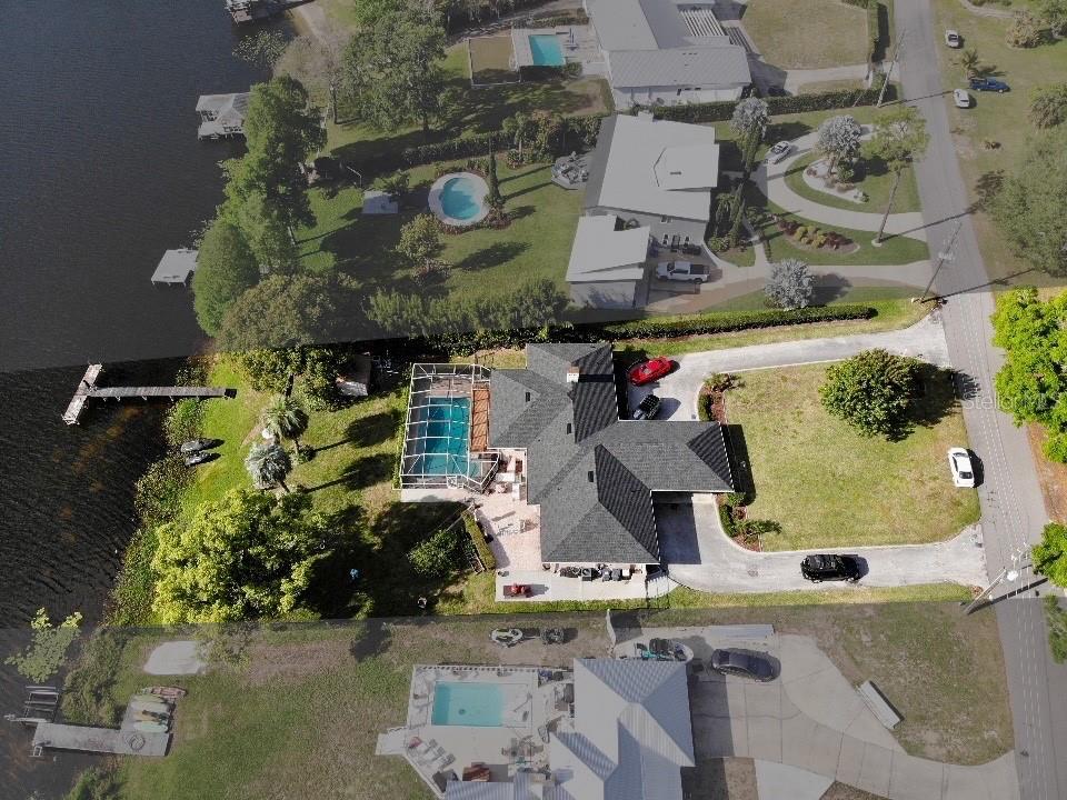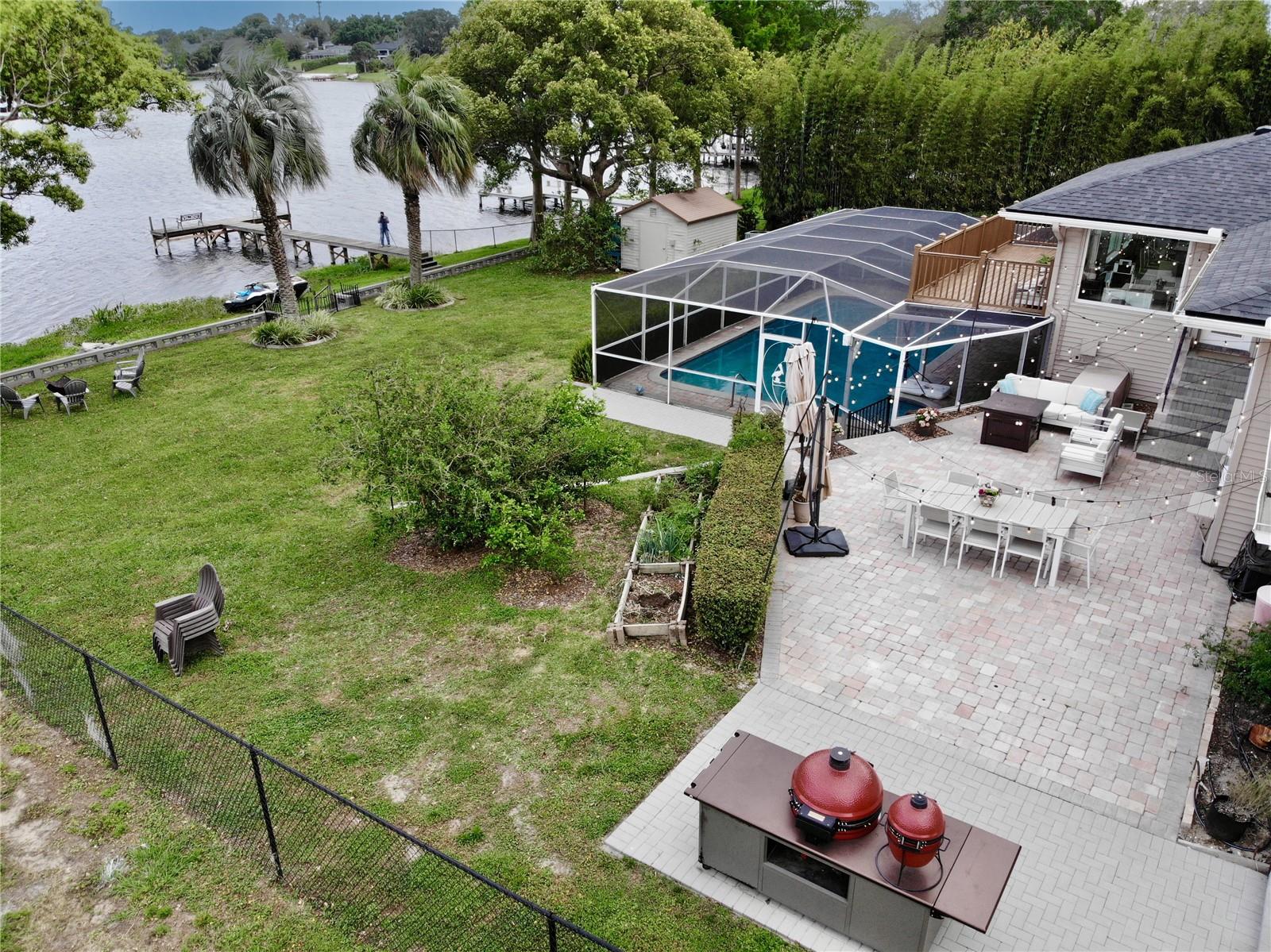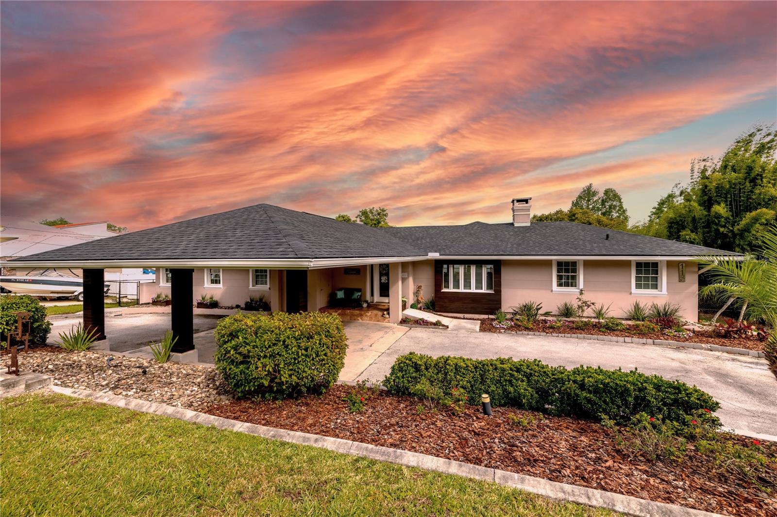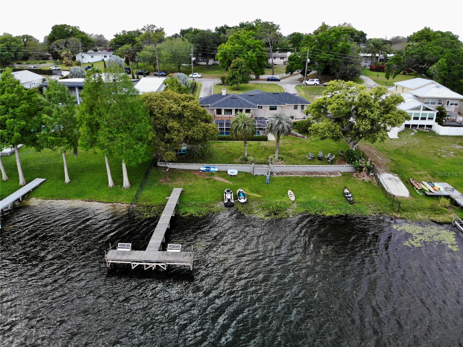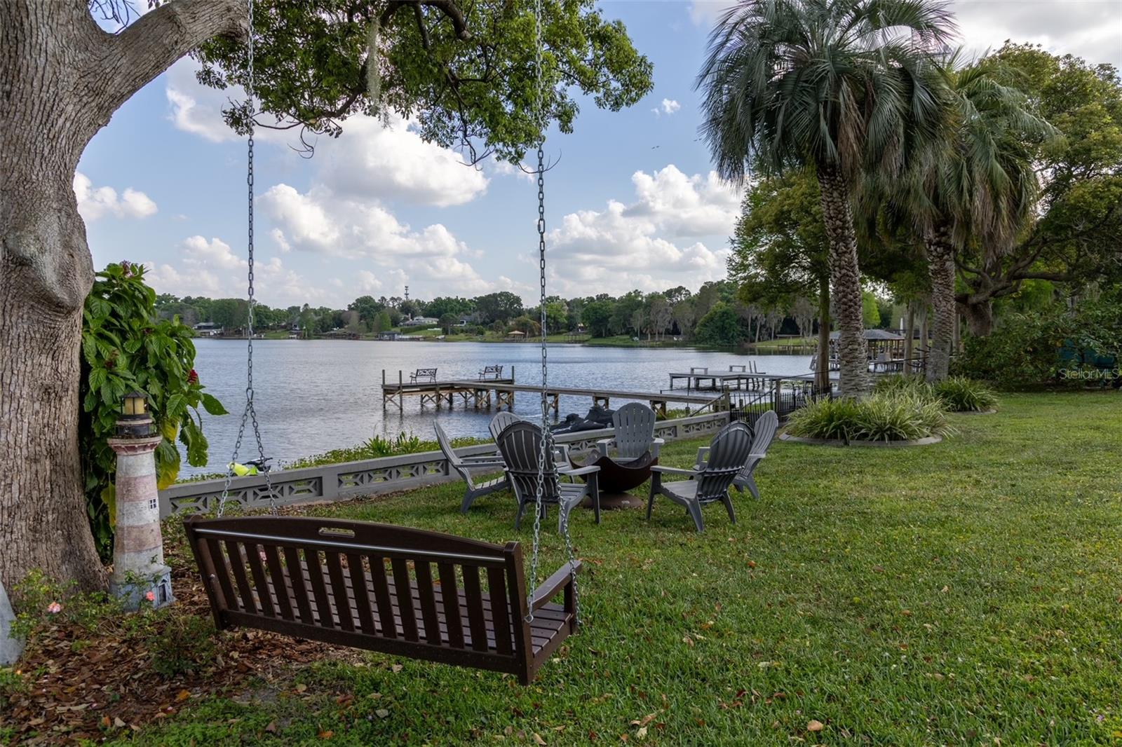 MAGNIFICENT LAKEFRONT POOL HOME. Experience lakeside luxury at its finest in this stunning lakefront retreat with a pool. Nestled on a tranquil, non-HOA street, this home offers over half an acre of natural beauty overlooking spring-fed Lake Florence. This spacious and updated home blends modern comfort with serene natural beauty. The expansive, open-concept layout showcases breathtaking lake views from nearly every room, complemented by high ceilings and abundant natural light. Recent renovations elevate the home's allure, presenting a flawless composition of space and design. Featuring four bedrooms, with a bonus room that could serve as a fifth bedroom, and three baths, this home offers both space and versatility. The living room boasts a stunning stacked stone fireplace and a charming window seat area, while the dining room offers 180-degree lake views, allowing for a blissful escape to immerse yourself in the beauty of the outdoors. The kitchen is equipped with sleek appliances, a farm-style sink, and a nook area perfect for entertaining. The master suite is a sanctuary of comfort and luxury, featuring built-in shelving, a generous walk-in closet, an indulgent jetted tub, a double sink vanity, and a walk-in shower, all contributing to an atmosphere of refined relaxation. Furthermore, the lower level features a cozy game area/man cave. The home's serene setting is further enhanced by its lush backyard oasis, oversized pool, tree swing, fenced-in outdoor spaces including a separate dog run, multi-level paved patio and deck perfect for al fresco dining while enjoying the stunning and peaceful lake views. The landscape is adorned with roses and fruit trees such as mango, banana, Barbados cherry (acerola), fig, guava, lemon, and orange trees. The property offers hurricane readiness features including shutters and a generator set-up interlock switch, as well as unique ground-level spaces providing ease during inclement weather. Additionally, the home includes an electric vehicle charger, perfect for eco-conscious homeowners. Whether seeking a time of quiet contemplation or the adventures of lake house living, this property offers a blissful escape. With its prime location and luxurious amenities, this home is an ideal retreat for those seeking a peaceful yet conveniently located sanctuary. This home offers not just a residence, but a lifestyle—a perfect blend of tranquility and convenience. Don’t miss this opportunity to own a piece of paradise, this house will sell fast. SCHEDULE YOUR PRIVATE TOUR TODAY!