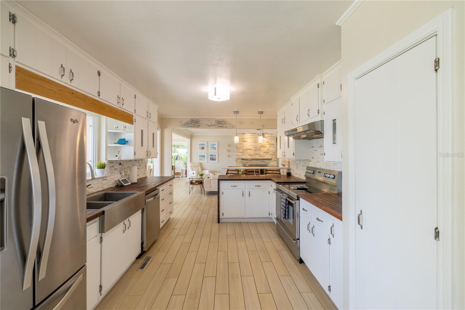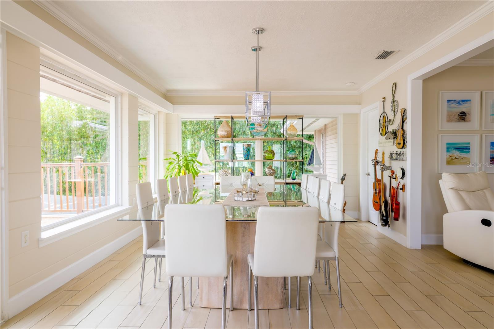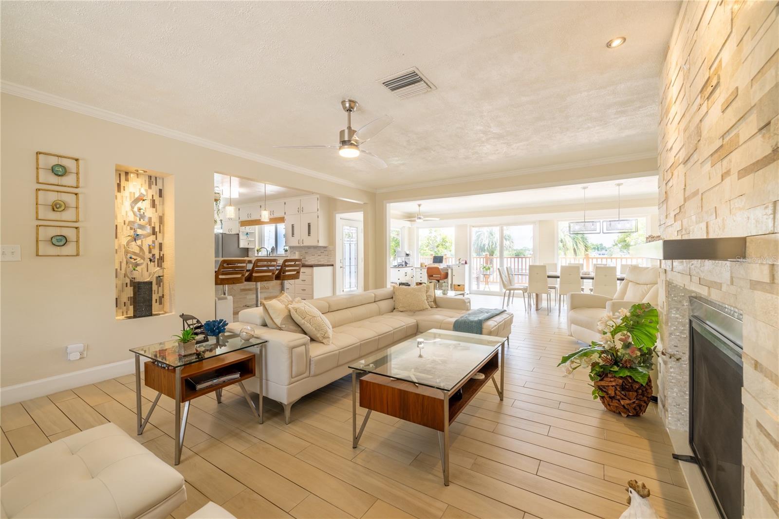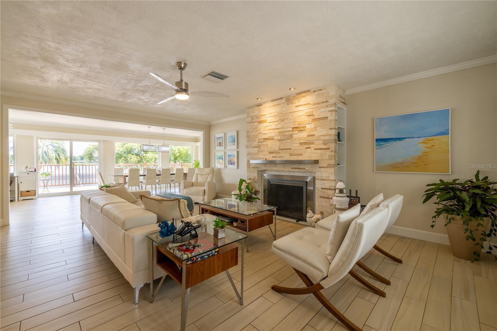 MAGNIFICENT LAKEFRONT POOL HOME. Experience lakeside luxury at its finest in this stunning lakefront retreat with a pool. Nestled on a tranquil, non-HOA street, this home offers over half an acre of natural beauty overlooking spring-fed Lake Florence. This spacious and updated home blends modern comfort with serene natural beauty. The expansive, open-concept layout showcases breathtaking lake views from nearly every room, complemented by high ceilings and abundant natural light. Recent renovations elevate the home's allure, presenting a flawless composition of space and design. Featuring four bedrooms, with a bonus room that could serve as a fifth bedroom, and three baths, this home offers both space and versatility. The living room boasts a stunning stacked stone fireplace and a charming window seat area, while the dining room offers 180-degree lake views, allowing for a blissful escape to immerse yourself in the beauty of the outdoors. The kitchen is equipped with sleek appliances, a farm-style sink, and a nook area perfect for entertaining. The master suite is a sanctuary of comfort and luxury, featuring built-in shelving, a generous walk-in closet, an indulgent jetted tub, a double sink vanity, and a walk-in shower, all contributing to an atmosphere of refined relaxation. Furthermore, the lower level features a cozy game area/man cave. The home's serene setting is further enhanced by its lush backyard oasis, oversized pool, tree swing, fenced-in outdoor spaces including a separate dog run, multi-level paved patio and deck perfect for al fresco dining while enjoying the stunning and peaceful lake views. The landscape is adorned with roses and fruit trees such as mango, banana, Barbados cherry (acerola), fig, guava, lemon, and orange trees. The property offers hurricane readiness features including shutters and a generator set-up interlock switch, as well as unique ground-level spaces providing ease during inclement weather. Additionally, the home includes an electric vehicle charger, perfect for eco-conscious homeowners. Whether seeking a time of quiet contemplation or the adventures of lake house living, this property offers a blissful escape. With its prime location and luxurious amenities, this home is an ideal retreat for those seeking a peaceful yet conveniently located sanctuary. This home offers not just a residence, but a lifestyle—a perfect blend of tranquility and convenience. Don’t miss this opportunity to own a piece of paradise, this house will sell fast. SCHEDULE YOUR PRIVATE TOUR TODAY!