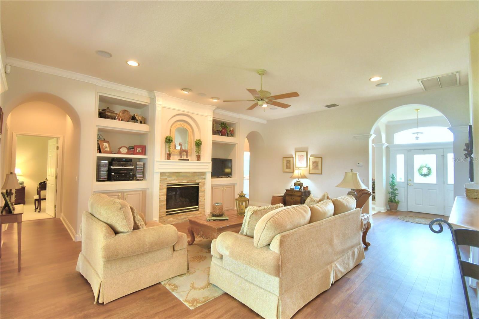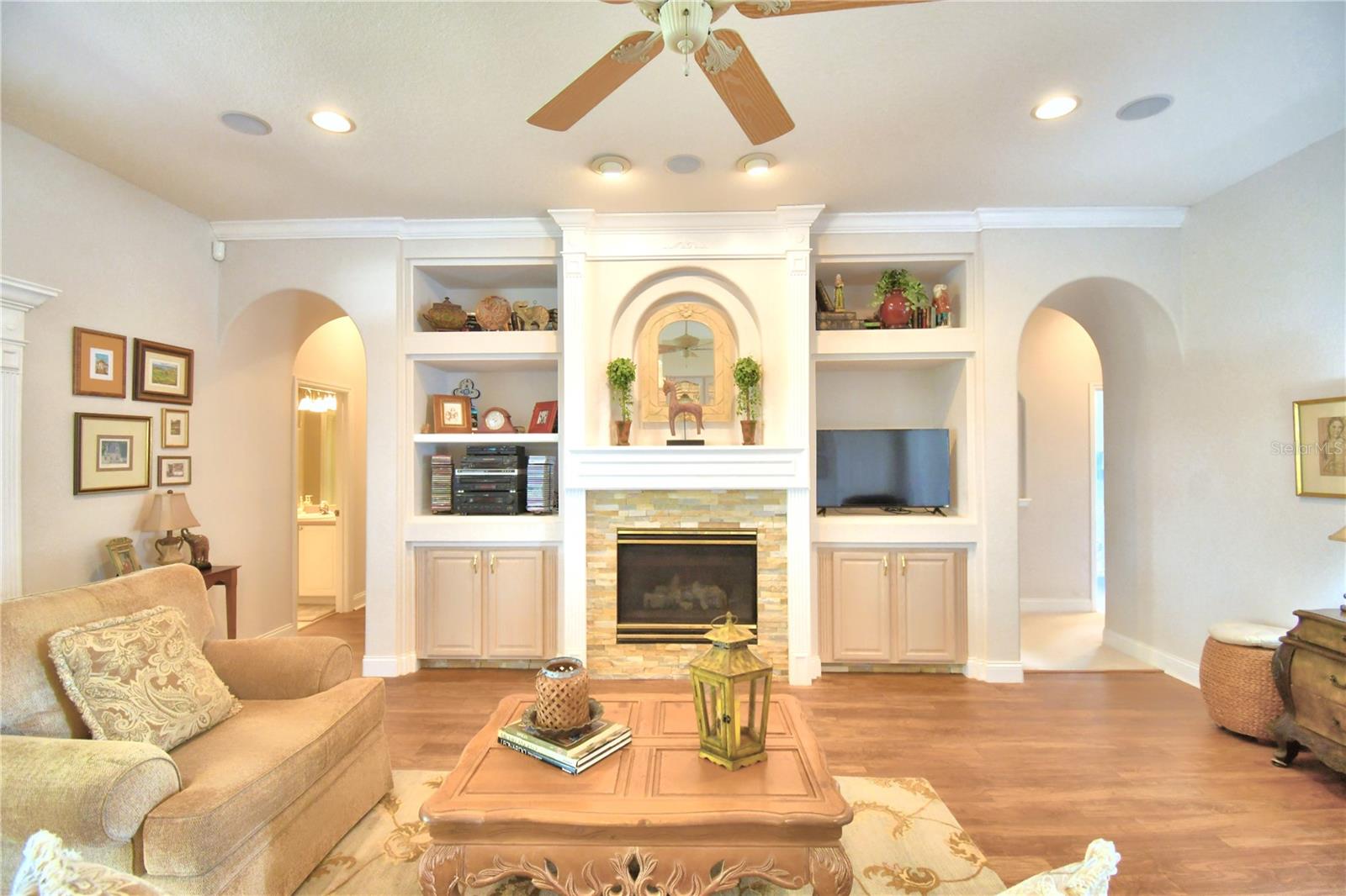 HART LAKE HILLS custom Built by Waters, one owner home! This lovely 4 bedroom 3 bath home is ready for it's next happy homeowner. The ideal floor plan has a 3 way split bedroom plan, family, and formal areas, 10 foot ceilings, and arched doorways. The beautiful kitchen offers light toned wood cabinets, expansive silestone counter tops with seamless sink, built in ovens, and an Island with granite countertop. The cheerful breakfast nook has large mitered windows to bring in natural light, and the back yard views. The gas fireplace in the family room is accented by floor to ceiling built-ins for your favorite photos, and collectables. There is extensive crown molding, and custom window treatments for the finishing touches. The extended patio is the perfect entertainment area with paver bricks, and wet bar. The back yard has mature oaks offering afternoon shade, and tranquil scenery. The generous lot size is nearly 1/2 an acre (.44), and offers plenty of space for your custom pool, playtime for fido or the kiddos. There is a well for irrigating that beautiful yard. The roof was replaced in 2020, the dual zone AC @2021, and the hot tub equipment was recently refurbished. Hart Lake Hills is a gated community of quality built homes with lake access. Enjoy paddleboarding, canoeing, and fishing. Call today for your private tour. Step inside, fall in love. Make it yours!