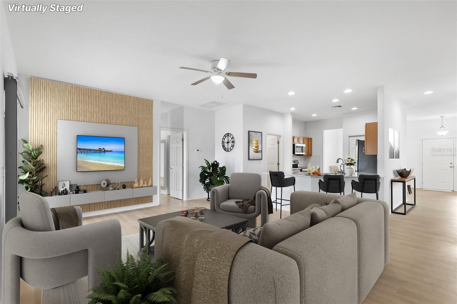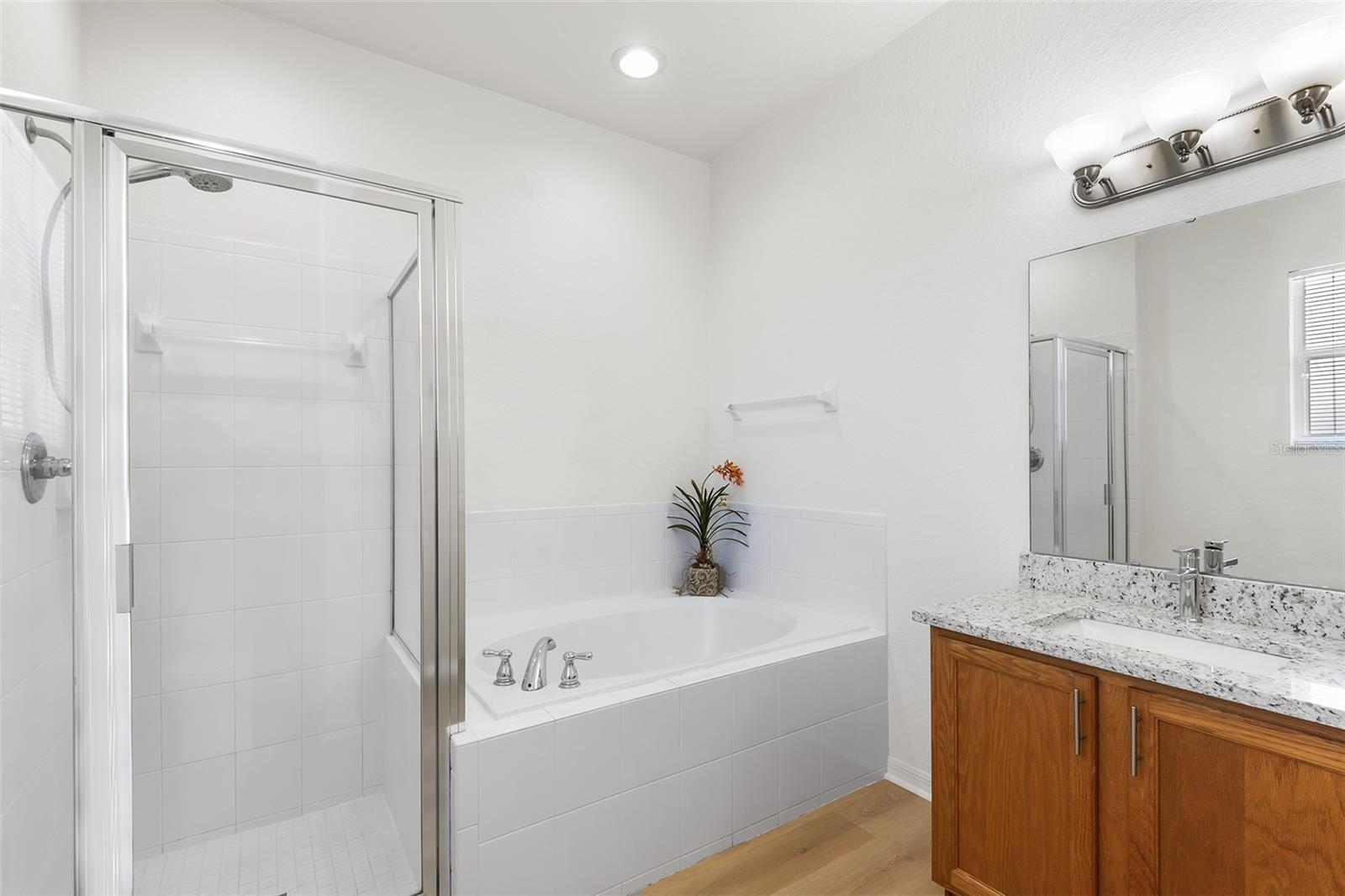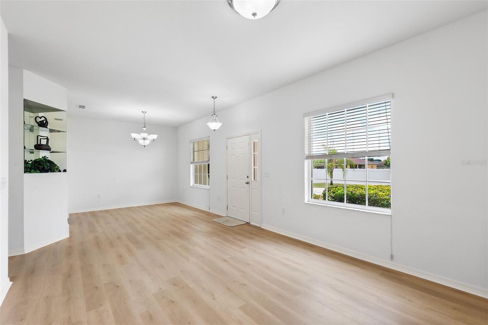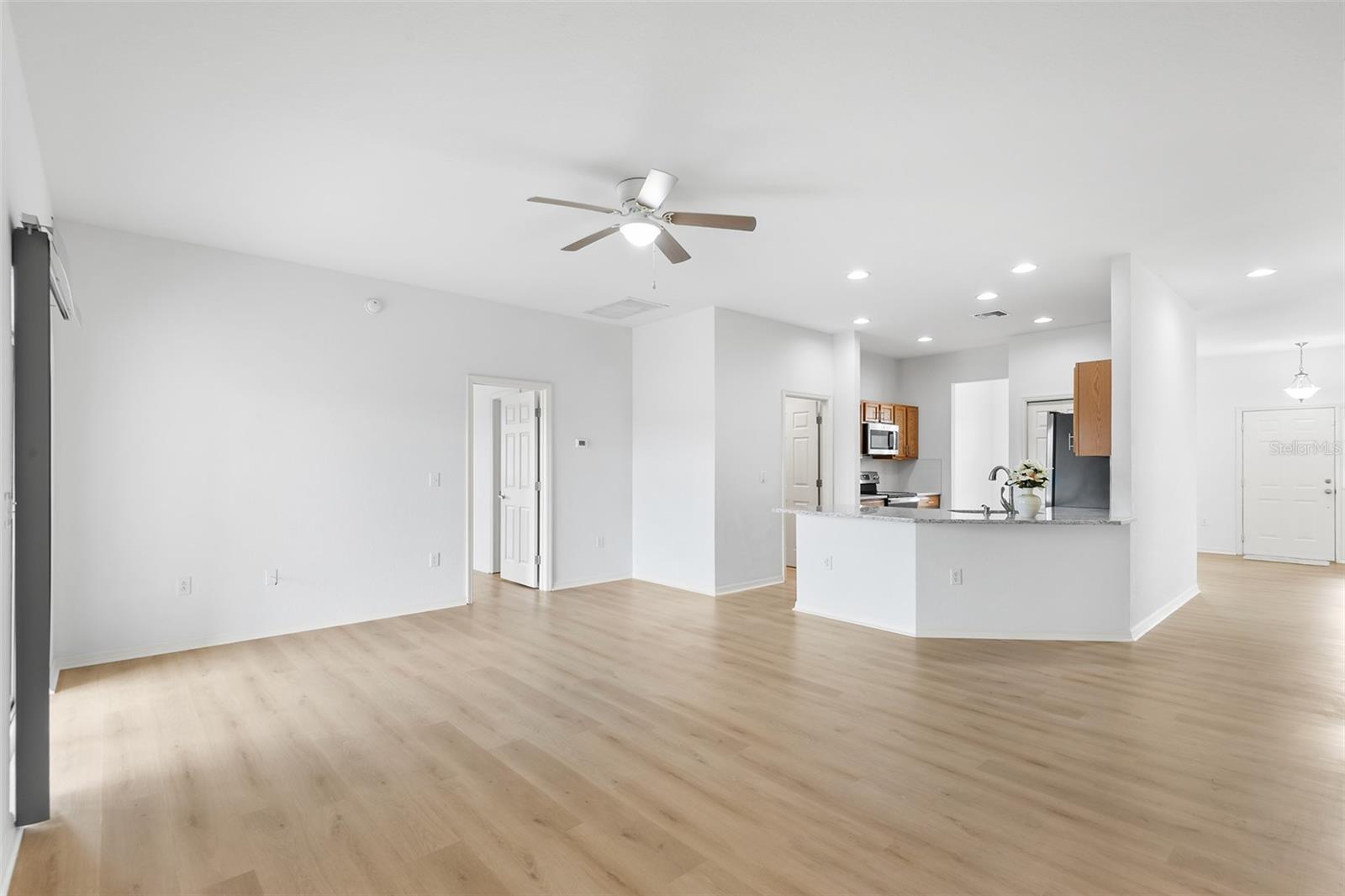 One or more photo(s) has been virtually staged. Welcome to your dream home nestled in a gated community! This stunning 4-bedroom, 3-bathroom home offers an exquisite pool bath design and an open split floor plan, perfect for modern living and entertaining. As you step inside, you'll be greeted by luxury vinyl plank flooring that flows seamlessly throughout the freshly painted home. The spacious living areas are accentuated by elegant plant shelves, ideal for displaying your favorite decor. The heart of the home boasts a beautiful kitchen, complete with granite countertops and brand-new stainless steel appliances, making it a chef's delight. The master suite is a true retreat, featuring a walk-in closet, a garden tub, and sliding glass doors that open to the expansive lanai. Enjoy your morning coffee or unwind in the evening while overlooking the oversized lot, offering ample space for a pool, outdoor activities and potential landscaping projects. Built with quality and care, this home includes a new roof installed in 2022, ensuring peace of mind for years to come. Don't miss this opportunity to own a beautifully appointed home in a secure, sought-after community. Schedule your private tour today and experience the lifestyle you've been dreaming of!