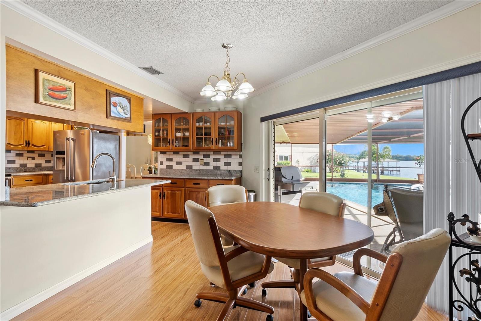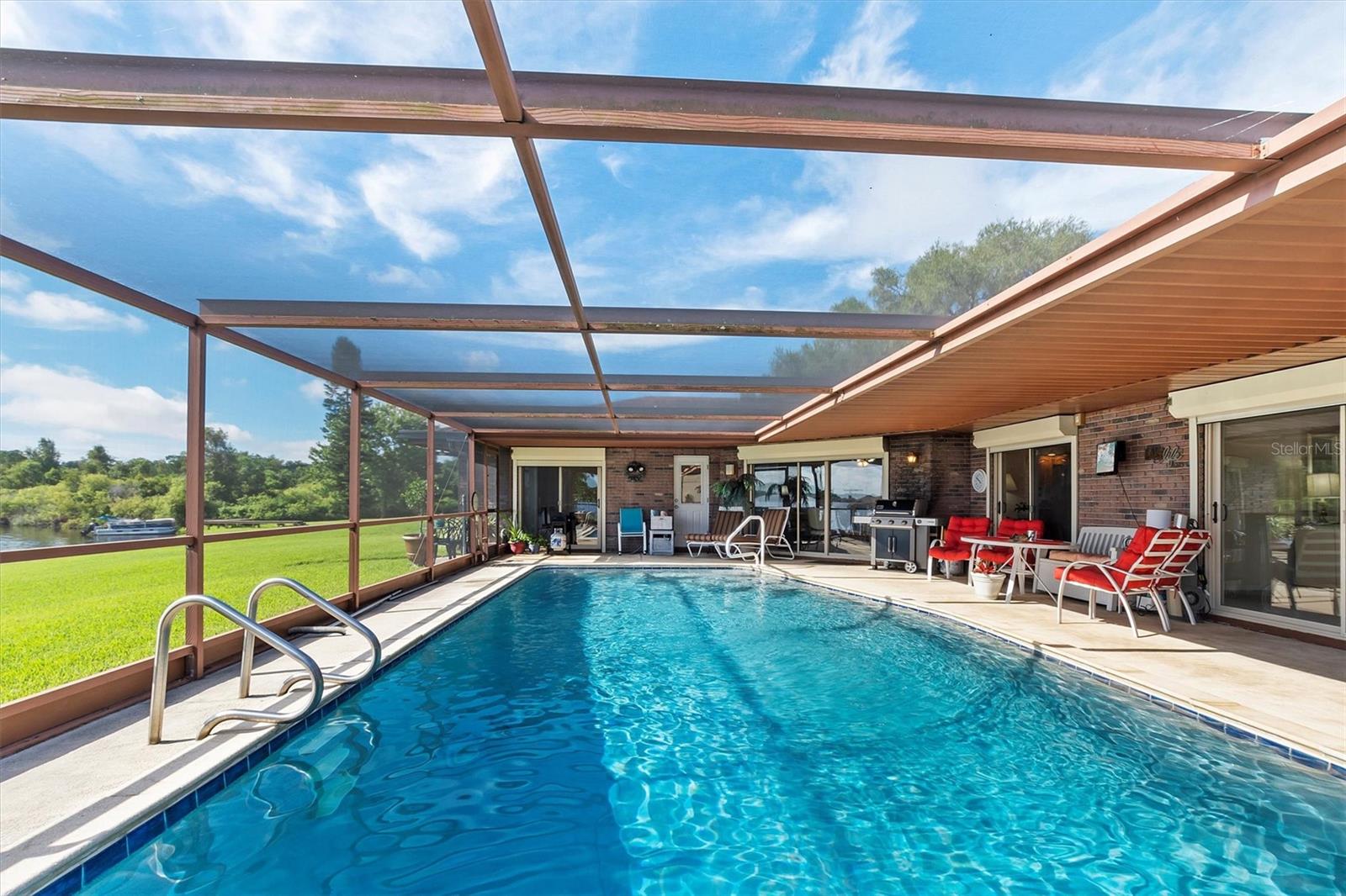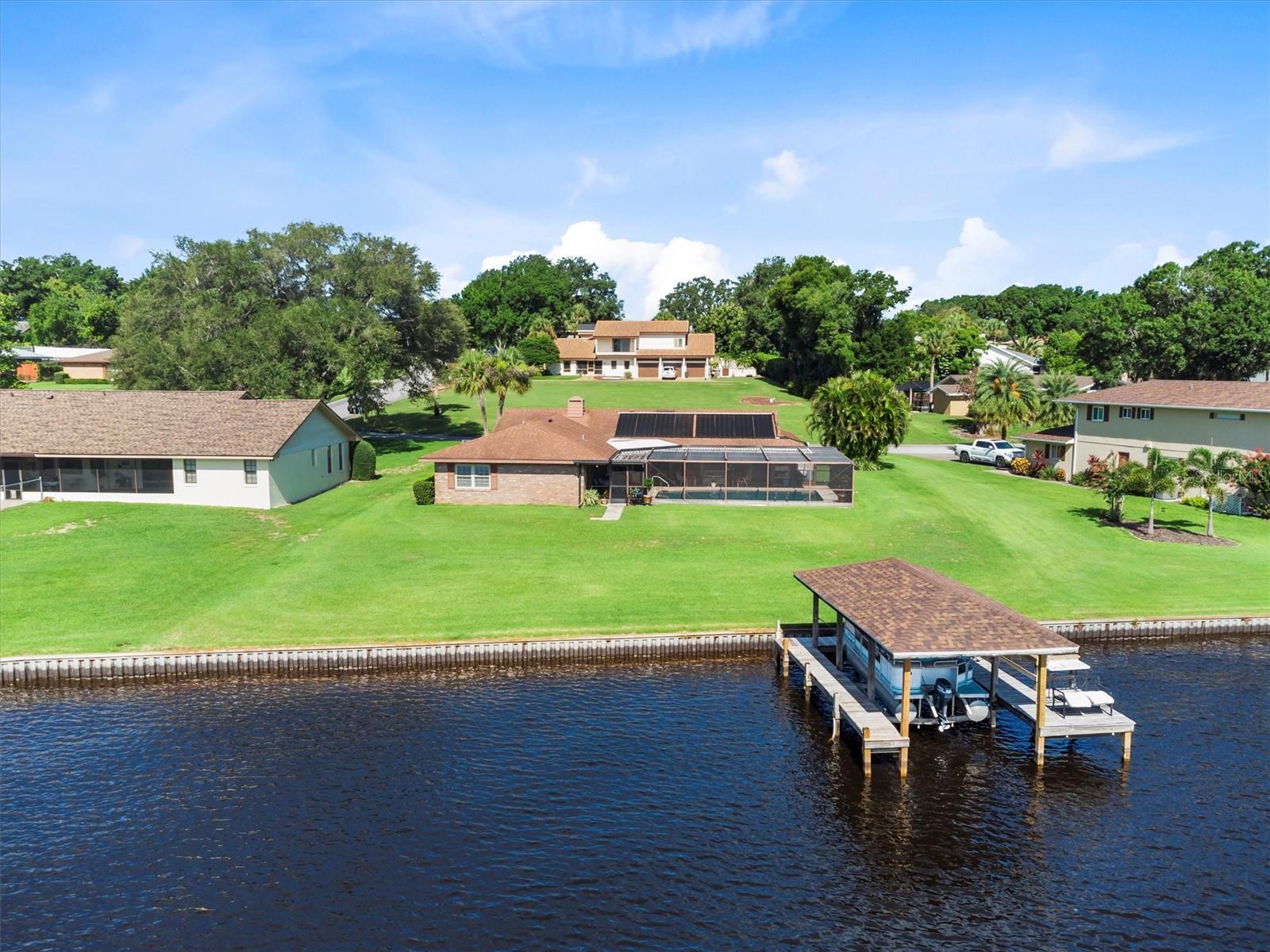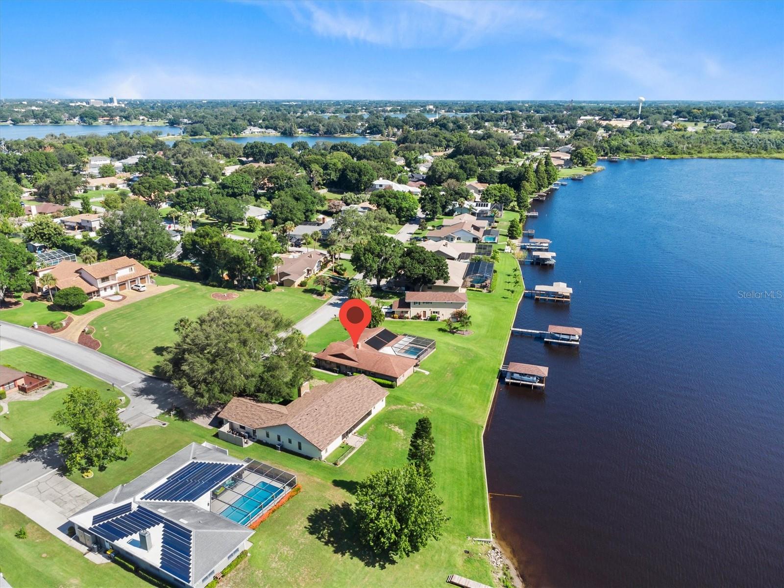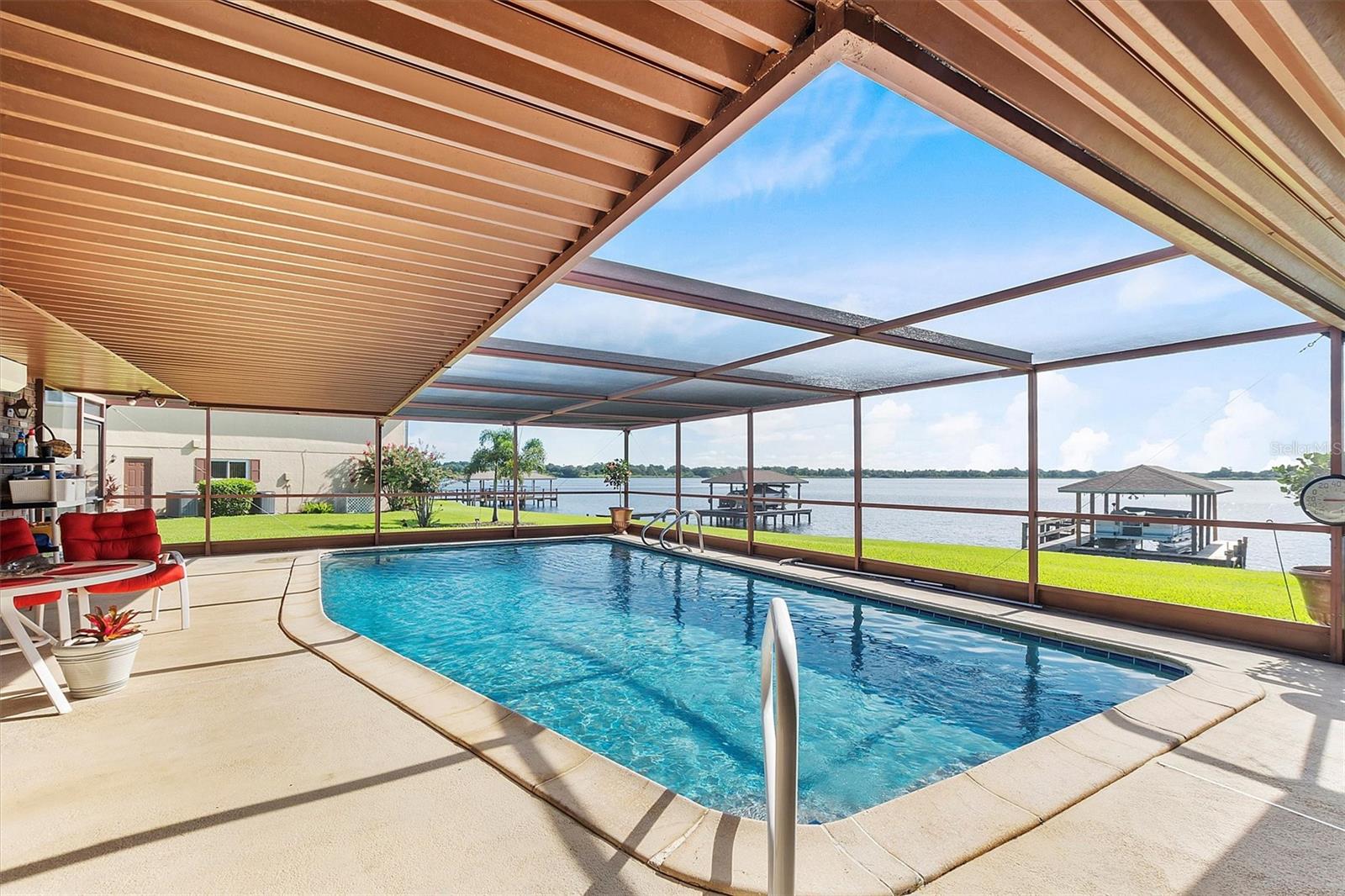 Your dream home on a large lakefront lot in Winter Haven, Florida. This property offers an unobstructed sunrise view over a rarely-used lake, ensuring peace and tranquility with minimal boating traffic. The private dock features a boat lift and includes an 18 ft pontoon boat with a 40 hp Yamaha engine. The well-maintained St. Augustine grass surrounds the home, complemented by a beautifully pavered driveway and a screened-in saltwater pool with a solar heater, perfect for year-round enjoyment. Hurricane shutters provide added security for the sliding glass doors. The property also includes a well for the sprinkler system, ensuring lush landscaping throughout the year. Step inside to find a fully furnished home, showcasing wood cabinets and granite countertops. Many rooms offer gorgeous lake views, enhancing the serene atmosphere of the property. A pristine 4x8 Brunswick pool table and a home generator provide additional comfort and entertainment. Recent updates include new plumbing and a recently installed AC unit. The dock boasts a new roof and deck repairs, ensuring it's ready for your use. Winter Haven, known as the Water Ski Capital of the World, offers a vibrant downtown and community just outside of Orlando and Tampa. Enjoy your quiet lake-front living while being only 3 minutes away from multiple boat ramps on the Chain of Lakes, featuring waterfront restaurants and activities. This home offers the perfect blend of serene lakefront living and convenient access to urban amenities. Don’t miss out on this exceptional opportunity!