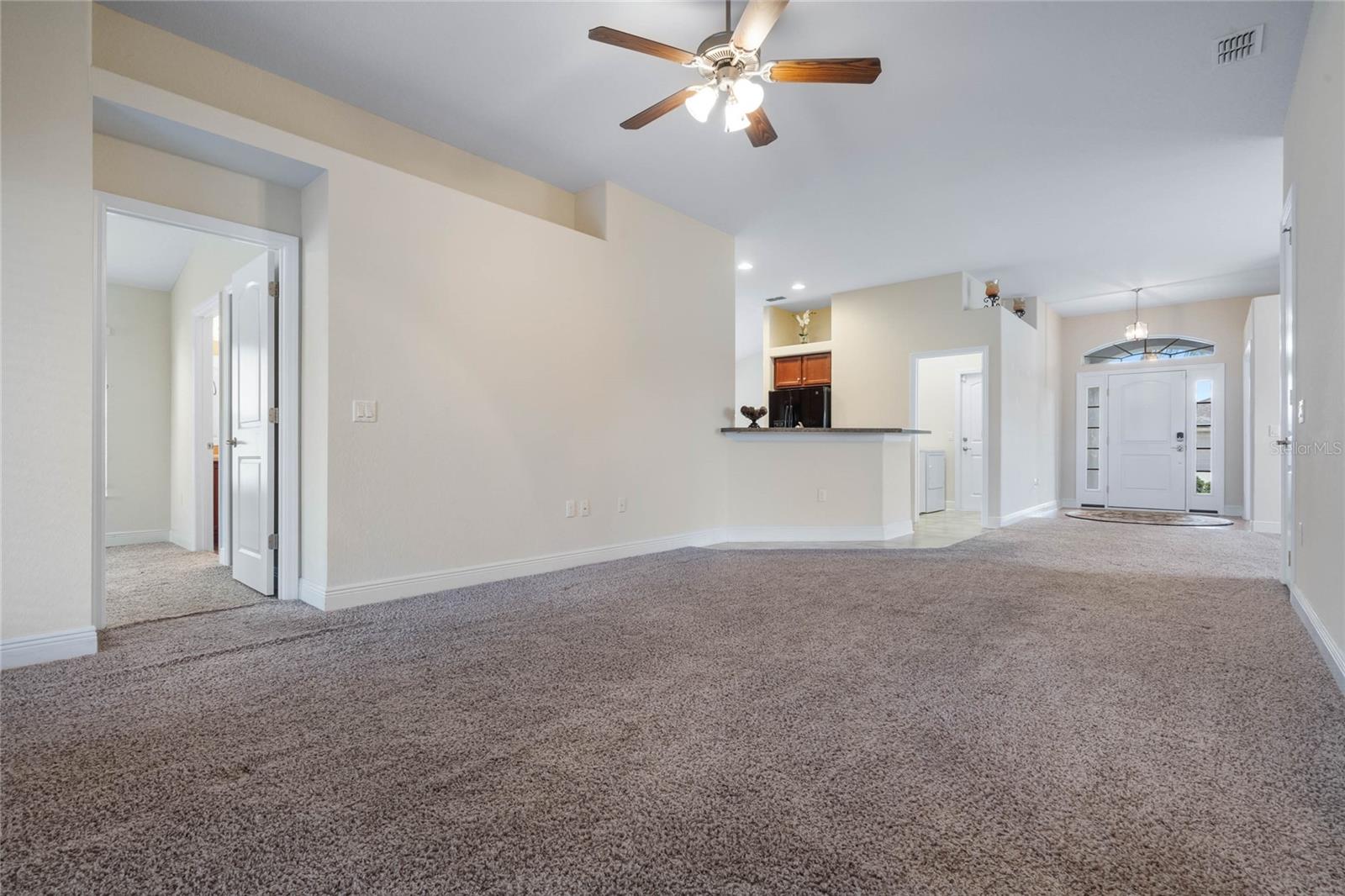 Spotless, like-new home on an oversized corner lot in the lakeside community of Island Lakes. Located in Winter Haven, the waterski capital of the world, this move-in-ready home features 4 spacious bedrooms, 2 full bathrooms, a great room design, formal and relaxed dining areas, inside laundry, and more. The entry reveals an open concept with high ceilings and an easy flow from room to room. The kitchen offers ample cabinet and counter space along with a closet pantry, breakfast bar, and eat-in space. Just off the kitchen is the formal dining room, which comfortably functions for everyday dining and is also perfect for entertaining and holidays. The great room is generously sized with high ceilings and room to furnish as desired. The triple-split bedroom plan ensures privacy for all occupants, with the primary suite tucked away on one side of the home for added seclusion. It features a huge walk-in closet and an en-suite bath with dual sinks, a garden tub, a tiled walk-in shower, and a linen closet. The guest bedrooms are comfortably sized, all with ceiling fans, ample closet space, and easy access to the guest bathrooms. Stepping outside, you'll discover a screened lanai for grilling or relaxing, overlooking a wide-open backyard with plenty of space to build a pool or landscape to complete your vision of home. Residents of Island Lakes enjoy easy lake access and comfortable breezes from both Lake Rochelle and Lake Conine, part of the world-famous Winter Haven Chain of Lakes. With a public boat ramp less than a mile away, you'll have direct access to some of the best fishing, skiing, and boating in all of Florida. You can navigate over 20 canal-connected lakes and visit several lakeside restaurants and bars or even watch a Legoland ski show from the comfort of your own boat. The City of Winter Haven is ideally positioned in the heart of Central Florida between Tampa and Orlando. Known for its small-town charm, Winter Haven is home to the Legoland Resort, the beautiful Winter Haven Chain of Lakes, over 550 lakes in the county for endless fishing and boating, a vibrant downtown area, and an active nightlife. Tampa Bay Lightning Hockey, Tampa Bay Bucs Football, Florida Aquarium, SeaWorld, Disney, and Orlando City Soccer are all within a 1.5-hour drive. Schedule your private tour today!