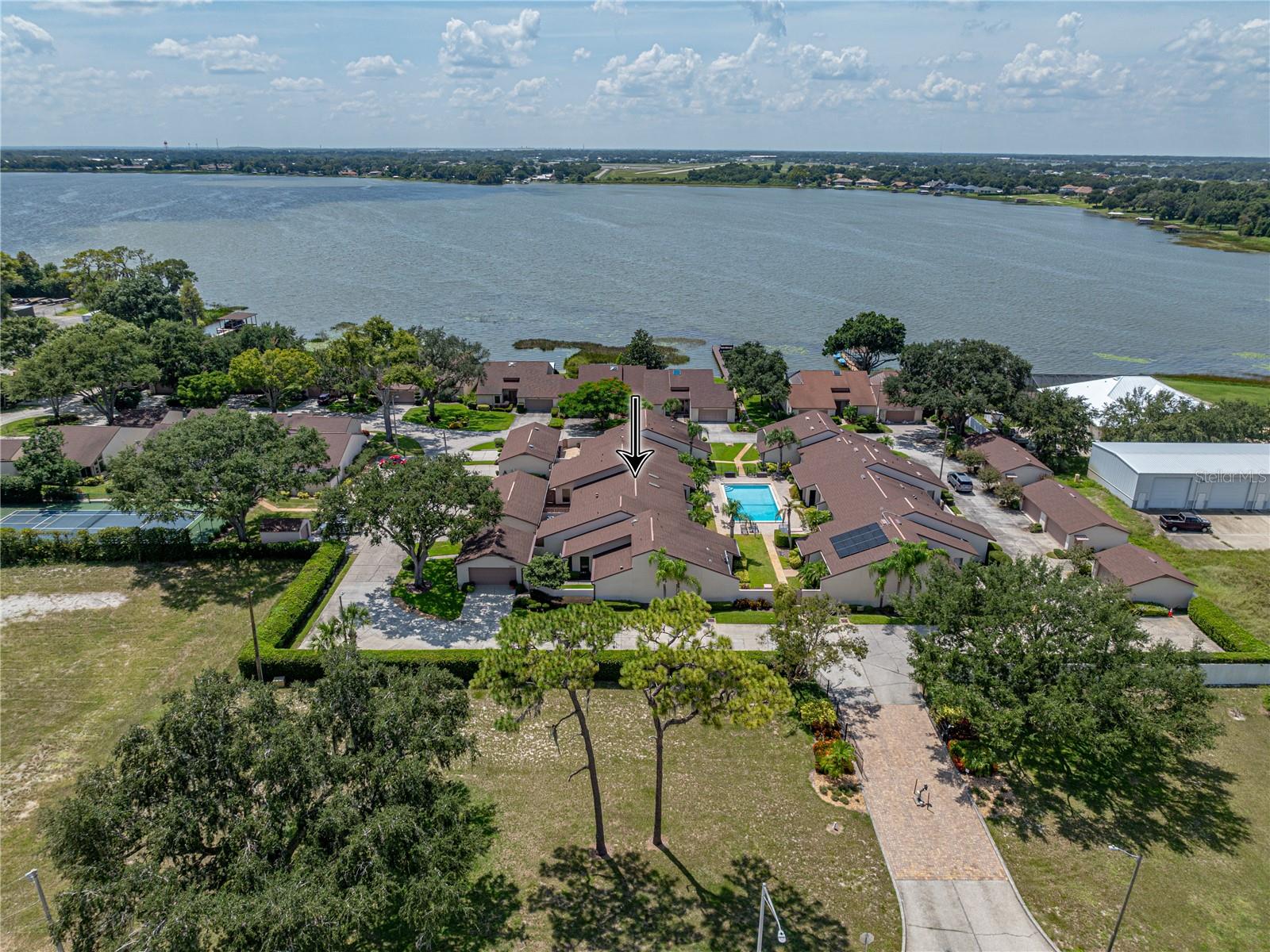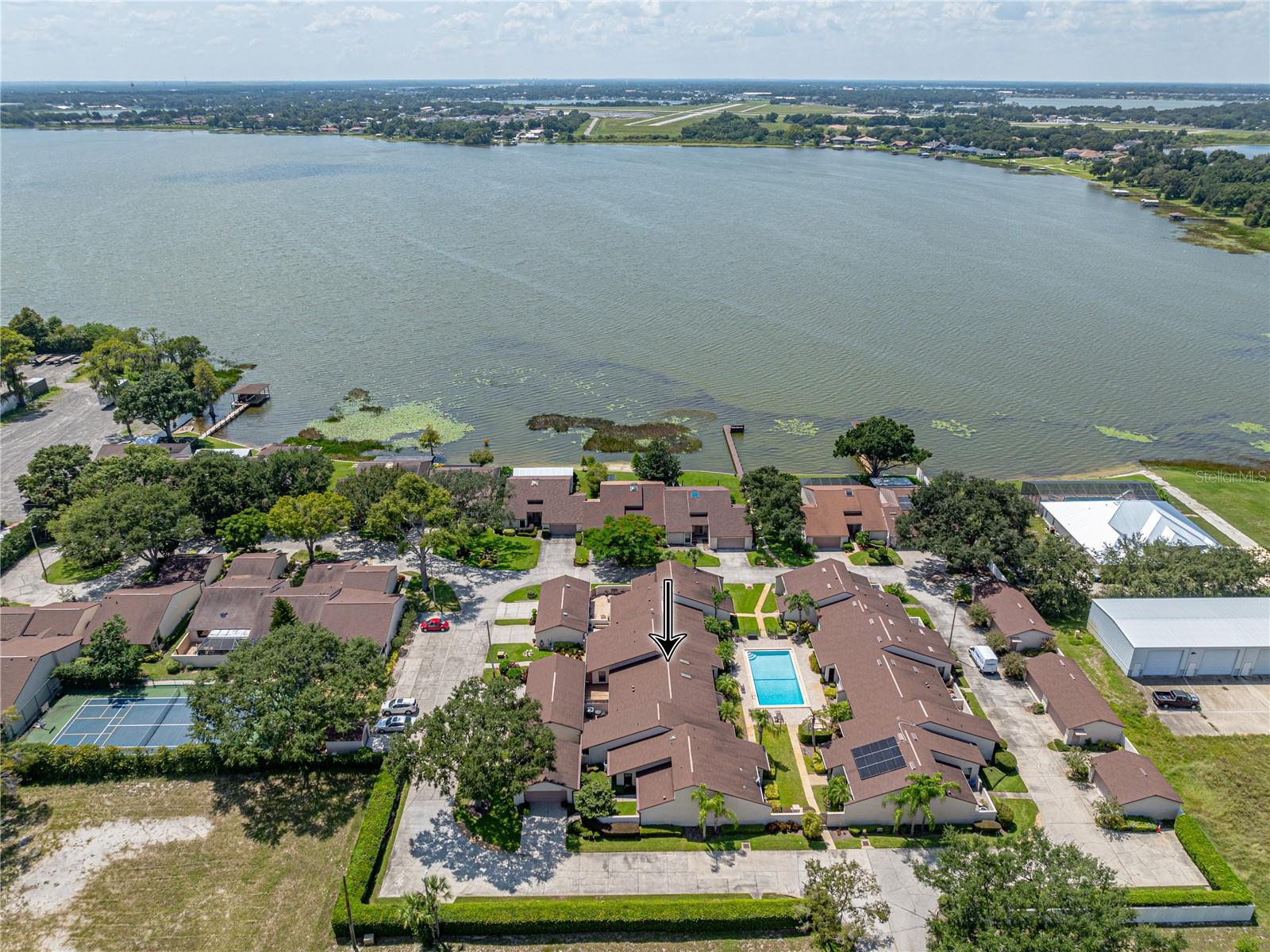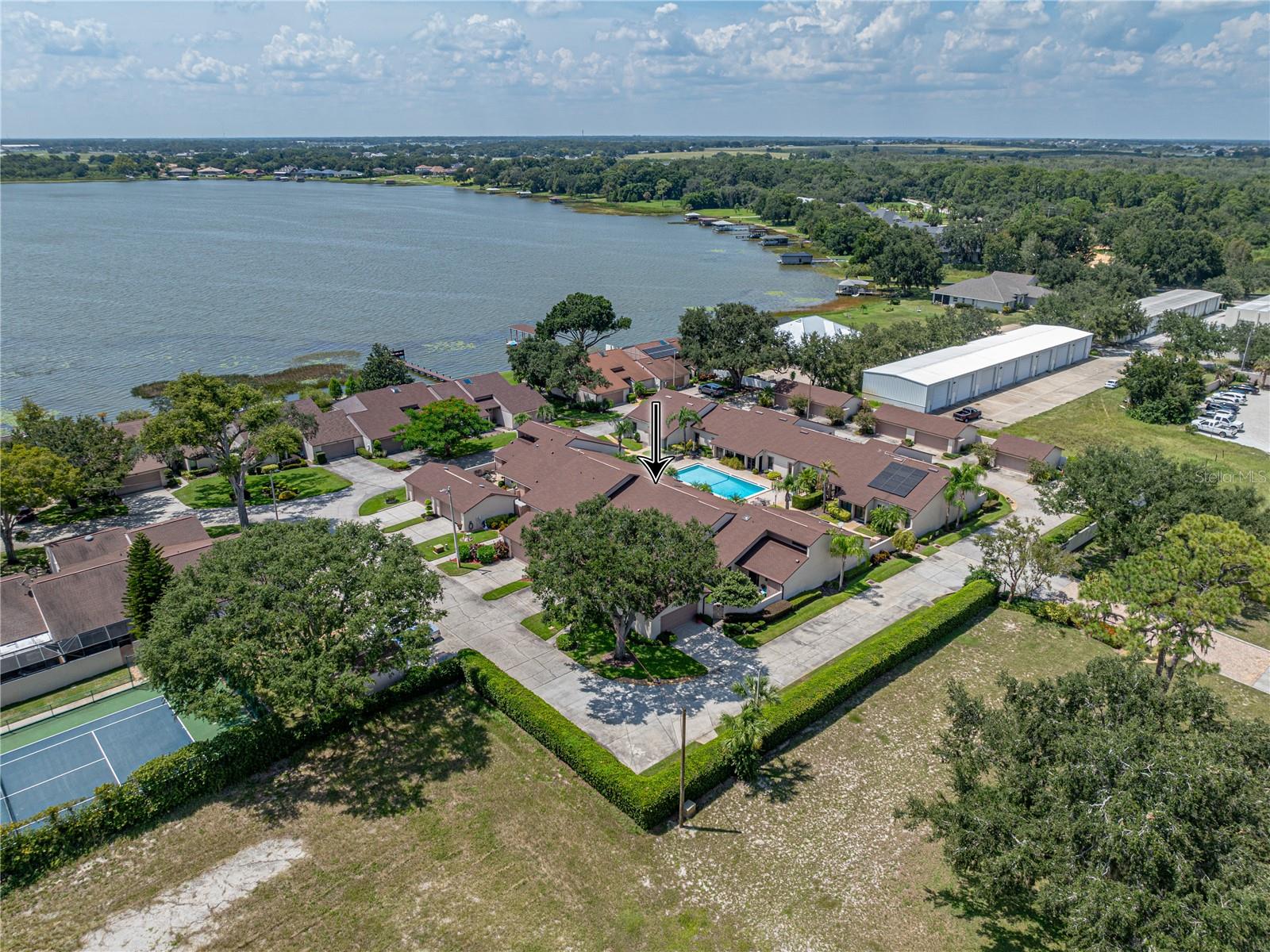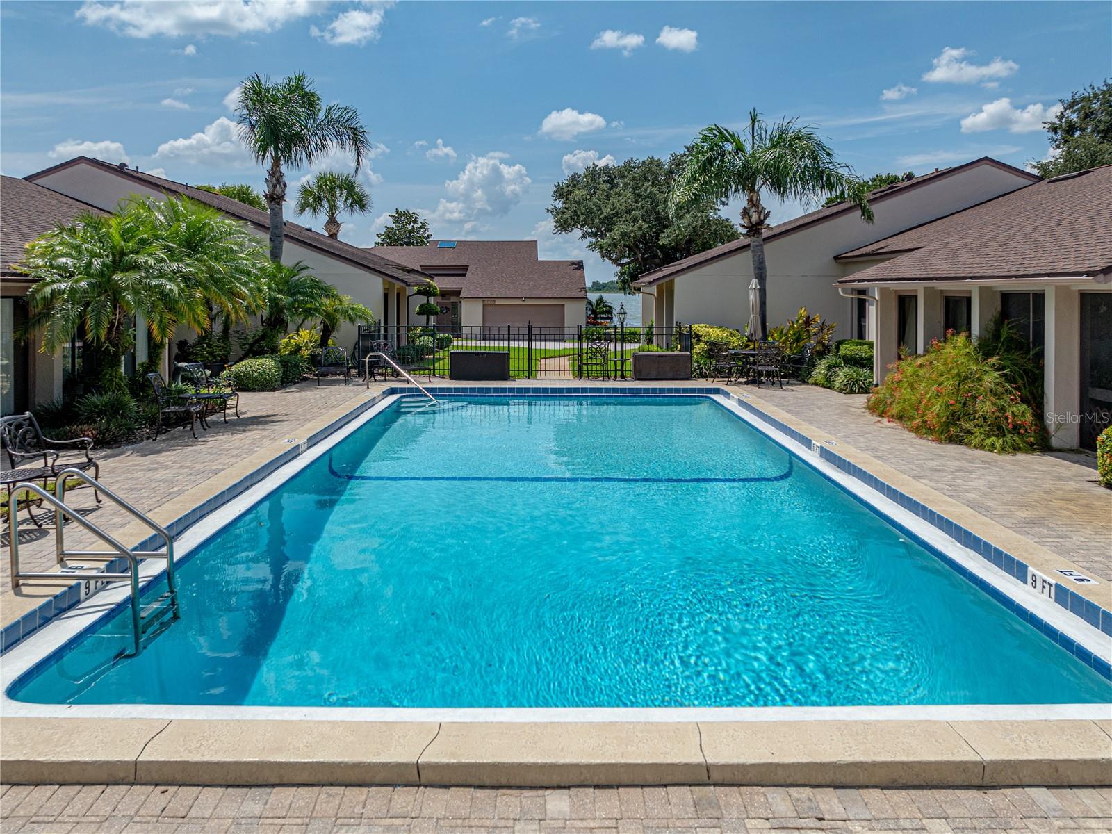 LAKEFRONT COMMUNITY--HARTRIDGE HARBOR IS WINTER HAVEN'S BEST-KEPT SECRET. The development is NOT age restricted. This 26-home community is gated and located on Lake Hartridge on the Chain of Lakes. Owners with boats may use the dock for up to 4 days. There is a beautiful community pool and tennis courts. This residence has been meticulously cared for and updated. New luxury vinyl flooring is throughout the property. The great room is large and open with vaulted ceilings. This is a two bedroom two bath with a large two-car garage. The home has a split-bedroom plan. The foyer is quite spacious and leads into the open great room. The kitchen has a breakfast bar and is open to the dining area. The two bedrooms are nicely sized and the primary has an ensuite bath. There is also an inside utility closet for a full size washer and dryer. The enclosed rear porch overlooks the sparkling pool. There is also a water softener system that will remain with the property. The community HOA fee is 240.00 per month and includes: gate and security system, lawncare, road upkeep, irrigation system and well for watering all the yards, common dock, tennis court and pool maintenance. This community shows a real pride in ownership.