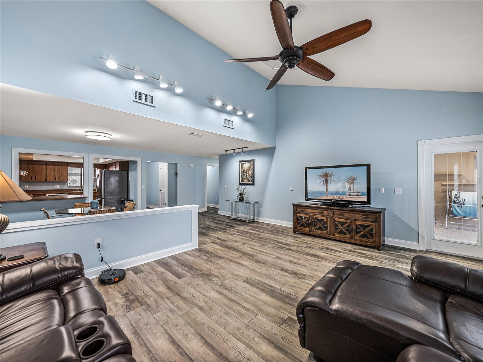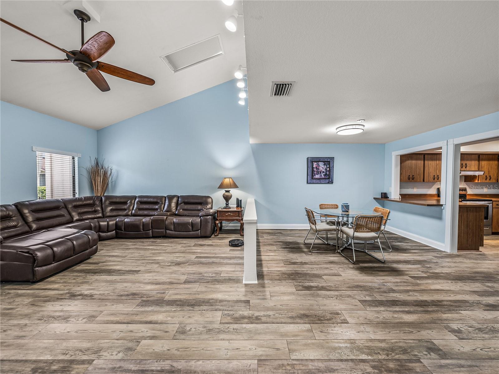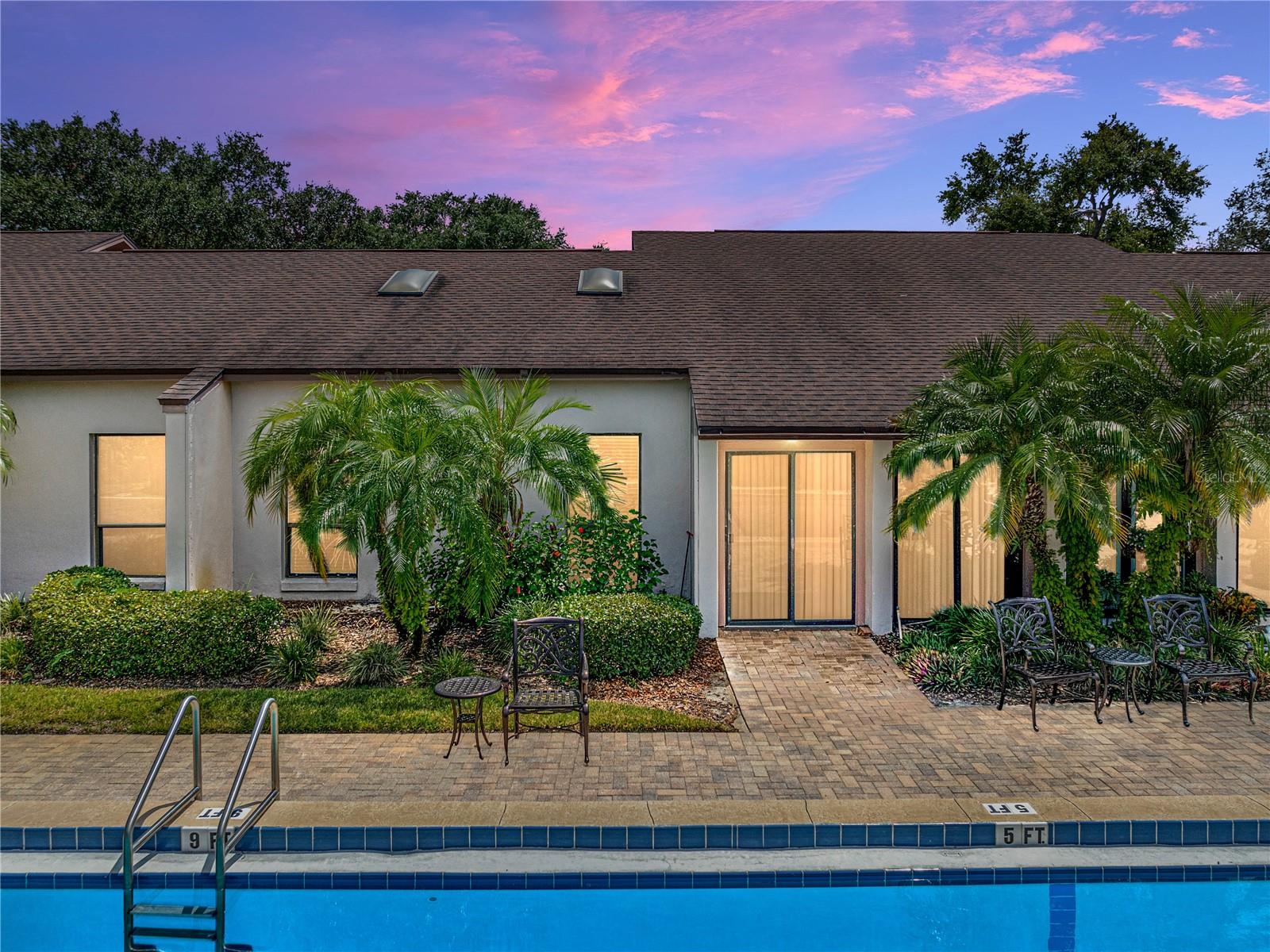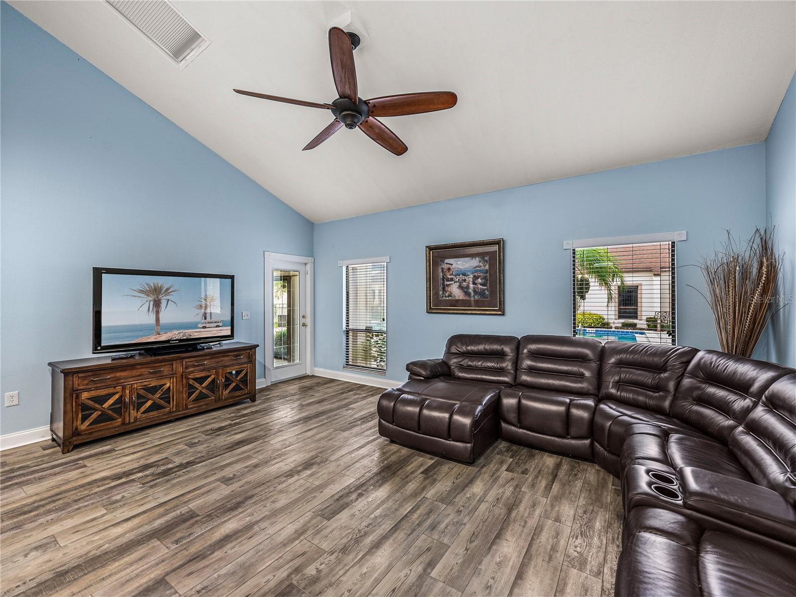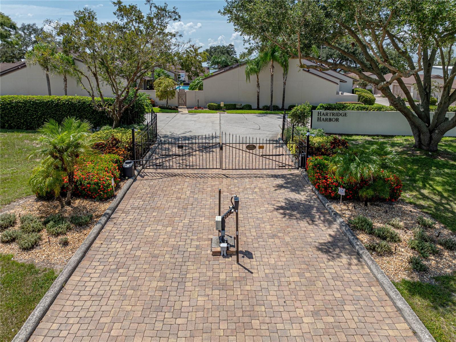 LAKEFRONT COMMUNITY--HARTRIDGE HARBOR IS WINTER HAVEN'S BEST-KEPT SECRET. The development is NOT age restricted. This 26-home community is gated and located on Lake Hartridge on the Chain of Lakes. Owners with boats may use the dock for up to 4 days. There is a beautiful community pool and tennis courts. This residence has been meticulously cared for and updated. New luxury vinyl flooring is throughout the property. The great room is large and open with vaulted ceilings. This is a two bedroom two bath with a large two-car garage. The home has a split-bedroom plan. The foyer is quite spacious and leads into the open great room. The kitchen has a breakfast bar and is open to the dining area. The two bedrooms are nicely sized and the primary has an ensuite bath. There is also an inside utility closet for a full size washer and dryer. The enclosed rear porch overlooks the sparkling pool. There is also a water softener system that will remain with the property. The community HOA fee is 240.00 per month and includes: gate and security system, lawncare, road upkeep, irrigation system and well for watering all the yards, common dock, tennis court and pool maintenance. This community shows a real pride in ownership.