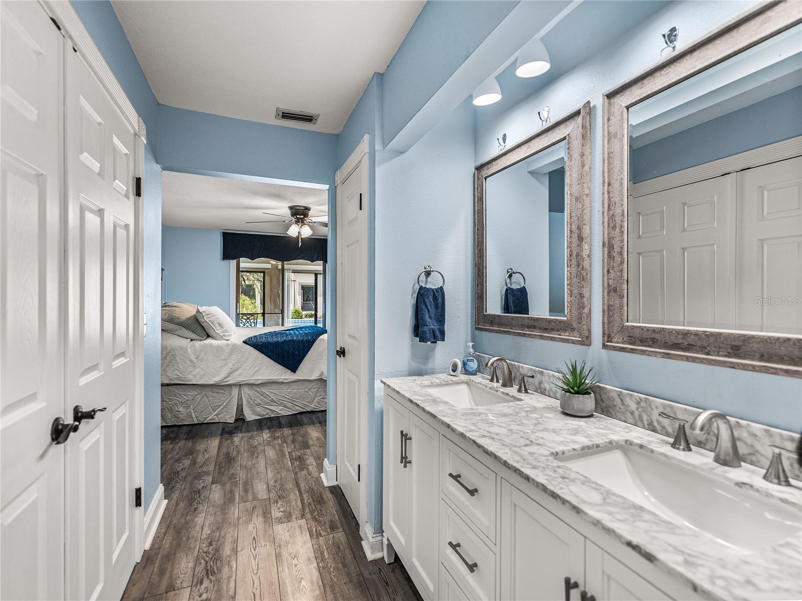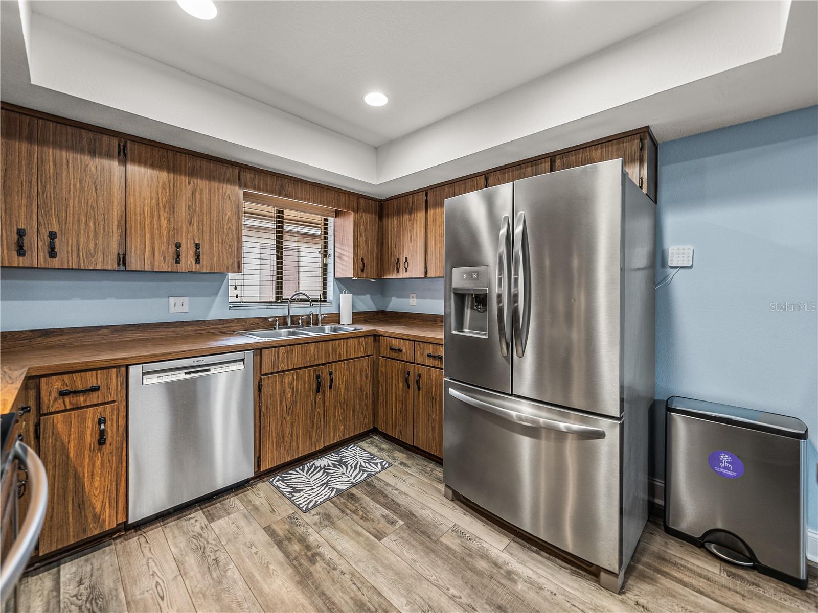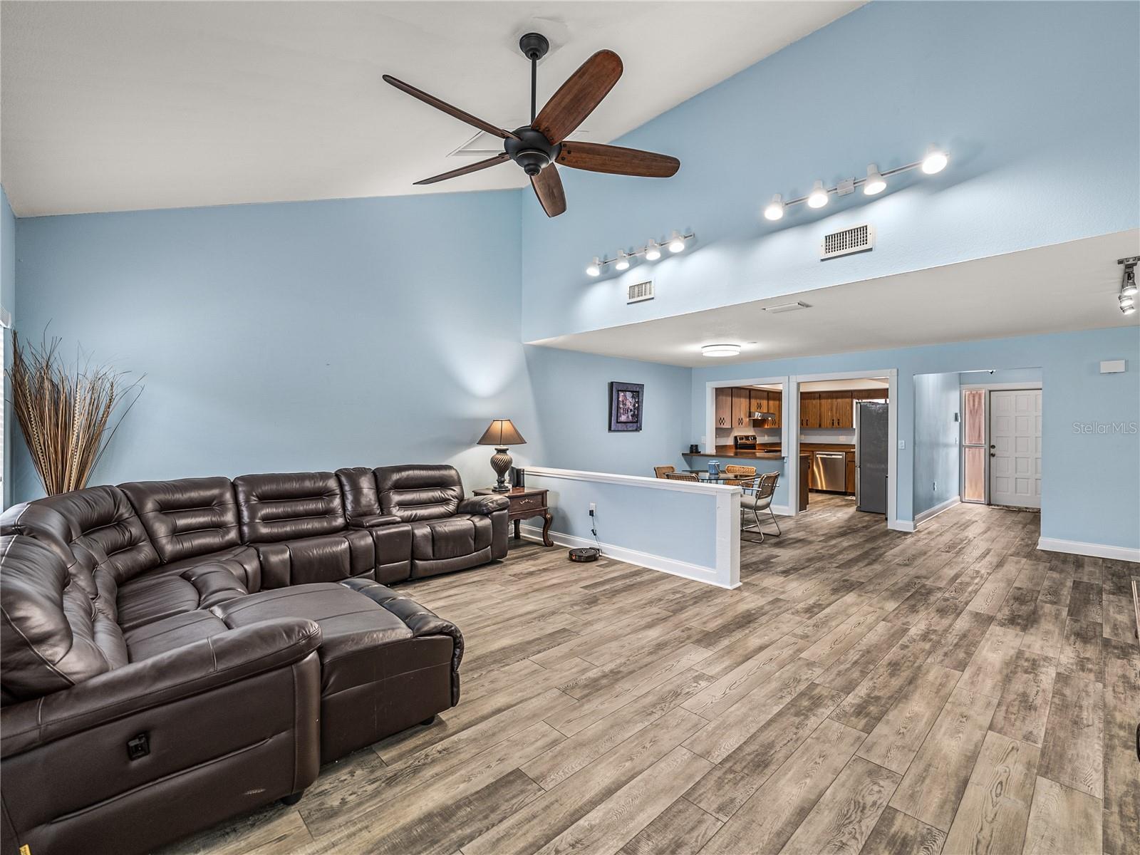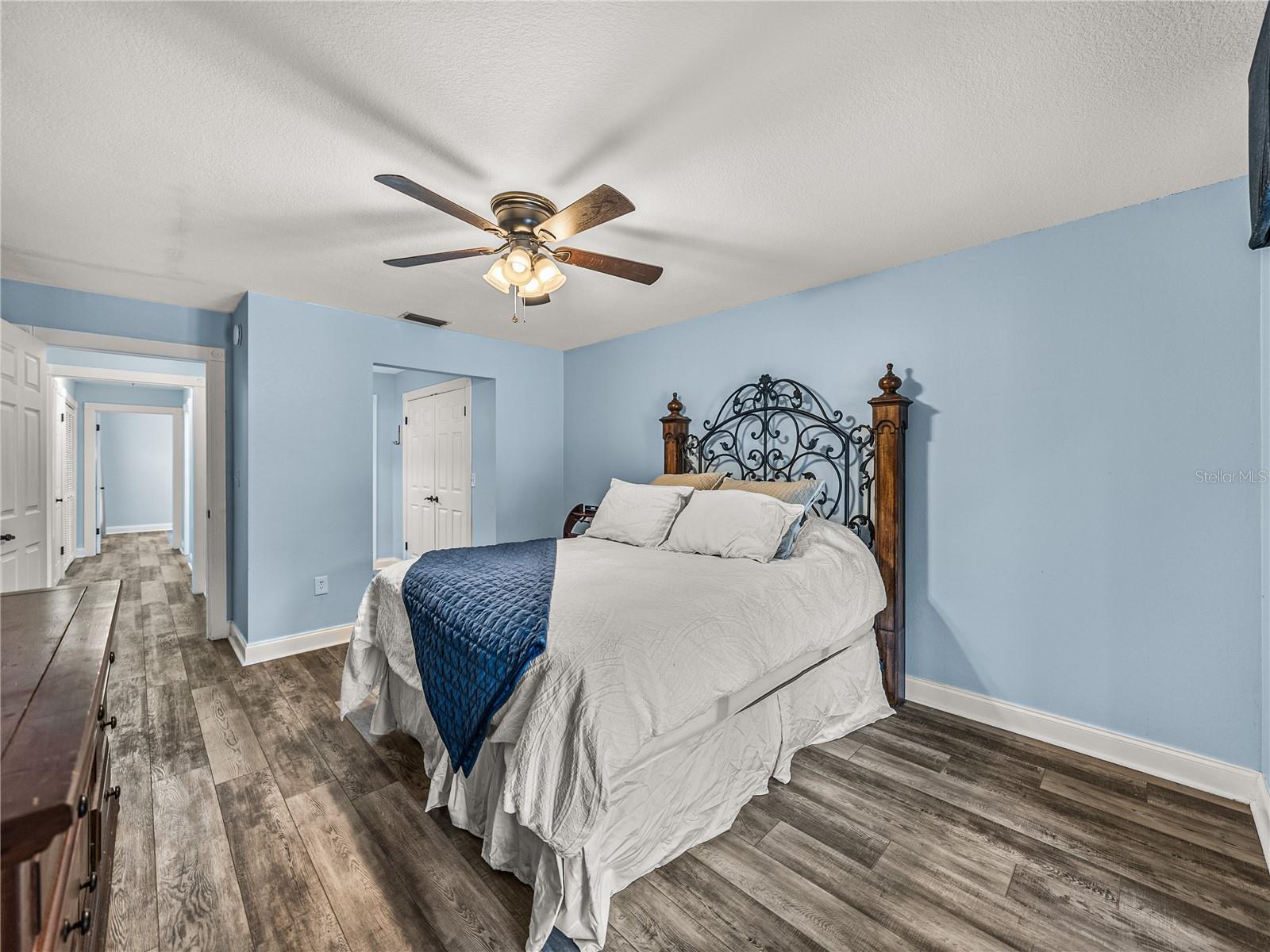 LAKEFRONT COMMUNITY--HARTRIDGE HARBOR IS WINTER HAVEN'S BEST-KEPT SECRET. The development is NOT age restricted. This 26-home community is gated and located on Lake Hartridge on the Chain of Lakes. Owners with boats may use the dock for up to 4 days. There is a beautiful community pool and tennis courts. This residence has been meticulously cared for and updated. New luxury vinyl flooring is throughout the property. The great room is large and open with vaulted ceilings. This is a two bedroom two bath with a large two-car garage. The home has a split-bedroom plan. The foyer is quite spacious and leads into the open great room. The kitchen has a breakfast bar and is open to the dining area. The two bedrooms are nicely sized and the primary has an ensuite bath. There is also an inside utility closet for a full size washer and dryer. The enclosed rear porch overlooks the sparkling pool. There is also a water softener system that will remain with the property. The community HOA fee is 240.00 per month and includes: gate and security system, lawncare, road upkeep, irrigation system and well for watering all the yards, common dock, tennis court and pool maintenance. This community shows a real pride in ownership.
